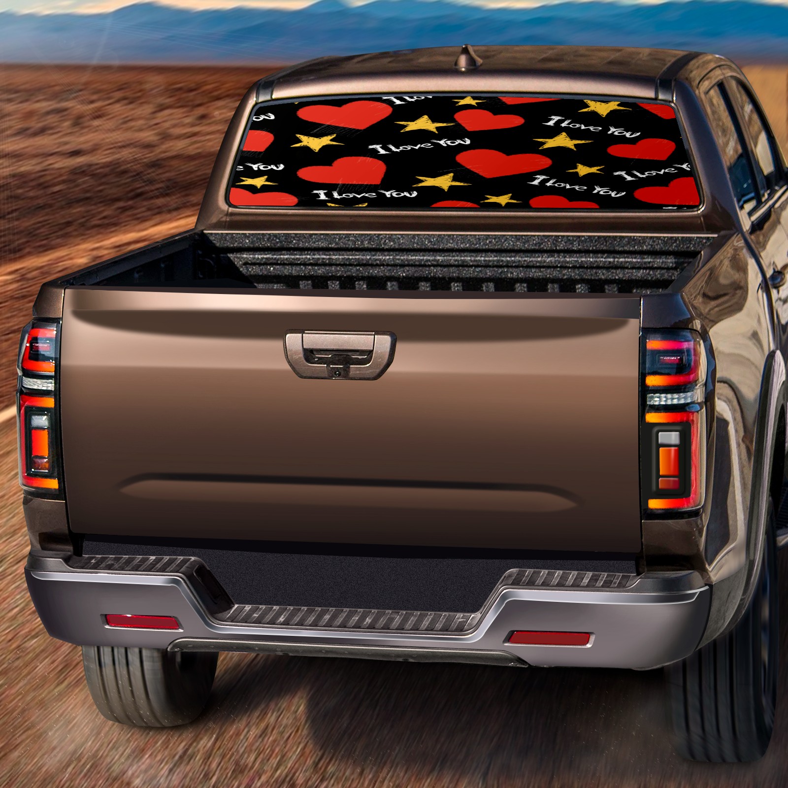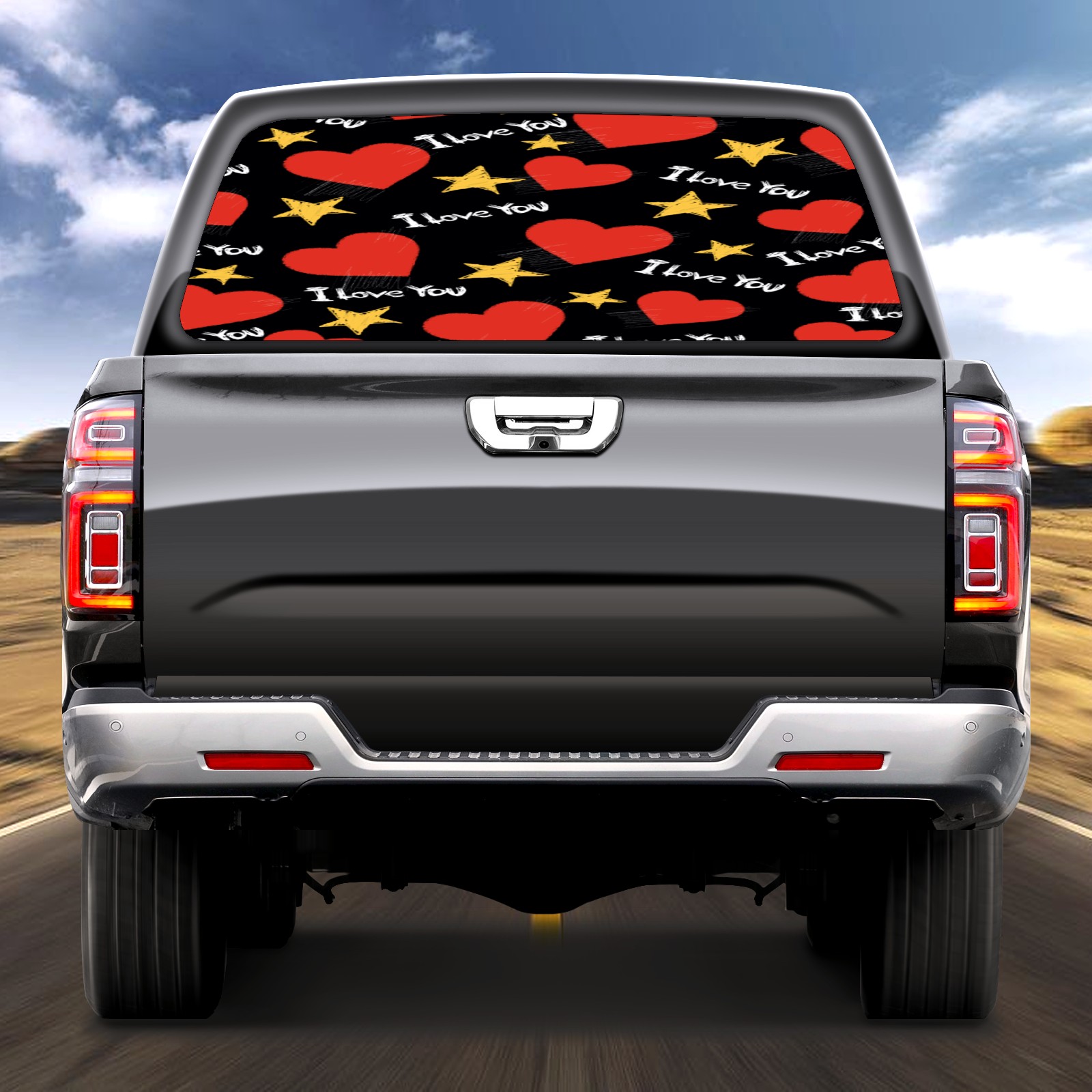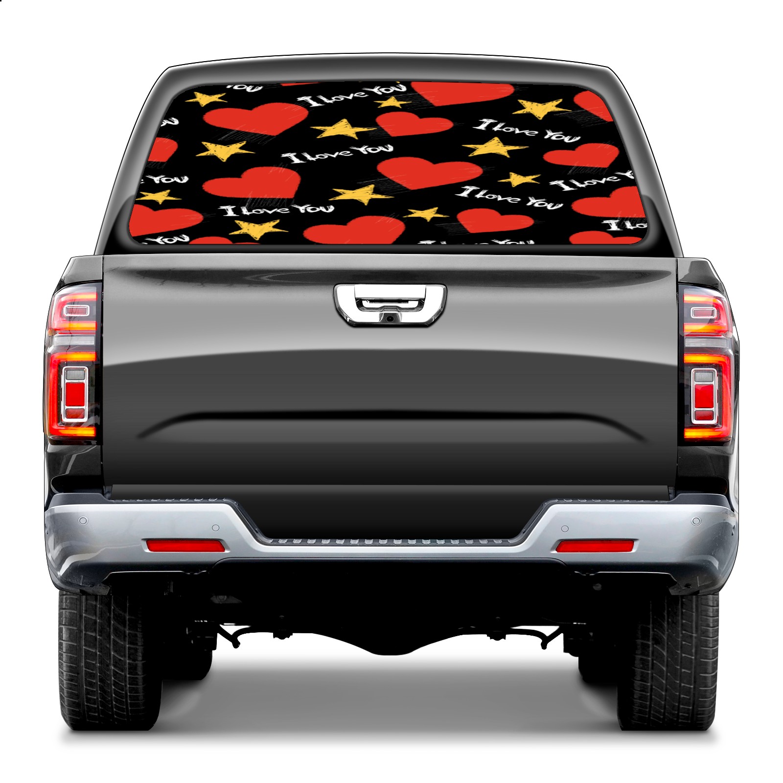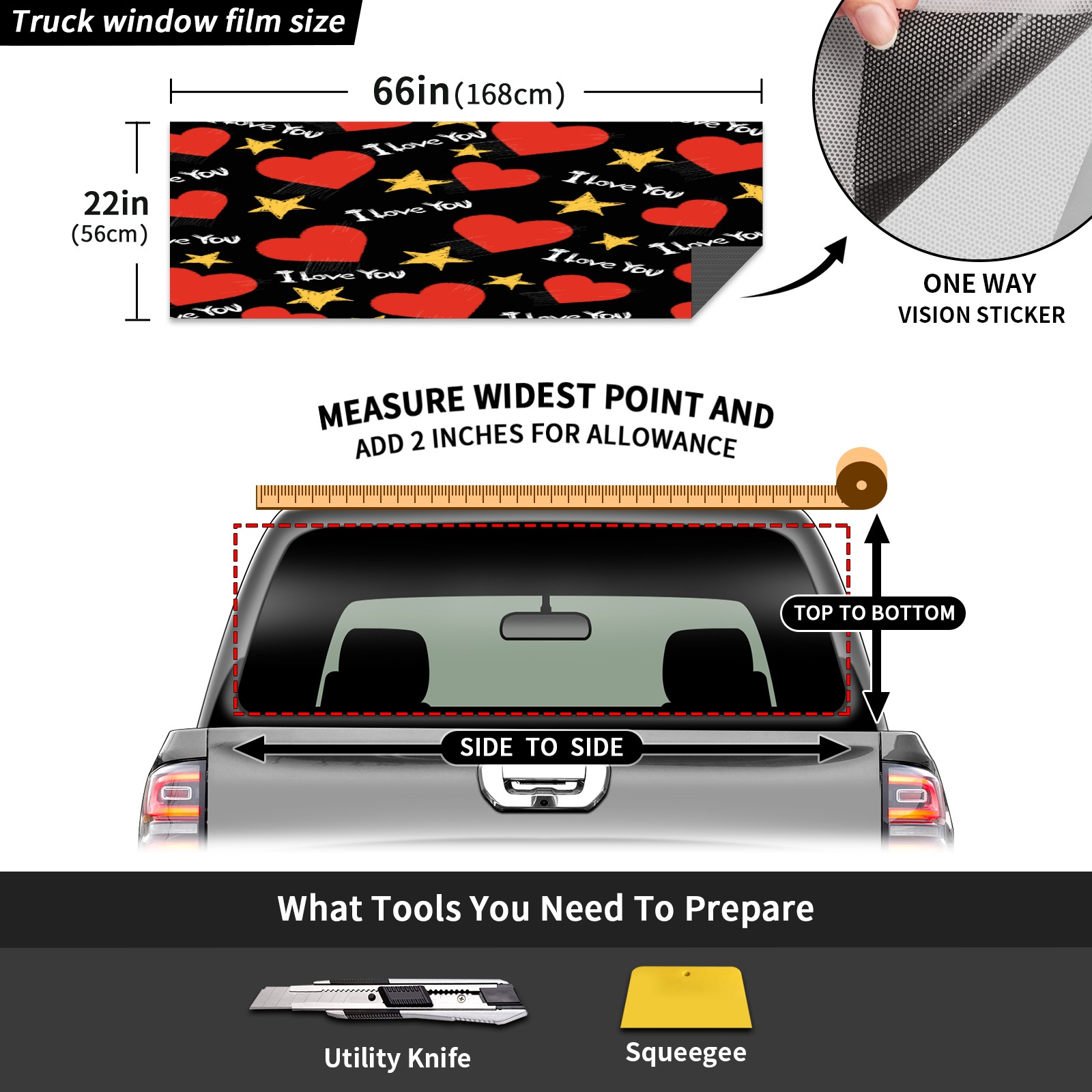 爱心7 Rear Window Decals for Trucks- Pickup Car Window Stickers Decal- Truck Back Window Tint Decal Graphic Perforated Vinyl Truck Stickers 66" X 22"