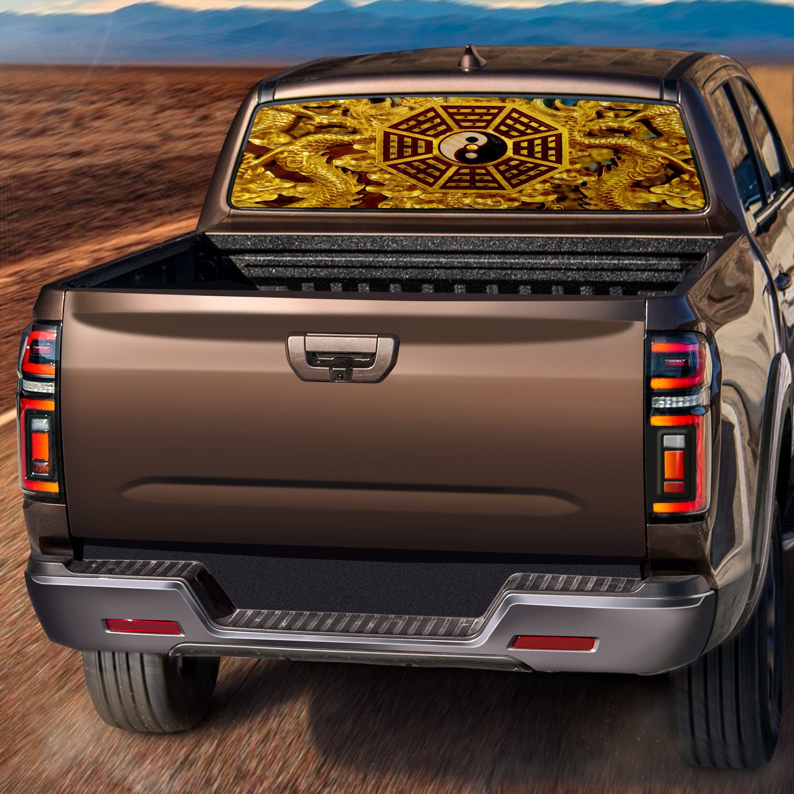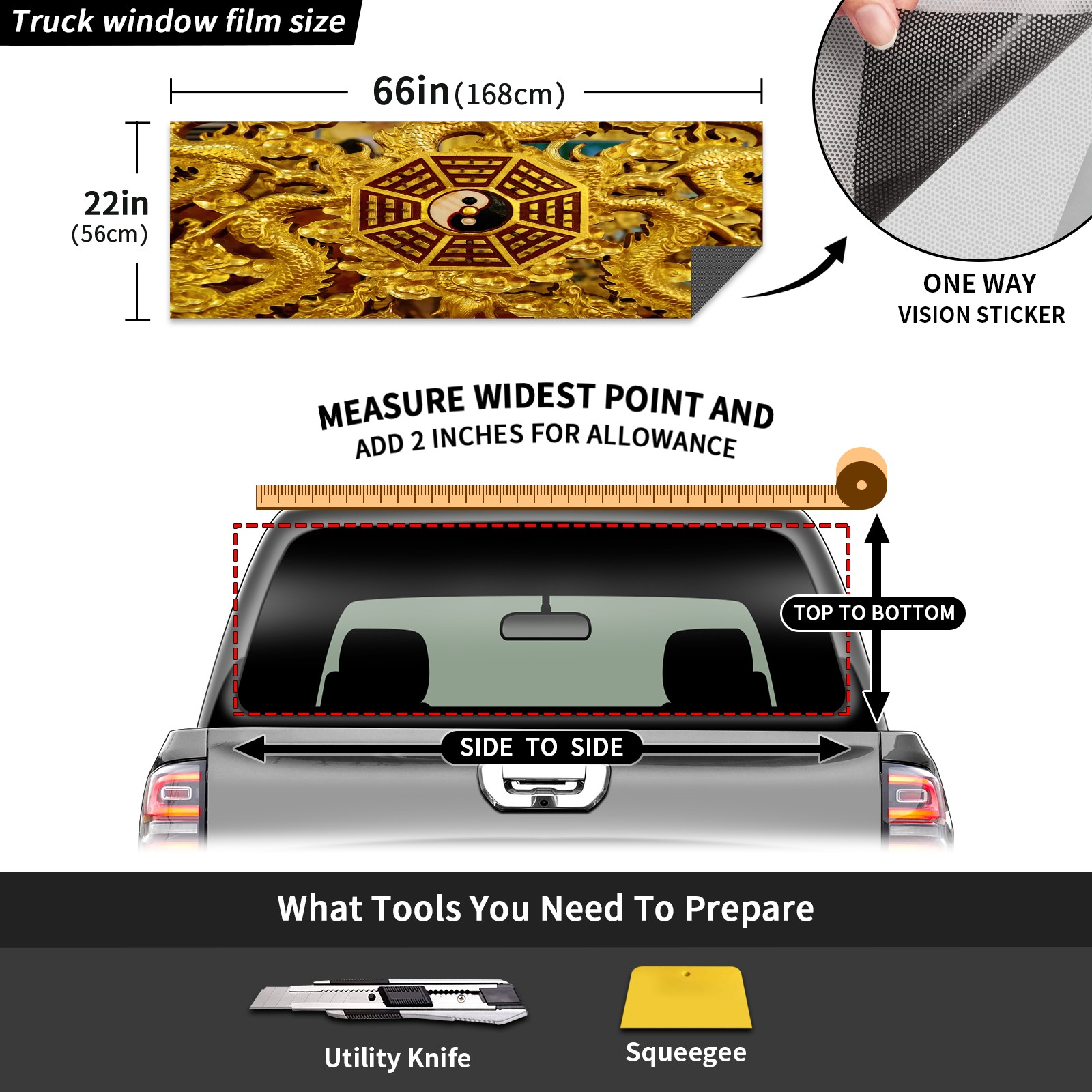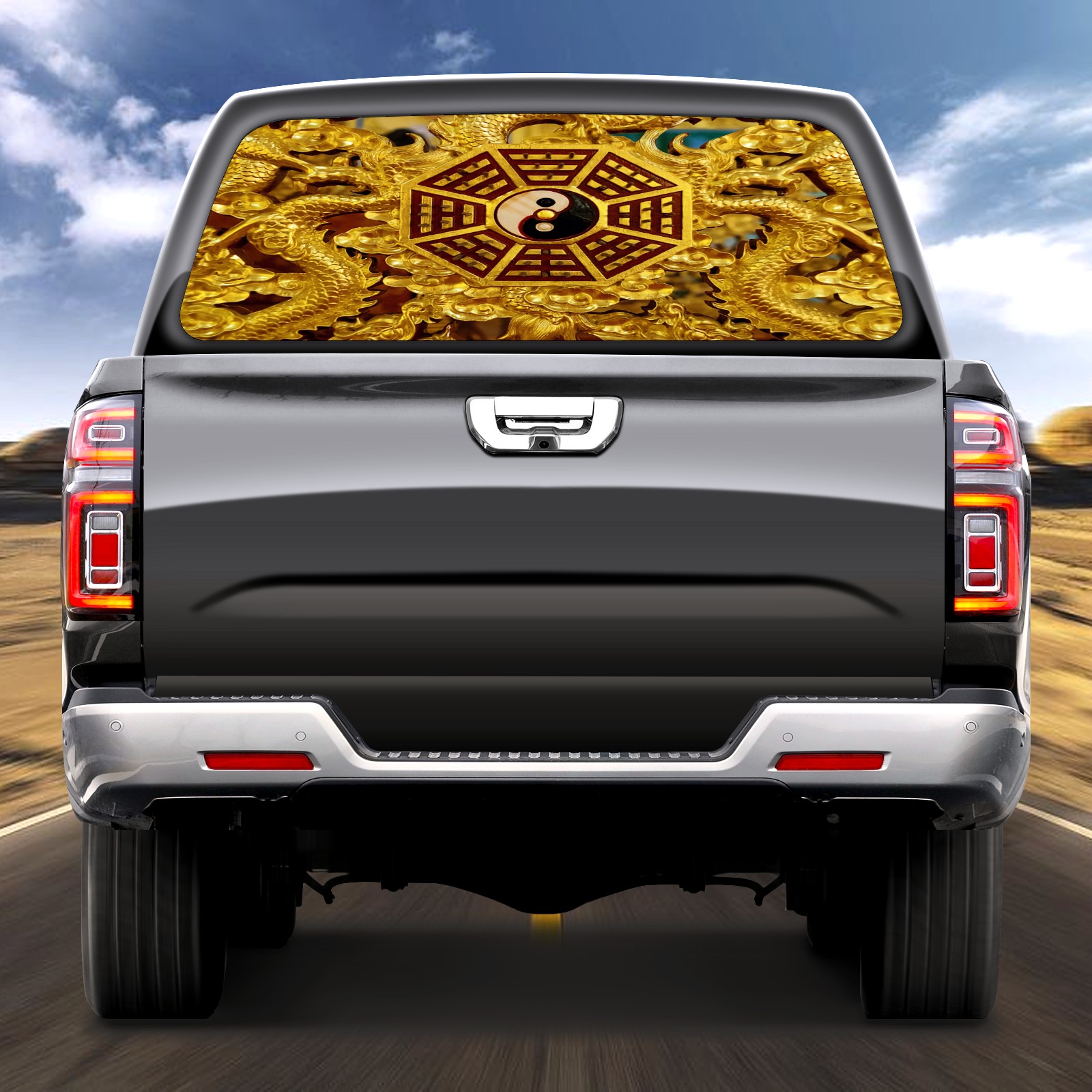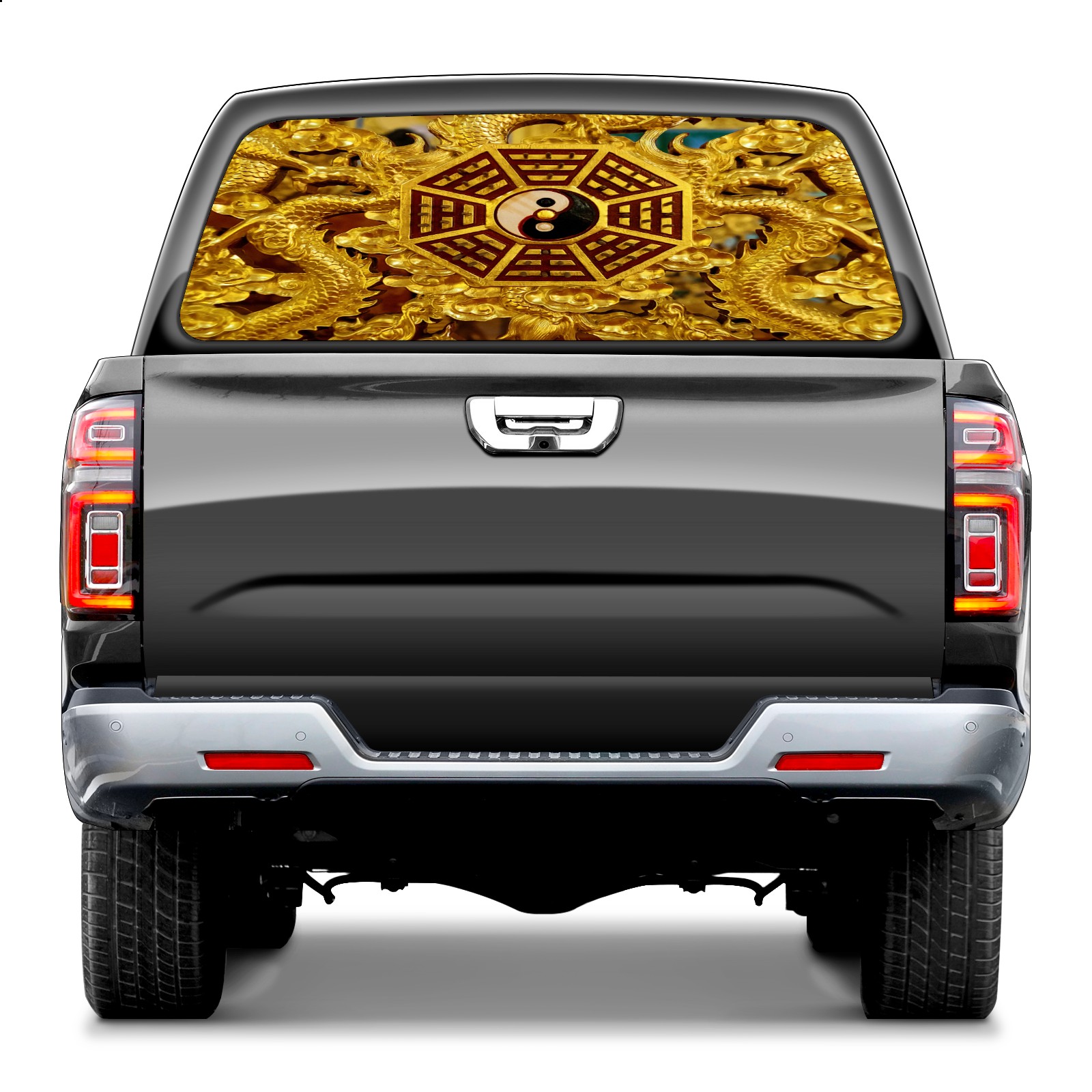 Golden Dragon Bagua Map Rear Window Decals for Trucks- Pickup Car Window Stickers Decal- Truck Back Window Tint Decal Graphic Perforated Vinyl Truck Stickers 66" X 22"