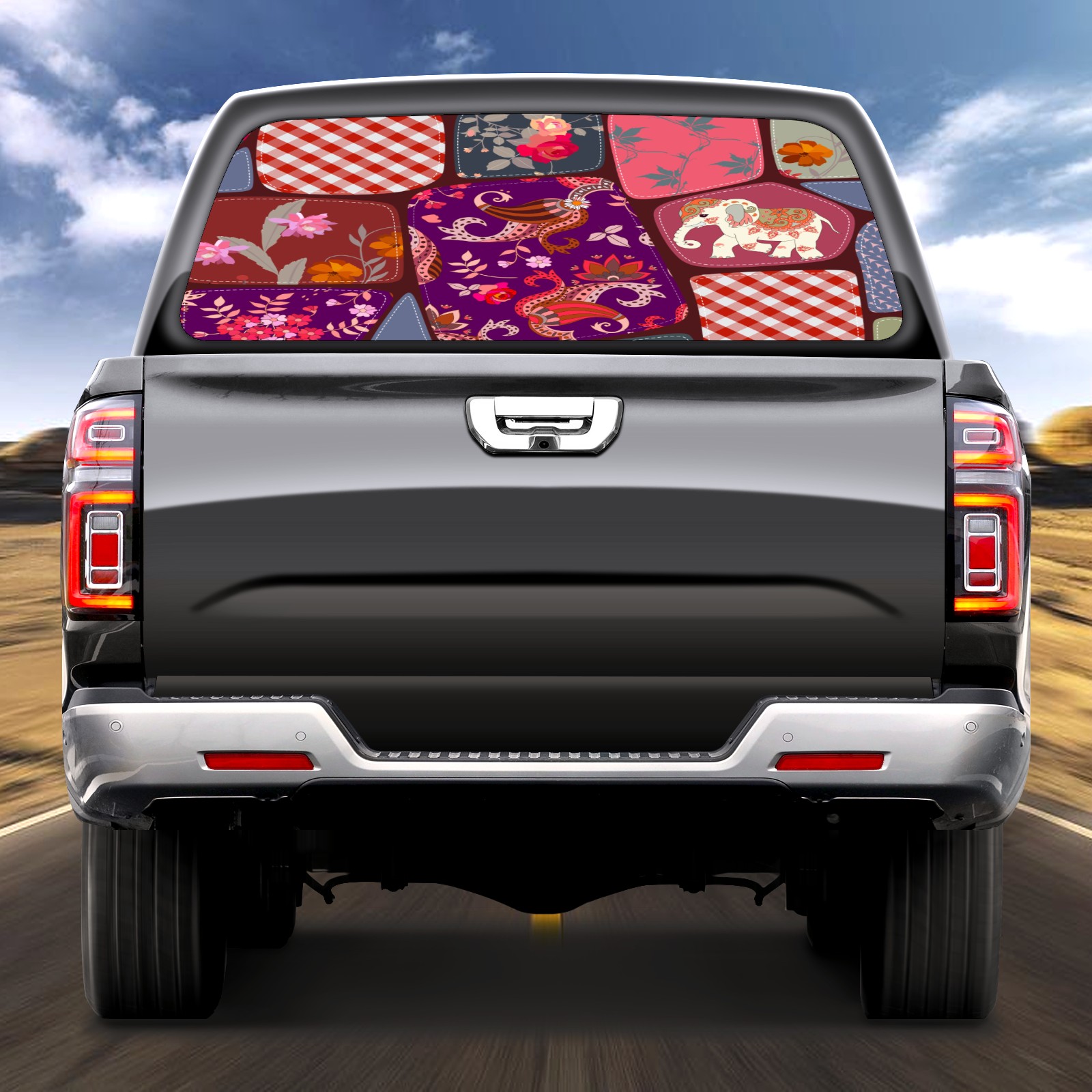 Vintage Elephant Rear Window Decals for Trucks- Pickup Car Window Stickers Decal- Truck Back Window Tint Decal Graphic Perforated Vinyl Truck Stickers 66" X 22"