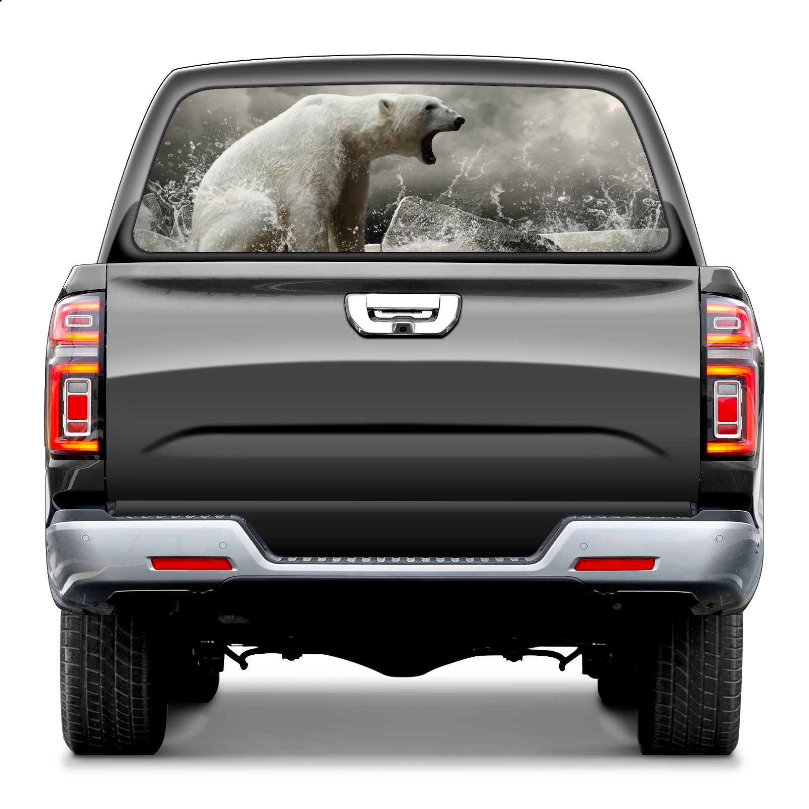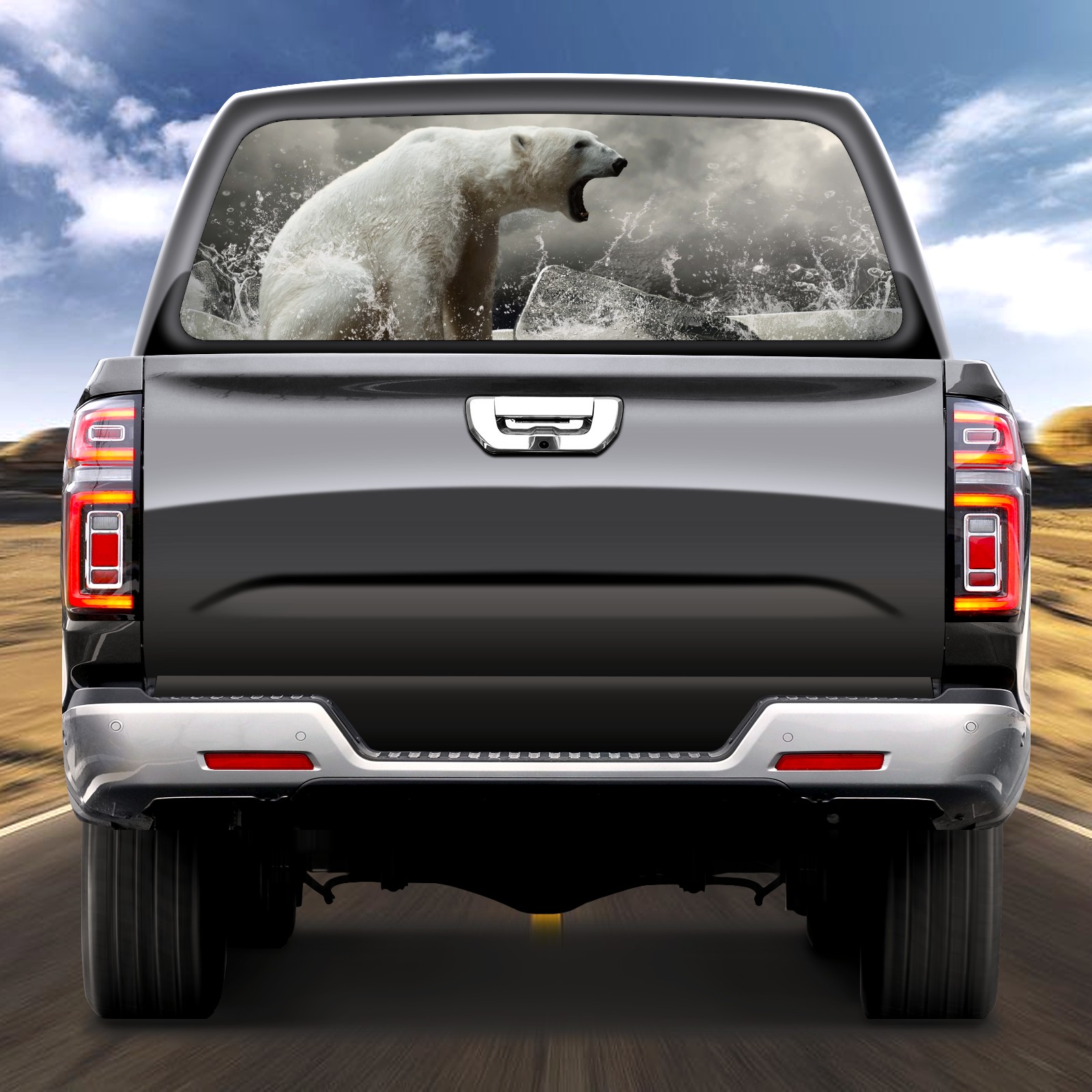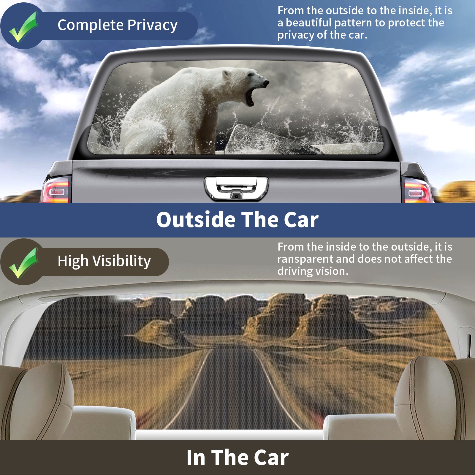Polar Bear Background Rear Window Decals for Trucks- Pickup Car Window Stickers Decal- Truck Back Window Tint Decal Graphic Perforated Vinyl Truck Stickers 66" X 22"