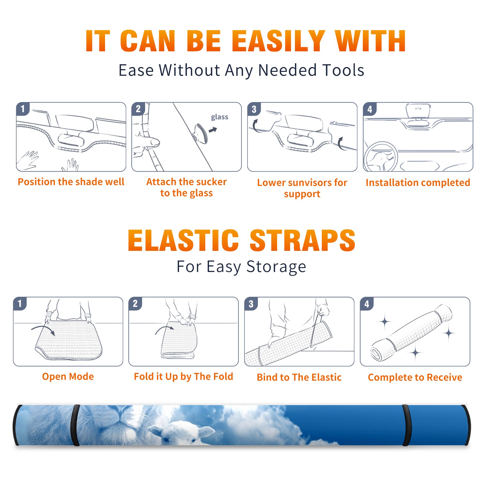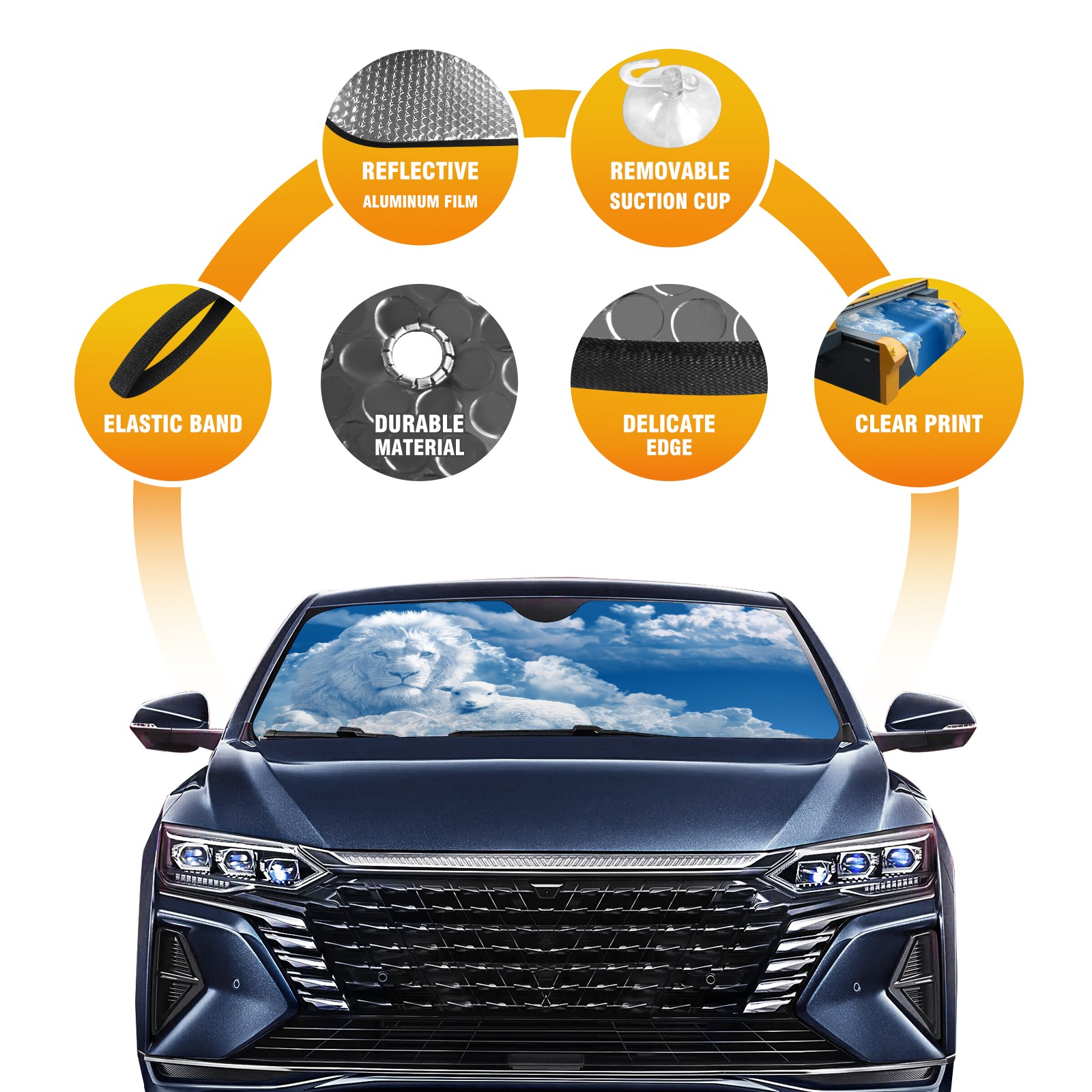 <b>Foldable Premium Car Windshield Sunshade is your great solution to reduce your car’s interior temperature dramatically!This is definitely a must-have item for your summer travel! </b> <br> ●<b>Size: 55"L x 30"W </b> <br> ●<b>Blocking Uv Rays & Heat Insulation</b><br> Our vehicle sunshade provides effective UV, sun, and summer heat protection .Maintains dashboards by preventing fading and cracking <br> ●<b>Easy-To-Store Folding Design Makes Storage Convenient</b> <br> Car sunshades comes with removable suction cups and elastic bands that you can install or remove easily and quickly. In a matter of seconds you can install your purchased windshield visor. And the detachable suction cups on the automotive's sun visor leave no marks on the windows when removed. When not in use, the front windshield can be conveniently and effectively placed on the door pocket or the dashboard, which is beautiful and does not occupy the interior space.<br> <br> <b>Stay cool and protected this summer with our fun and functional car windshield sun shade!Perfectly crafted to fit most vehicles, this premium quality sun blocker is your go-to automotive accessory. it's time to say goodbye to scorching hot seats and hello to comfort on every drive!</b>