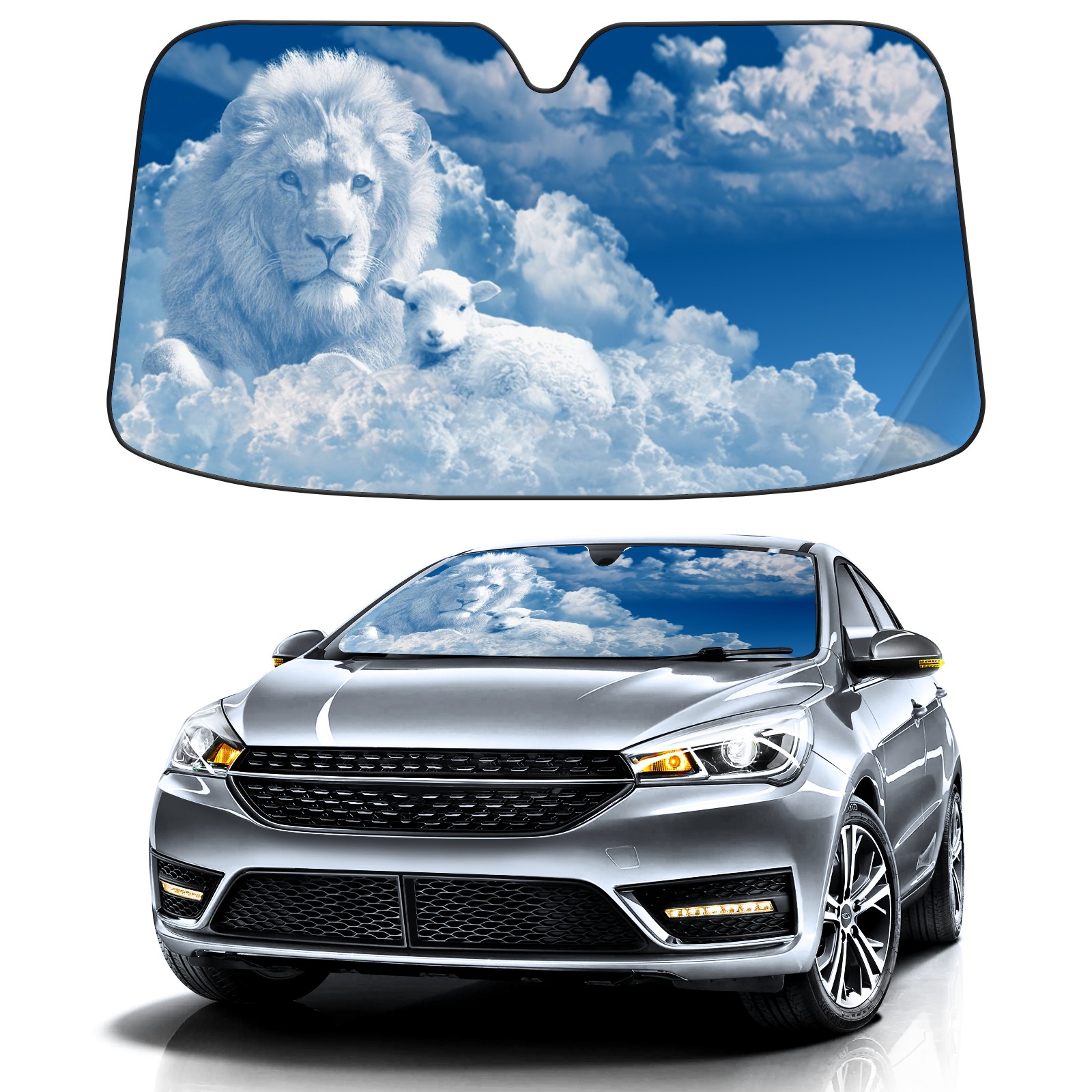 Car Windshield Sun Shade for Front Window Blue Sky Lion Cloud Foldable Sun Visor Cover Sunshade for Car Windshield-Car Heat Shield Sunshade Protector-Car Privacy Sun Blocker