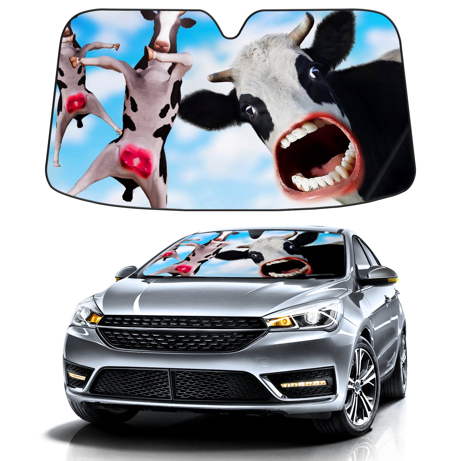 • <b>Foldable Premium Car Windshield Sunshade is your great solution to reduce your car’s interior temperature dramatically!This is definitely a must-have item for your summer travel! </b> <br> ●<b>Size: 55"L x 30"W </b> <br> ●<b>Blocking Uv Rays & Heat Insulation</b><br> Our vehicle sunshade provides effective UV, sun, and summer heat protection .Maintains dashboards by preventing fading and cracking <br> ●<b>Easy-To-Store Folding Design Makes Storage Convenient</b> <br> Car sunshades comes with removable suction cups and elastic bands that you can install or remove easily and quickly. In a matter of seconds you can install your purchased windshield visor. And the detachable suction cups on the automotive's sun visor leave no marks on the windows when removed. When not in use, the front windshield can be conveniently and effectively placed on the door pocket or the dashboard, which is beautiful and does not occupy the interior space.<br> <br> <b>Stay cool and protected this summer with our fun and functional car windshield sun shade!Perfectly crafted to fit most vehicles, this premium quality sun blocker is your go-to automotive accessory. it's time to say goodbye to scorching hot seats and hello to comfort on every drive!</b>