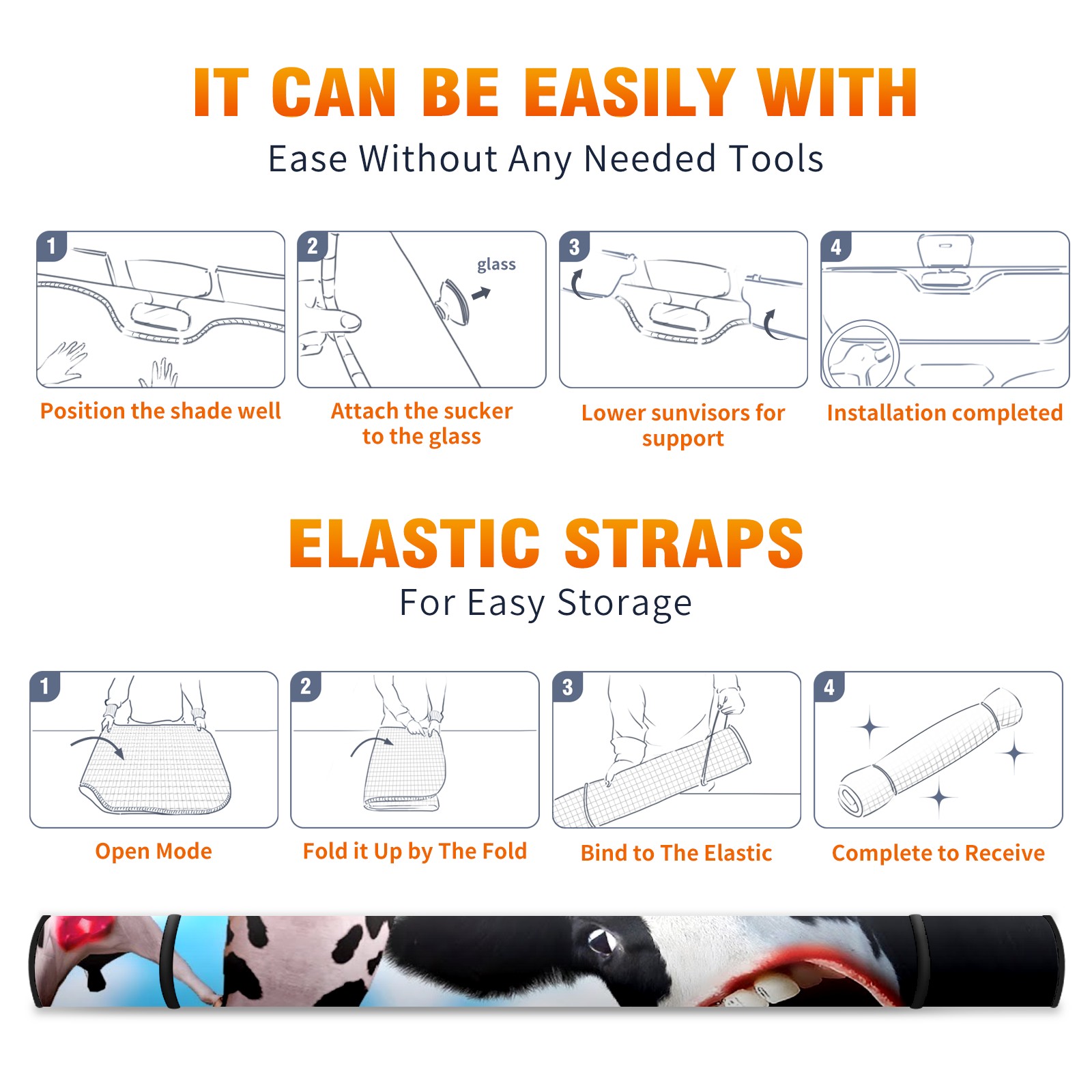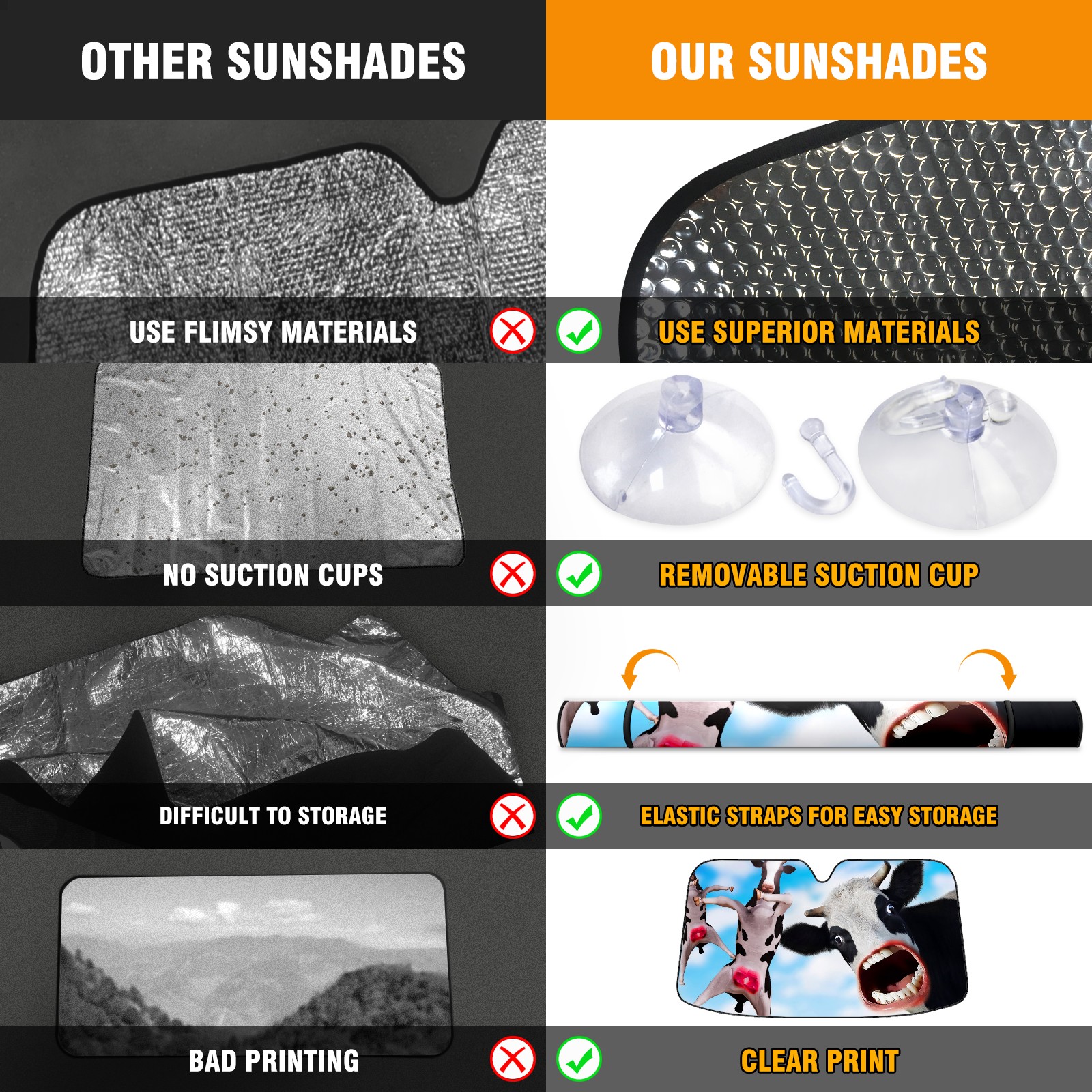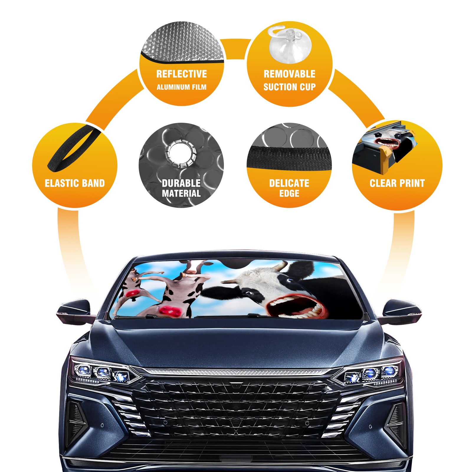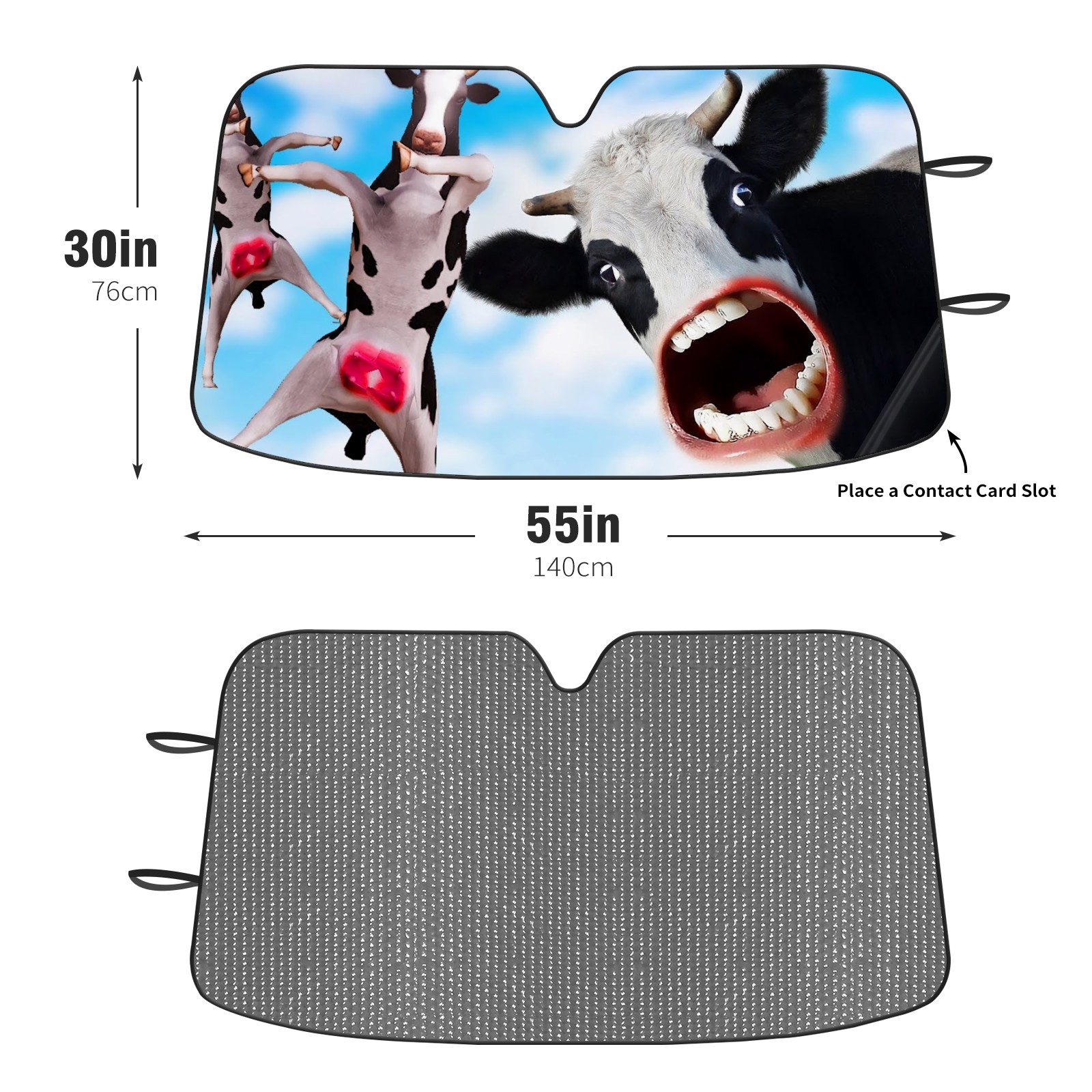 <b>Foldable Premium Car Windshield Sunshade is your great solution to reduce your car’s interior temperature dramatically!This is definitely a must-have item for your summer travel! </b> <br> ●<b>Size: 55"L x 30"W </b> <br> ●<b>Blocking Uv Rays & Heat Insulation</b><br> Our vehicle sunshade provides effective UV, sun, and summer heat protection .Maintains dashboards by preventing fading and cracking <br> ●<b>Easy-To-Store Folding Design Makes Storage Convenient</b> <br> Car sunshades comes with removable suction cups and elastic bands that you can install or remove easily and quickly. In a matter of seconds you can install your purchased windshield visor. And the detachable suction cups on the automotive's sun visor leave no marks on the windows when removed. When not in use, the front windshield can be conveniently and effectively placed on the door pocket or the dashboard, which is beautiful and does not occupy the interior space.<br> <br> <b>Stay cool and protected this summer with our fun and functional car windshield sun shade!Perfectly crafted to fit most vehicles, this premium quality sun blocker is your go-to automotive accessory. it's time to say goodbye to scorching hot seats and hello to comfort on every drive!</b>