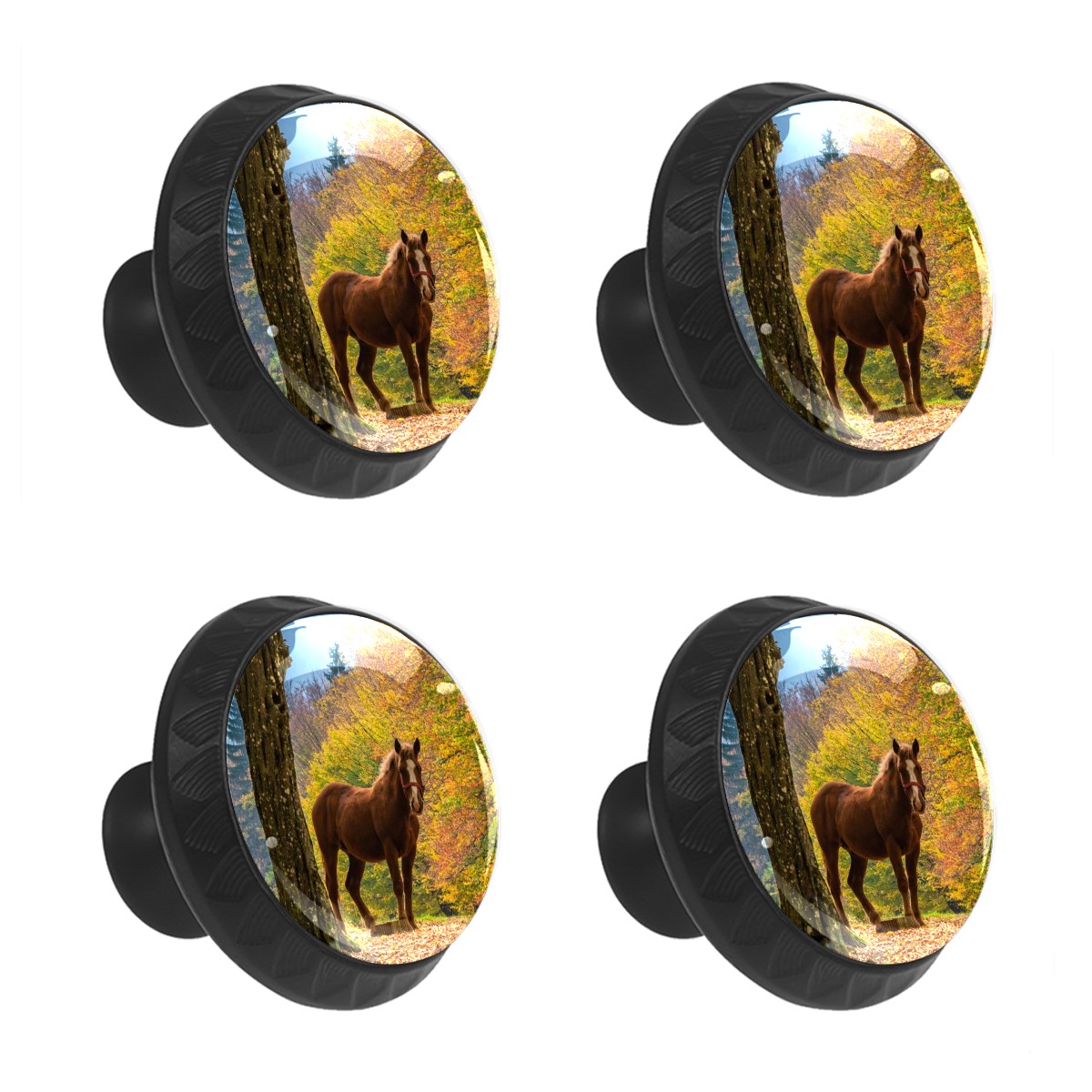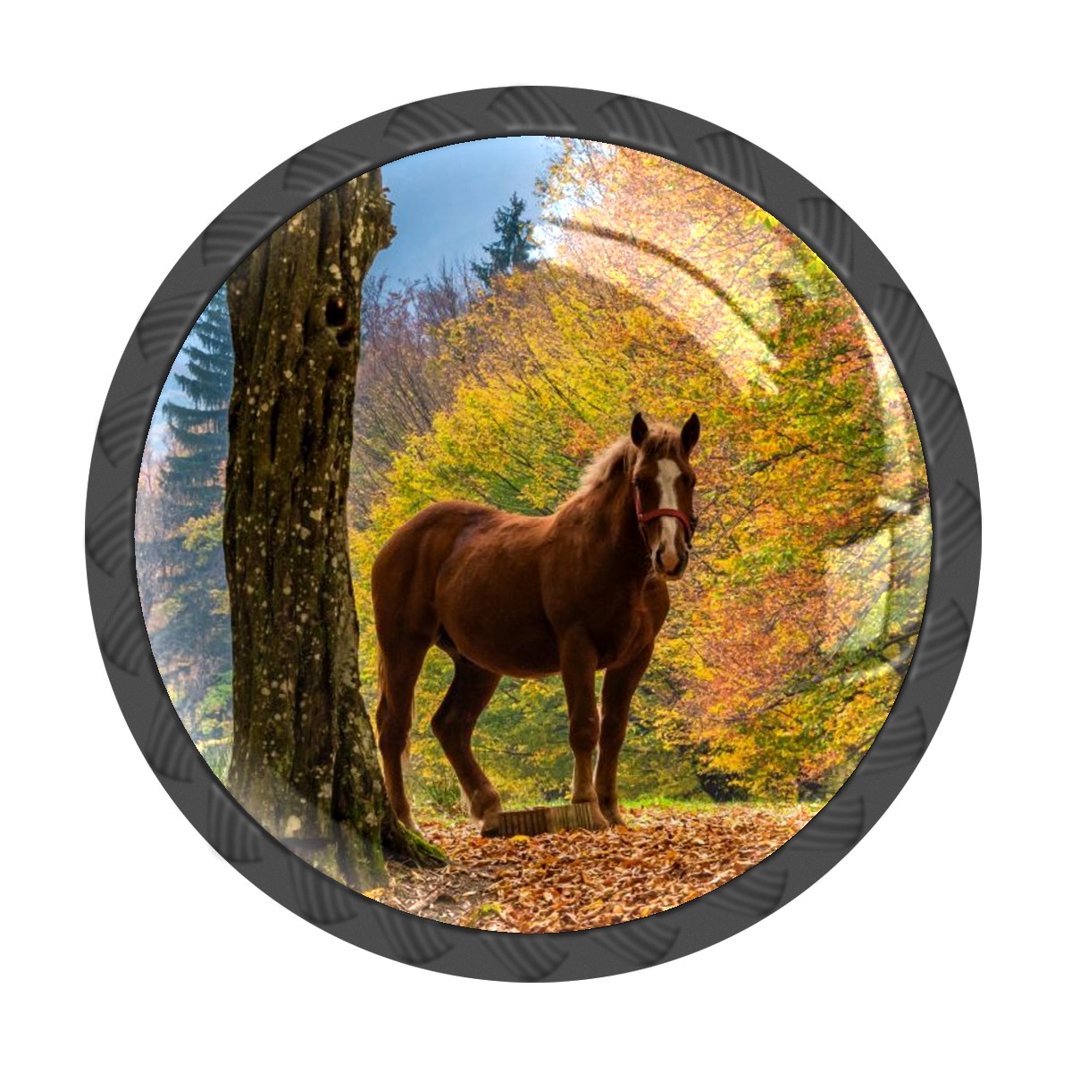 4 Pack Drawer Knobs Pulls Fall Trees Leaves Horse Crystal Glass Round Knobs Pulls Handles for Cabinets Dressers Kitchen Bathroom - Cupboards Wardrobes Hardware Furniture Knobs