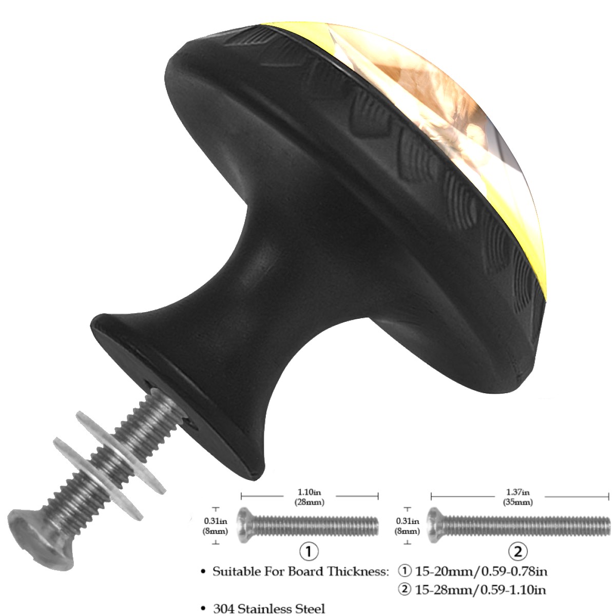 • <p>Decorative Drawer Knobs Pulls Cabinet&nbsp;Handles</p> <p>Package Contents:</p> <p>4 x Cabinet&nbsp; Handles</p> <p>4 x 1.1’’ &nbsp; M ounting Screws &nbsp;</p> <p>4 x 1.37’’ &nbsp;Matching Screws </p> <p>Material:</p> <p>Crafted with a crystal glass surface, combined with ABS plastic and quality materials for durability and aesthetics.</p> <p>Size:</p> <p>Each knob measures 1.37 inches in width by 1.10 inches in height, fitting most standard drawers and cabinet doors.</p> <p>Screw Lengths:</p> <p>Available in two lengths: 1.1 inches and 1.37 inches, to accommodate various board thicknesses.</p> <p>Easy to Install:</p> <p>Each drawer knob comes with a fitting screw, making installation easy without the need for additional accessories.</p> <p>Wide Application:</p> <p>These drawer pulls are versatile for use in various home settings, including cabinets, dressers, drawers, wardrobes, nightstands, closets, bookshelves, kitchens, bathrooms, bedrooms, living rooms, and more,&nbsp; adding consistency and sophistication to your home decor.</p>