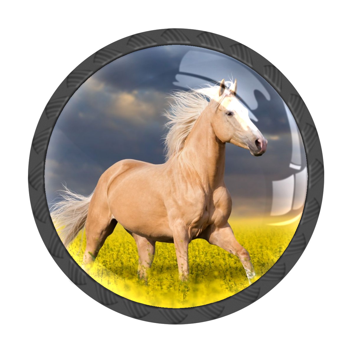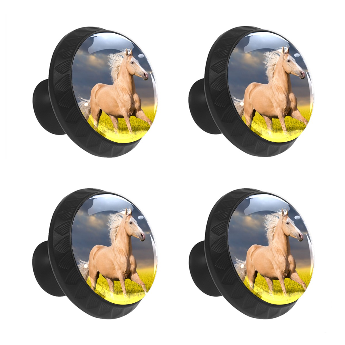 4 Pack Drawer Knobs Pulls Sky Flowers And Horse Crystal Glass Round Knobs Pulls Handles for Cabinets Dressers Kitchen Bathroom - Cupboards Wardrobes Hardware Furniture Knobs