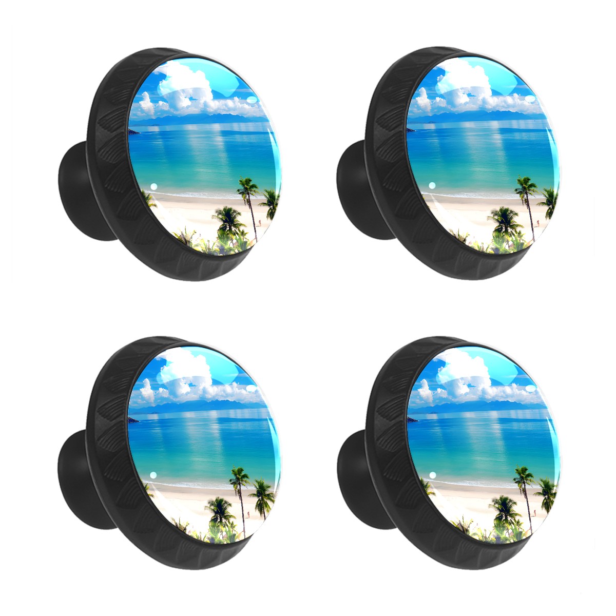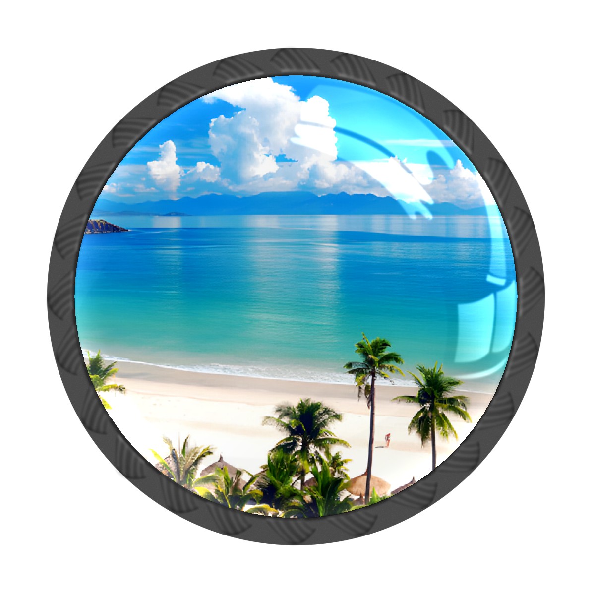 4 Pack Drawer Knobs Pulls Beach Blue Crystal Glass Round Knobs Pulls Handles for Cabinets Dressers Kitchen Bathroom - Cupboards Wardrobes Hardware Furniture Knobs