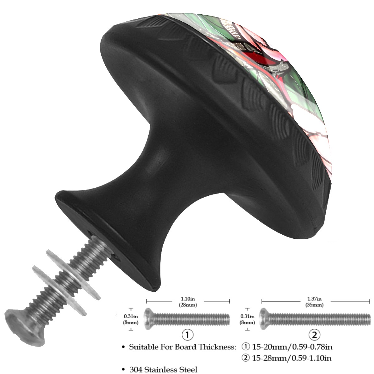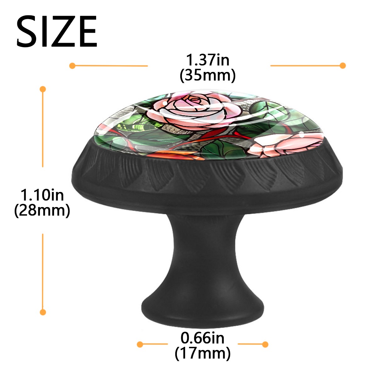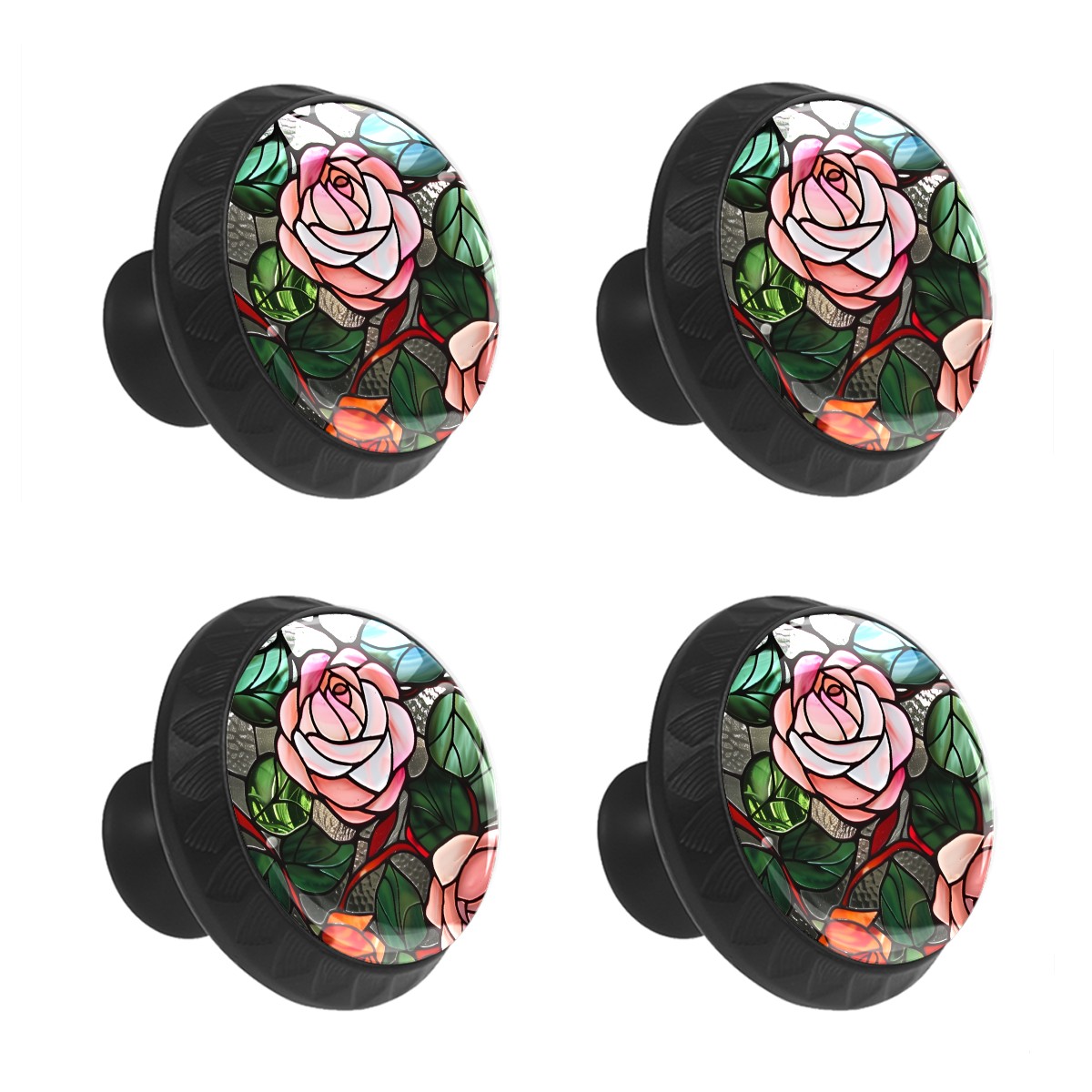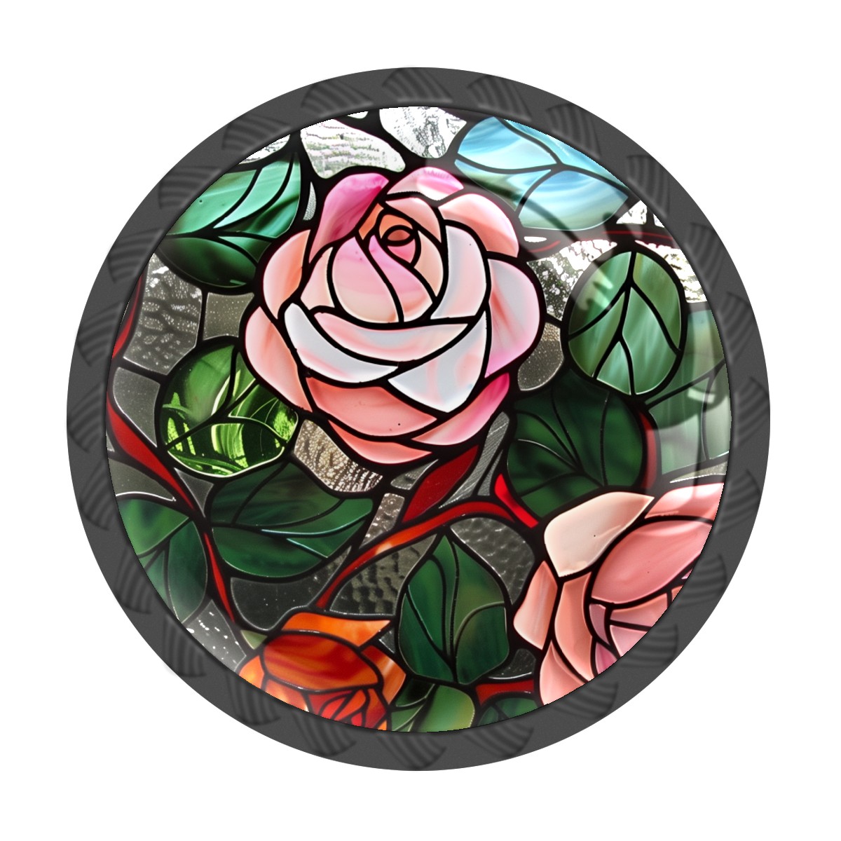 4 Pack Drawer Knobs Pulls Stained Glass Pink Roses (4) Crystal Glass Round Knobs Pulls Handles for Cabinets Dressers Kitchen Bathroom - Cupboards Wardrobes Hardware Furniture Knobs