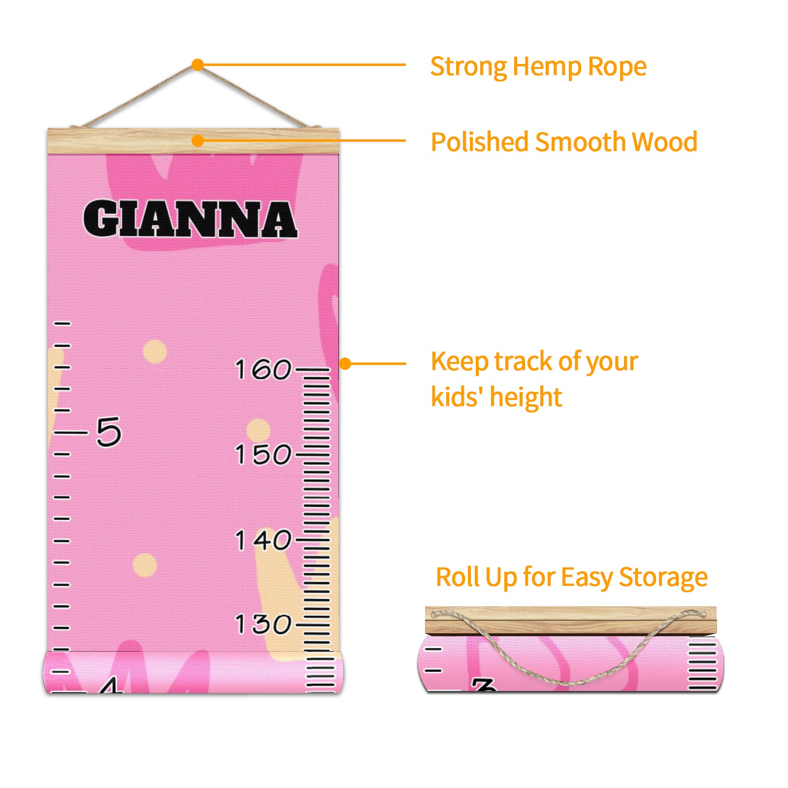 <p><b>Baby height growth chart can be used anywhere</b></p><p>Ideal for kids nursery decoration, kids bedroom, interior walls or windows, playroom, living room, homedecoration.Add name and make the growth chart special!</p><p><br></p><p><b>Easy to fold and carry</b></p><p>With rope at the top of the growth chart, it is easy to install and remove.You can fold it and unfold any time any where.</p><p><br></p><p><b>Perfect Gift Idea for Kids</b></p><p>Environmental and non-toxic for kids use, it must be a perfect gift for baby, kids, girls, and boys.This is a best choice for your friend who have kids or baby as a popular gift.</p><p><br></p><p><b>Easy to read</b></p><p>Measurement accrate with 2 scales, Centimeters and feet. The letters are big enough, very easy to read.</p><p><br></p><p><b>60cm(23.6inch) Over Ground Design</b></p><p>Not only can protect from dust and other damage, but also will not interfere in floor cleaning.</p><p><br></p><p><b>Features:</b></p><p>Rope for Hanging</p><p>Material: Linen + Wood</p><p>Dimensions: 13.4x56 inches</p><p>Weight: 7.5 once</p><p>Package Included: 1 * Baby Growth Chart</p>