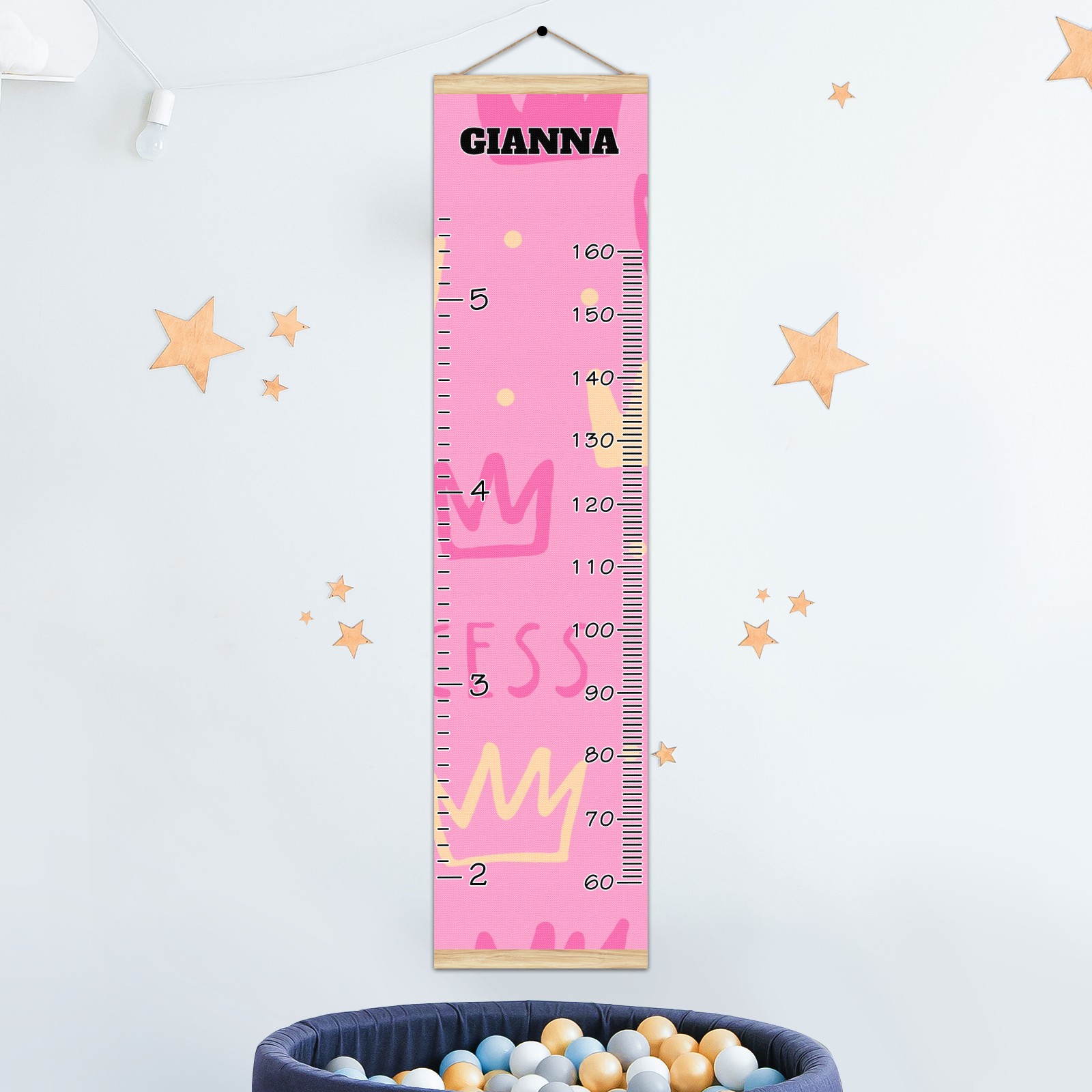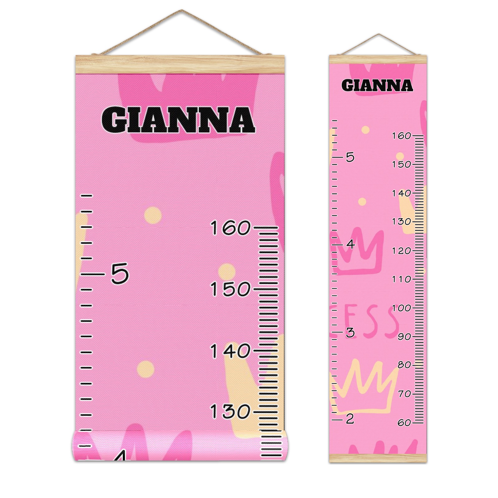Personalized Kids Name Growth Chart Ruler for Wall Wood Frame Canvas Height Measure Chart 13.4x56 in Hanging Growth Chart Princess Girl2.17 Boys Girls Room Decor