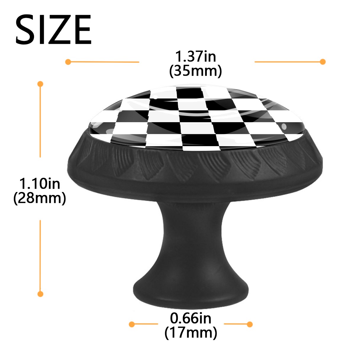 4 Pack Cabinet Knobs Black And White Checkered Drawer Pulls Crystal Glass Round Knobs Handles for Dressers Drawer Bathroom Kitchen Cupboards Wardrobes Hardware Furniture Knobs