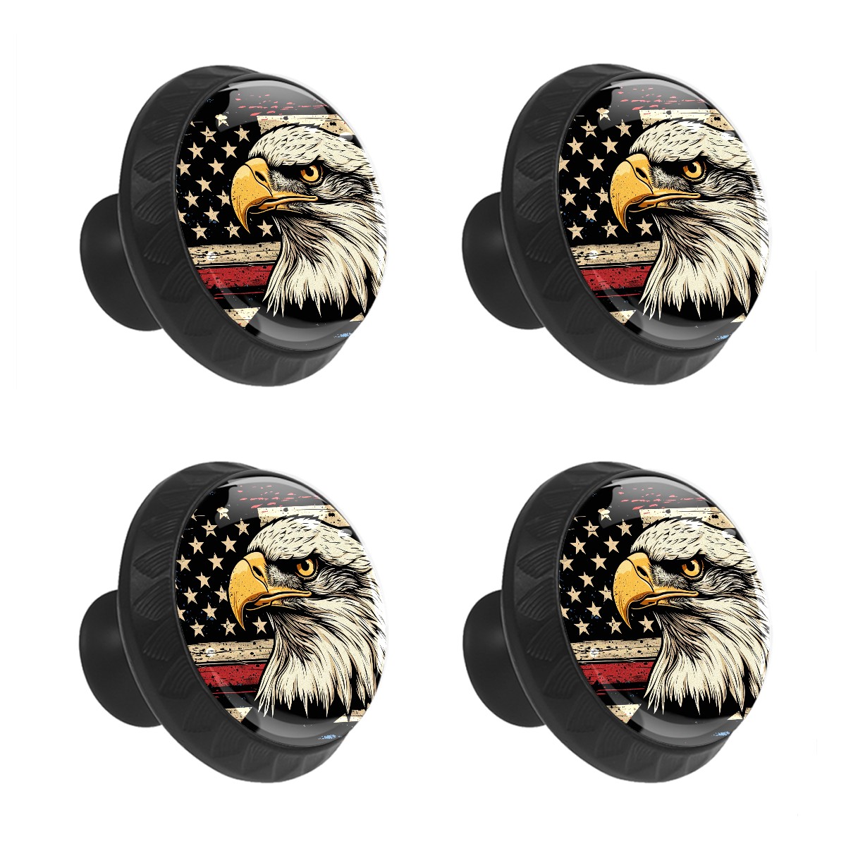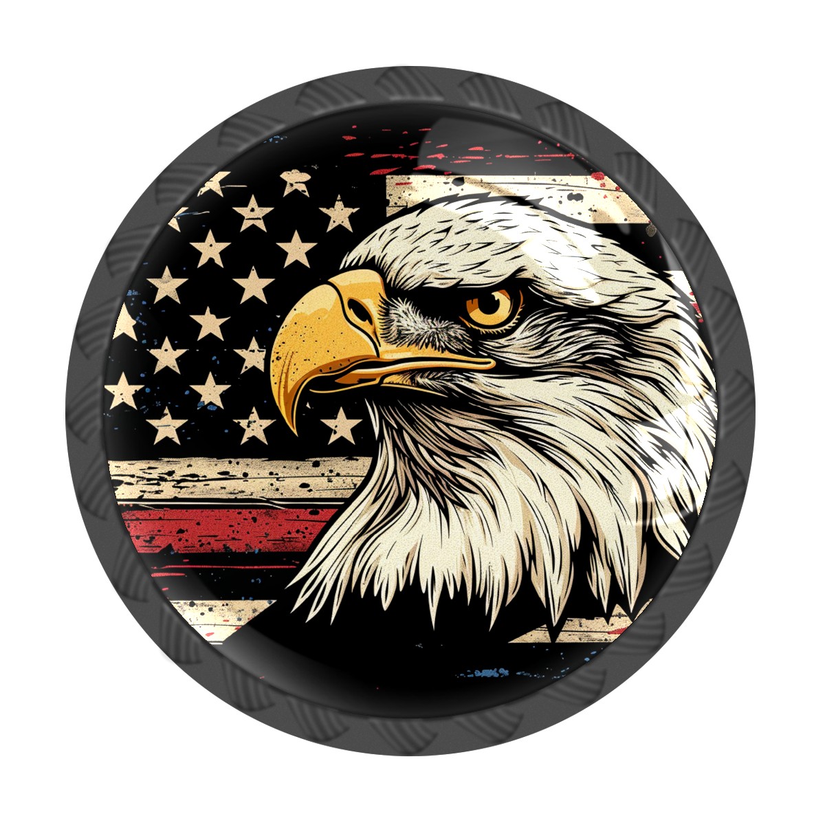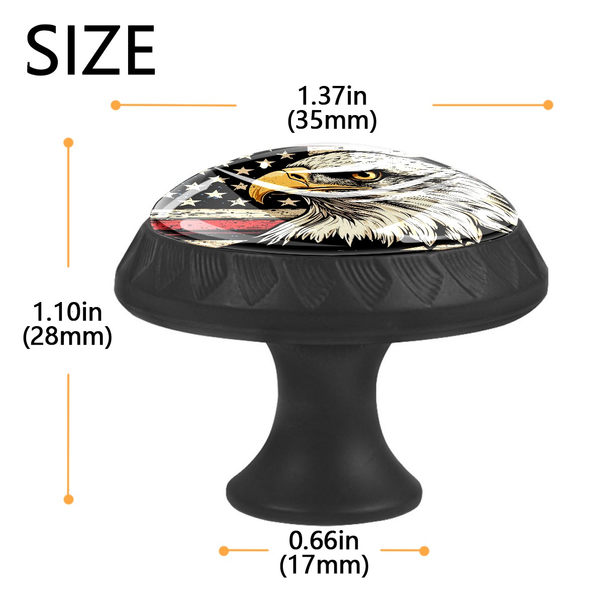4 Pack Cabinet Knobs American Flag Eagle Drawer Pulls Crystal Glass Round Knobs Handles for Dressers Drawer Bathroom Kitchen Cupboards Wardrobes Hardware Furniture Knobs
