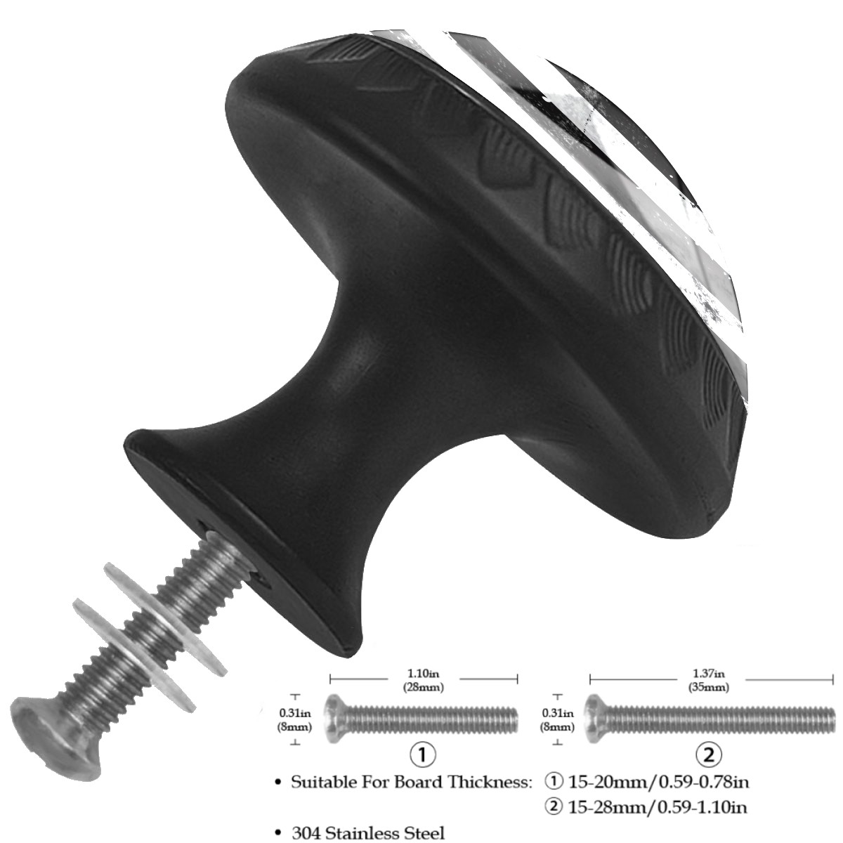 • <p>Decorative Drawer Knobs Pulls Cabinet&nbsp;Handles</p> <p>Package Contents:</p> <p>4 x Cabinet&nbsp; Handles</p> <p>4 x 1.1’’ &nbsp; M ounting Screws &nbsp;</p> <p>4 x 1.37’’ &nbsp;Matching Screws </p> <p>Material:</p> <p>Crafted with a crystal glass surface, combined with ABS plastic and quality materials for durability and aesthetics.</p> <p>Size:</p> <p>Each knob measures 1.37 inches in width by 1.10 inches in height, fitting most standard drawers and cabinet doors.</p> <p>Screw Lengths:</p> <p>Available in two lengths: 1.1 inches and 1.37 inches, to accommodate various board thicknesses.</p> <p>Easy to Install:</p> <p>Each drawer knob comes with a fitting screw, making installation easy without the need for additional accessories.</p> <p>Wide Application:</p> <p>These drawer pulls are versatile for use in various home settings, including cabinets, dressers, drawers, wardrobes, nightstands, closets, bookshelves, kitchens, bathrooms, bedrooms, living rooms, and more,&nbsp; adding consistency and sophistication to your home decor.</p>