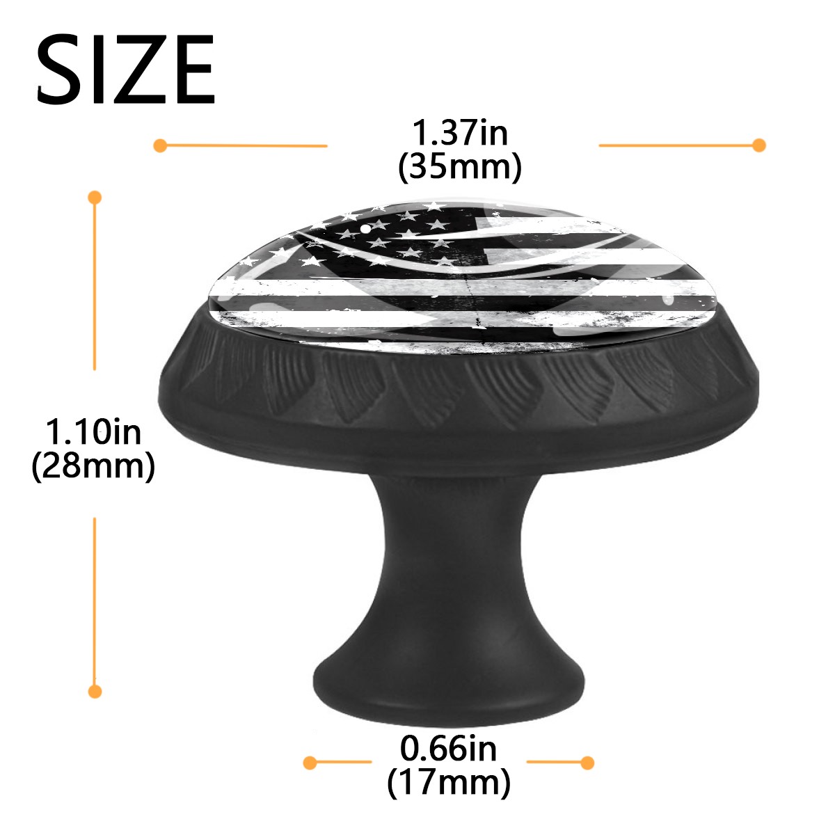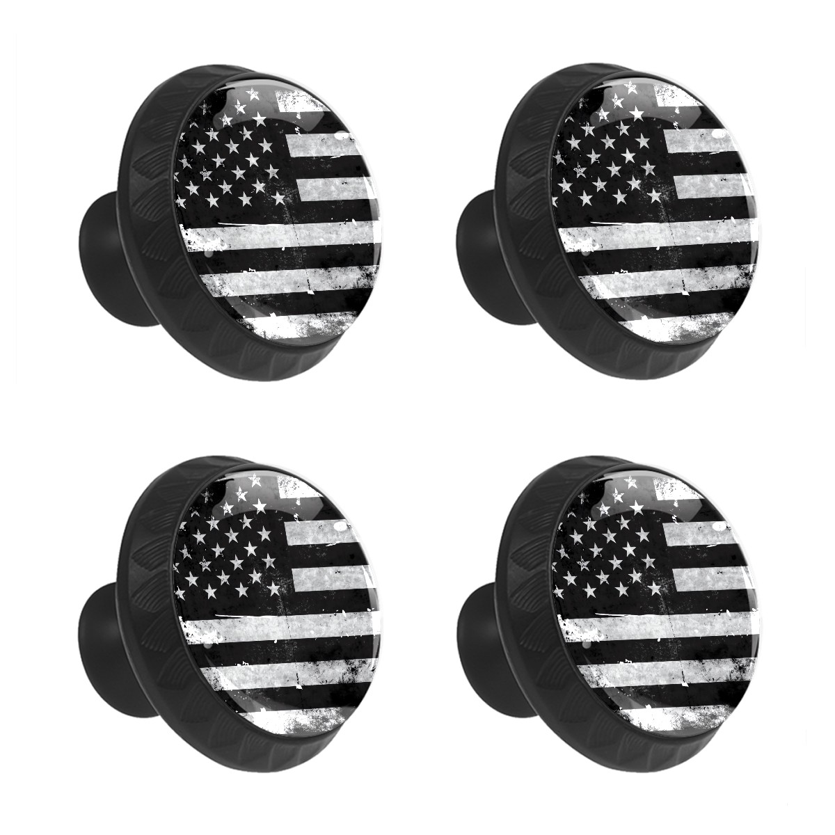 4 Pack Cabinet Knobs Black White Grunge American Flag Drawer Pulls Crystal Glass Round Knobs Handles for Dressers Drawer Bathroom Kitchen Cupboards Wardrobes Hardware Furniture Knobs