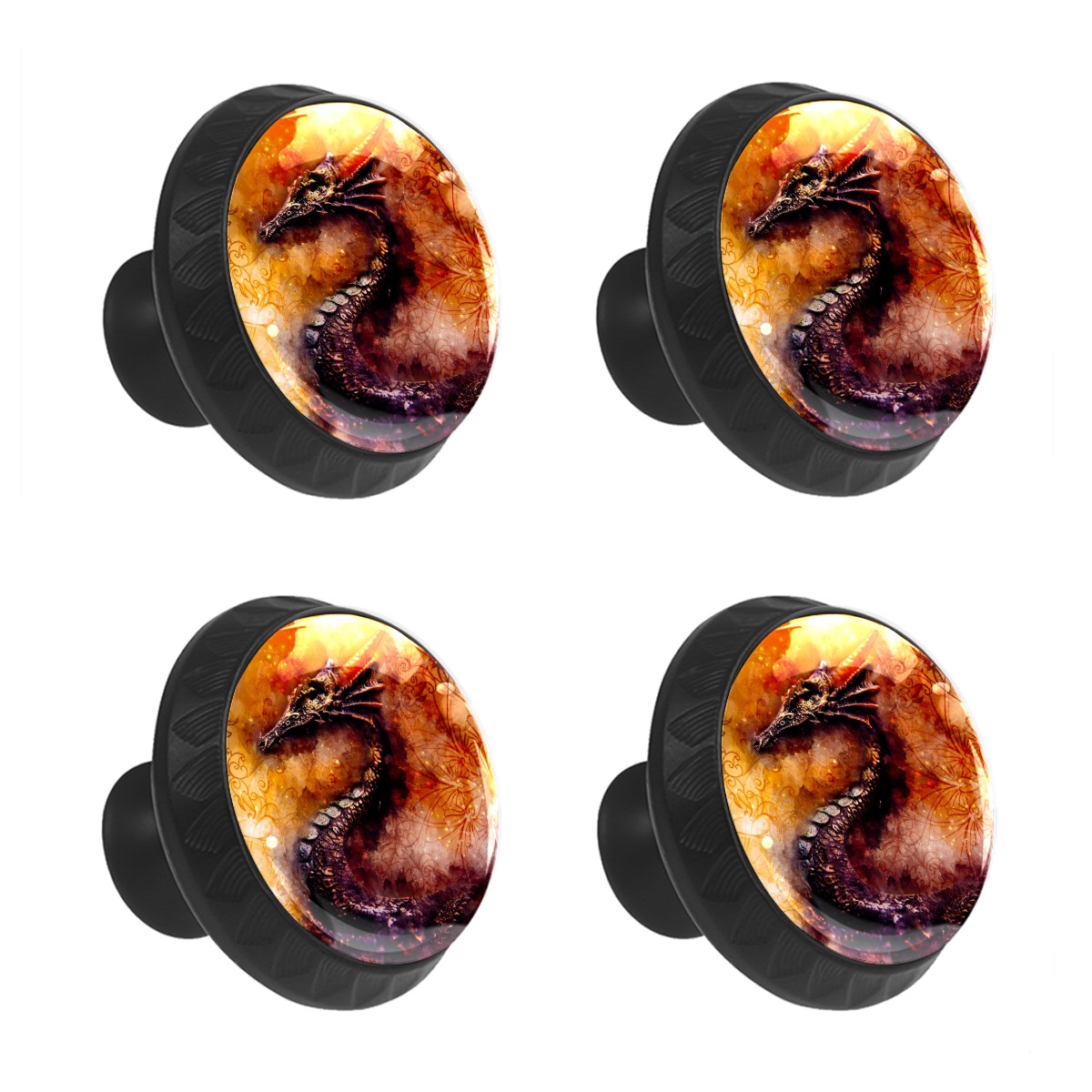4 Pack Cabinet Knobs Watercolor Dragon Drawer Pulls Crystal Glass Round Knobs Handles for Dressers Drawer Bathroom Kitchen Cupboards Wardrobes Hardware Furniture Knobs