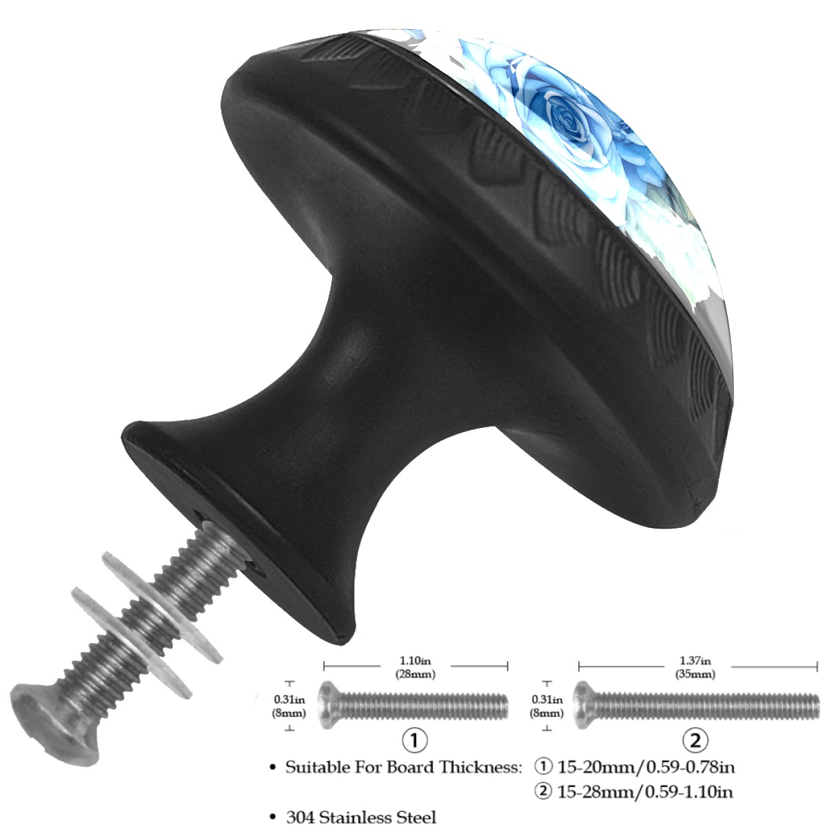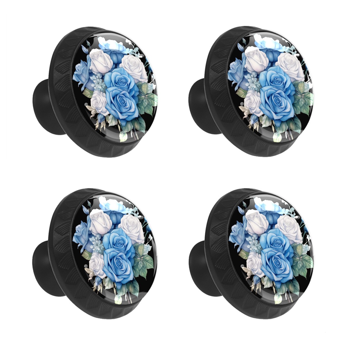 4 Pack Cabinet Knobs Blue Rose Drawer Pulls Crystal Glass Round Knobs Handles for Dressers Drawer Bathroom Kitchen Cupboards Wardrobes Hardware Furniture Knobs