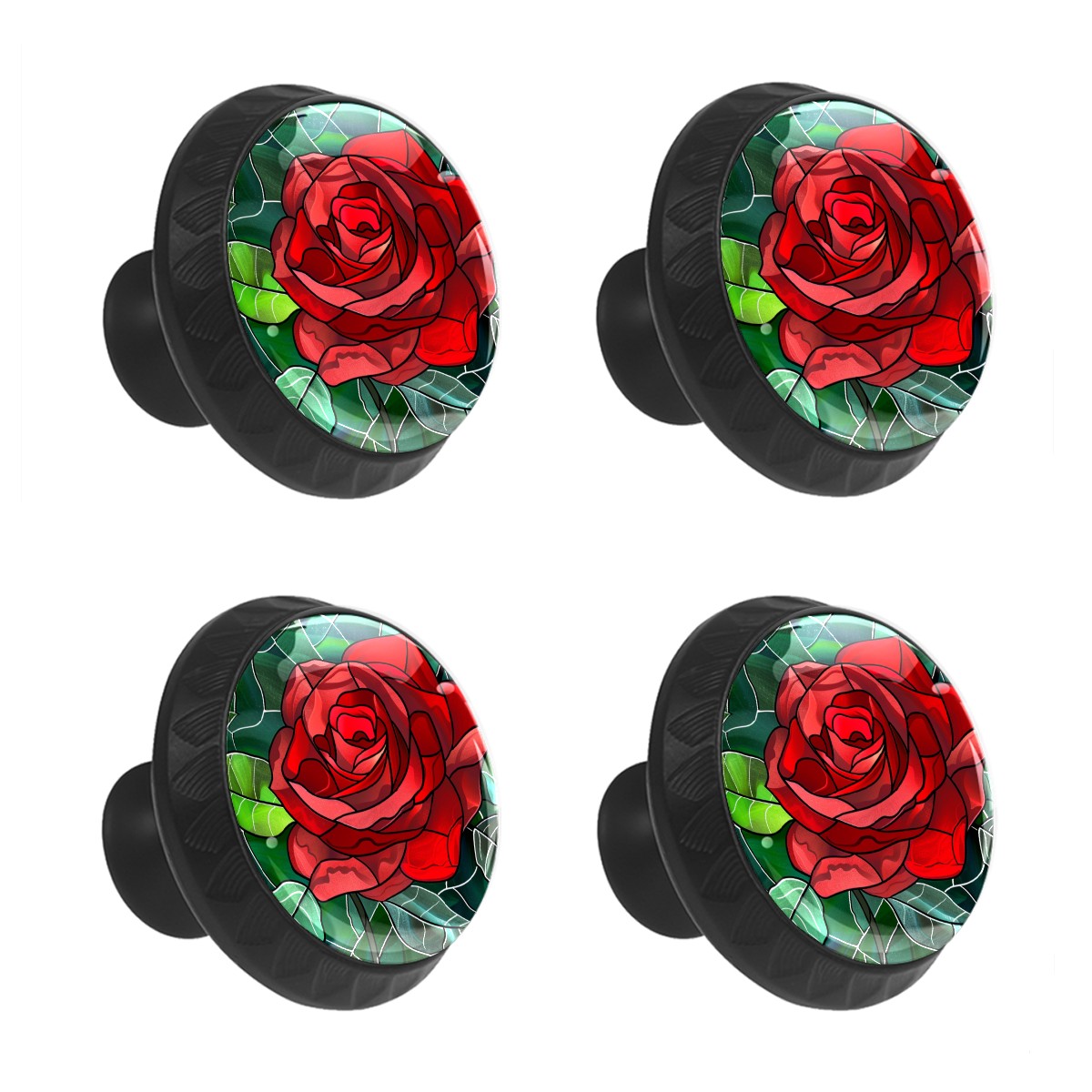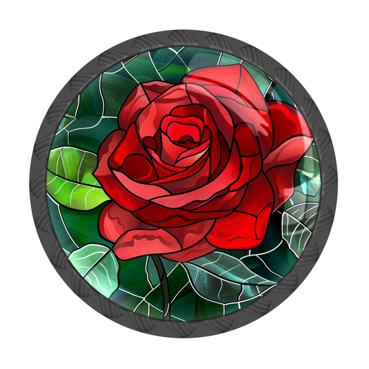 4 Pack Cabinet Knobs Stained Glass Red Rose Drawer Pulls Crystal Glass Round Knobs Handles for Dressers Drawer Bathroom Kitchen Cupboards Wardrobes Hardware Furniture Knobs