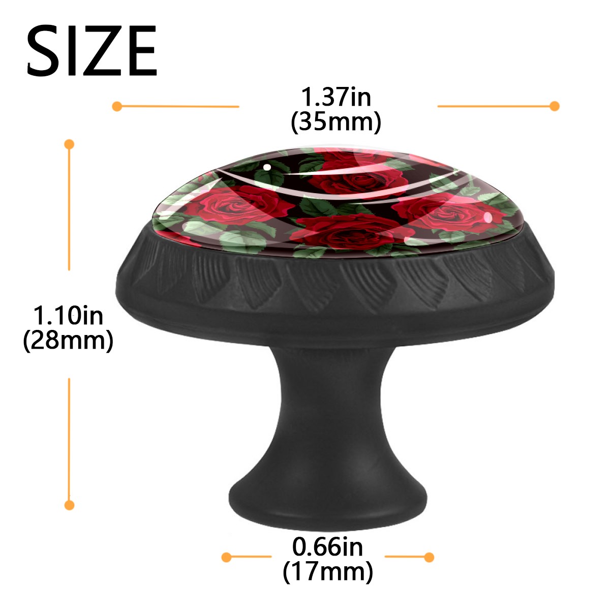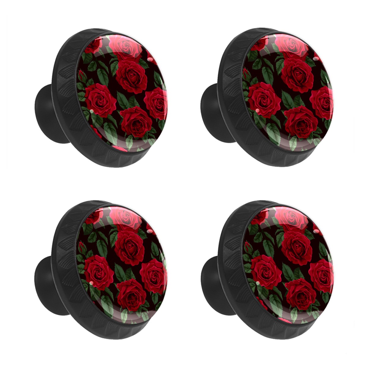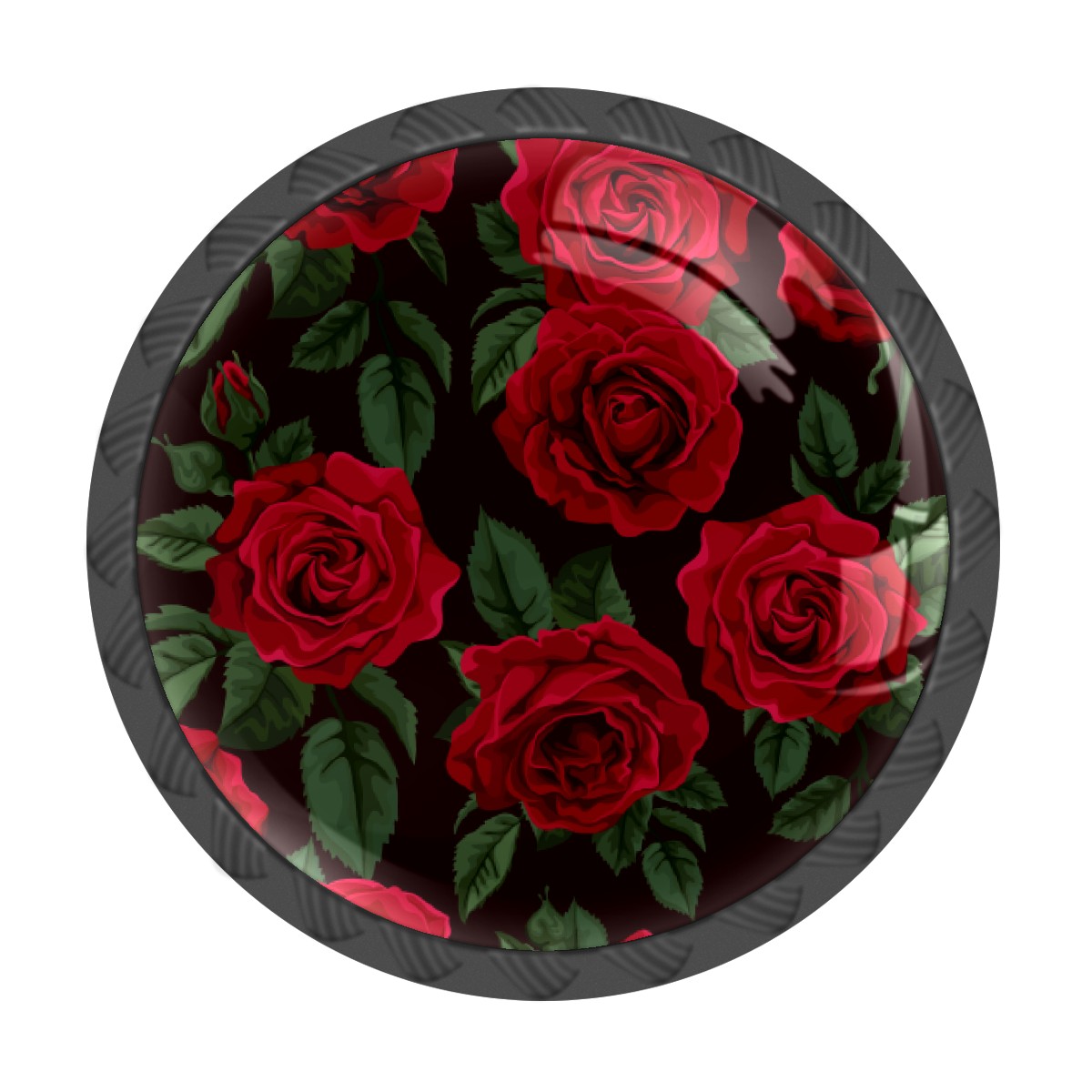 4 Pack Cabinet Knobs Red Rose Floral Drawer Pulls Crystal Glass Round Knobs Handles for Dressers Drawer Bathroom Kitchen Cupboards Wardrobes Hardware Furniture Knobs