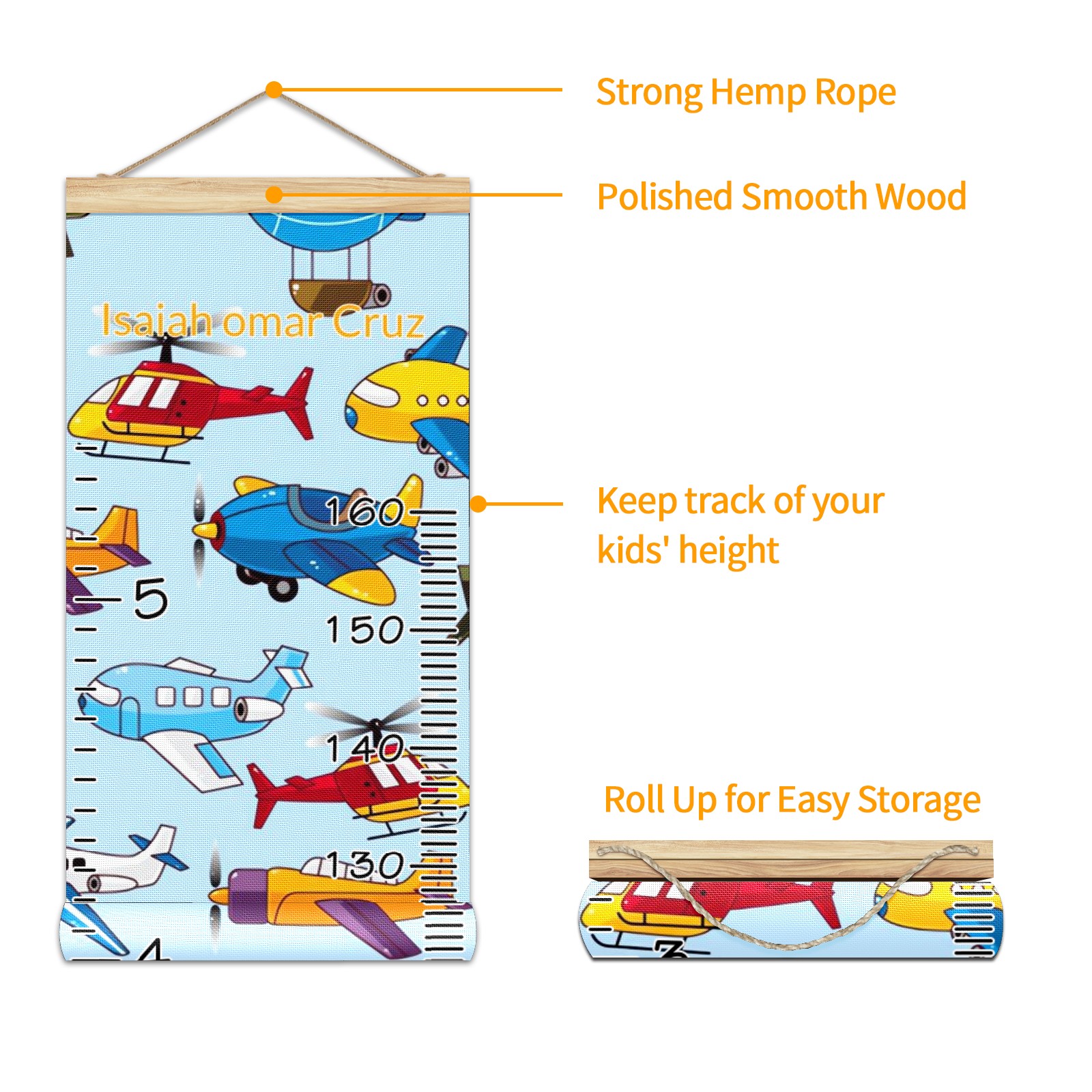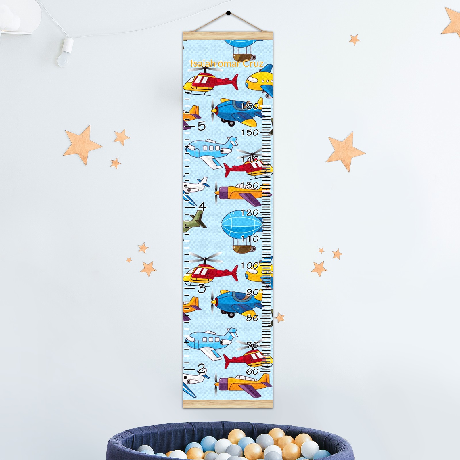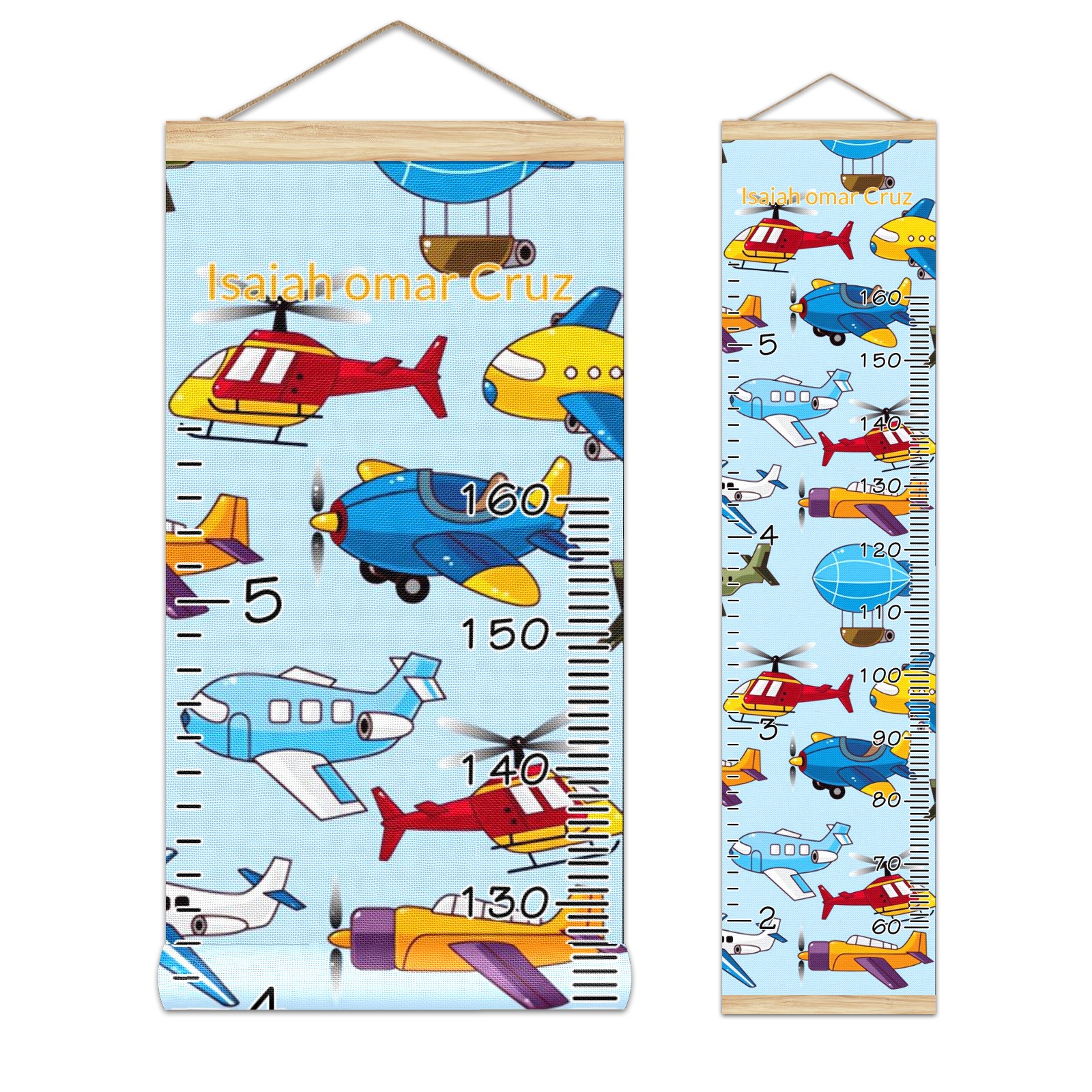 Personalized Kids Name Growth Chart Ruler for Wall Wood Frame Canvas Height Measure Chart 13.4x56 in Hanging Growth Chart Cartoon Airplane Aircraft2.18 Boys Girls Room Decor