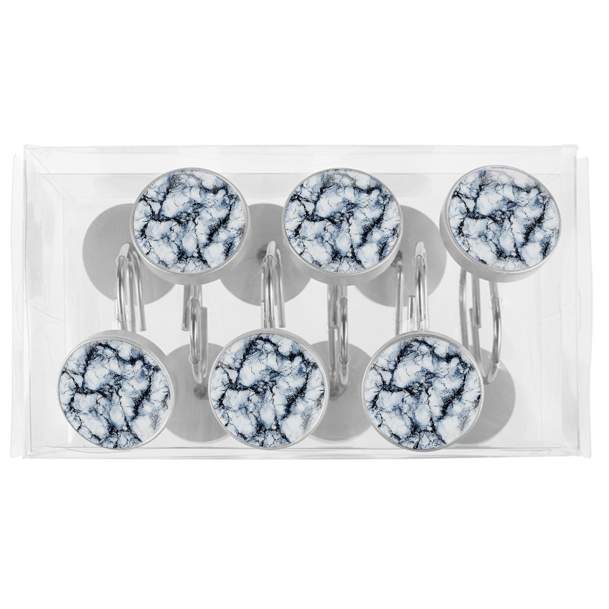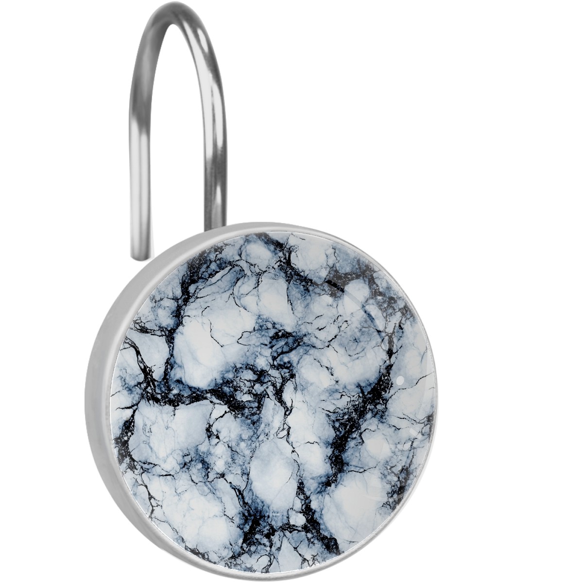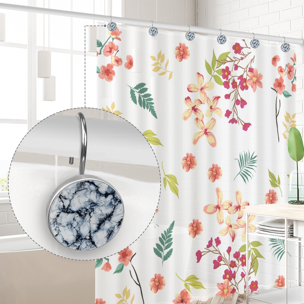Decorative Black And White Marble Shower Curtain Hooks 12pcs Crystal Glass Rustproof Shower Hooks for Bathroom Home Decor Stainless Steel Resin Shower Curtain Rings