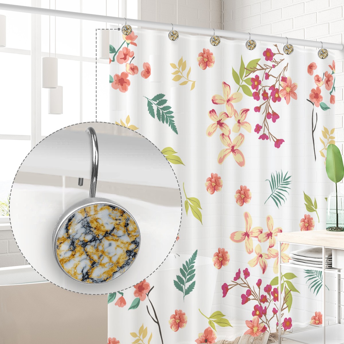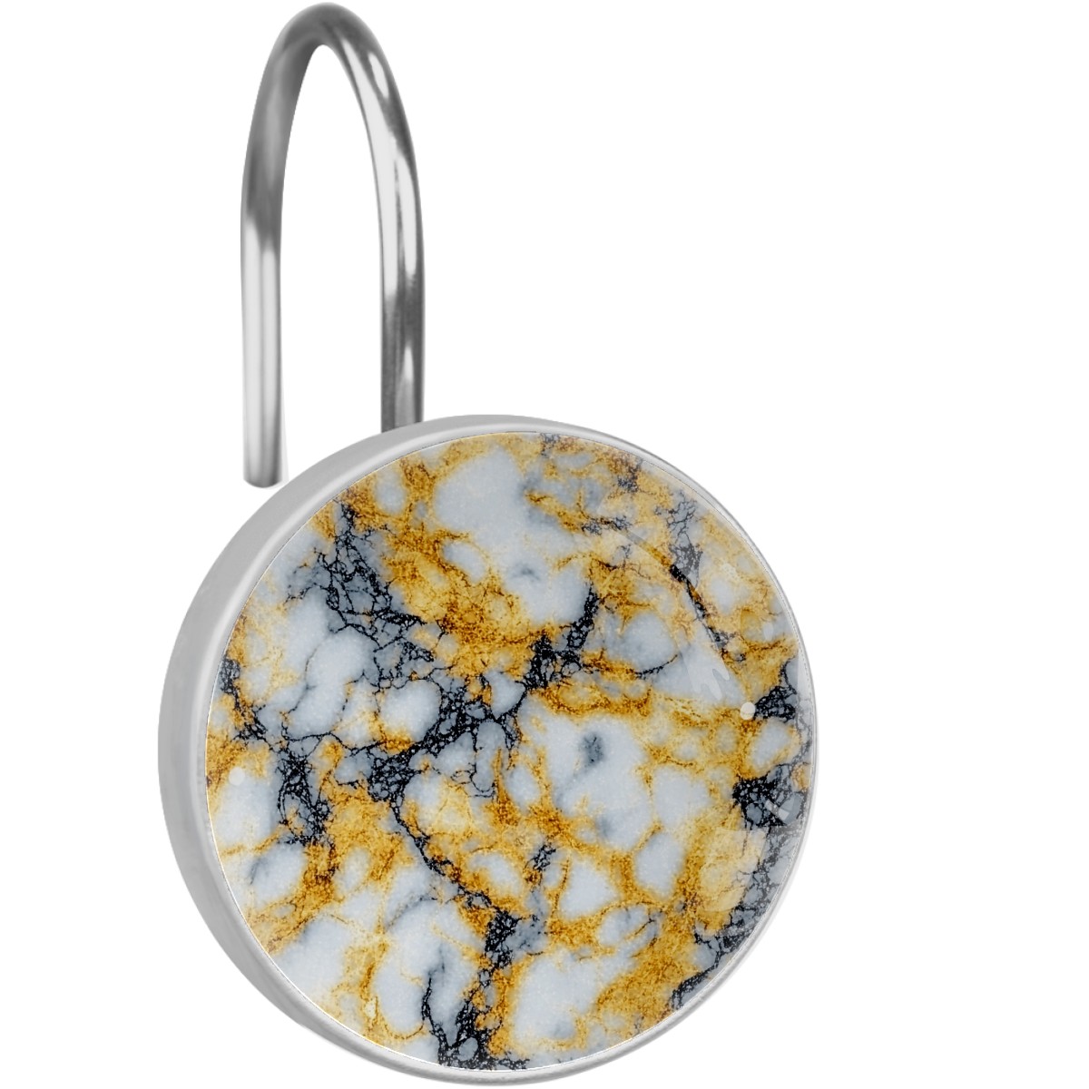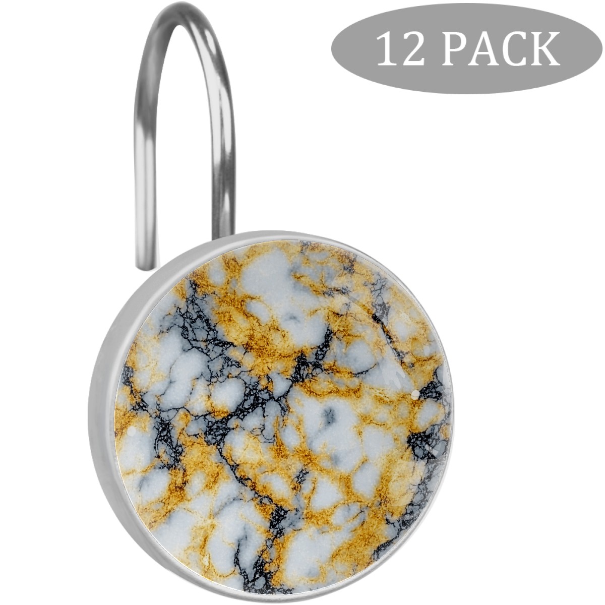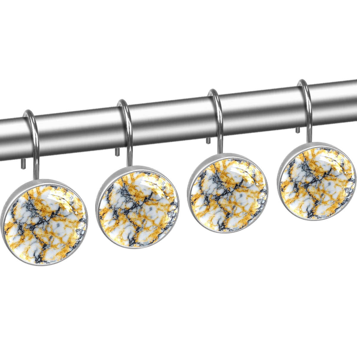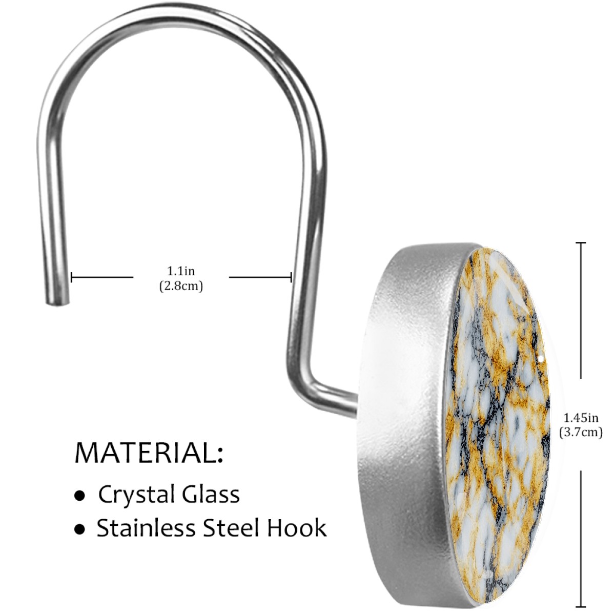 Decorative Yellow Marble Texture Shower Curtain Hooks 12pcs Crystal Glass Rustproof Shower Hooks for Bathroom Home Decor Stainless Steel Resin Shower Curtain Rings