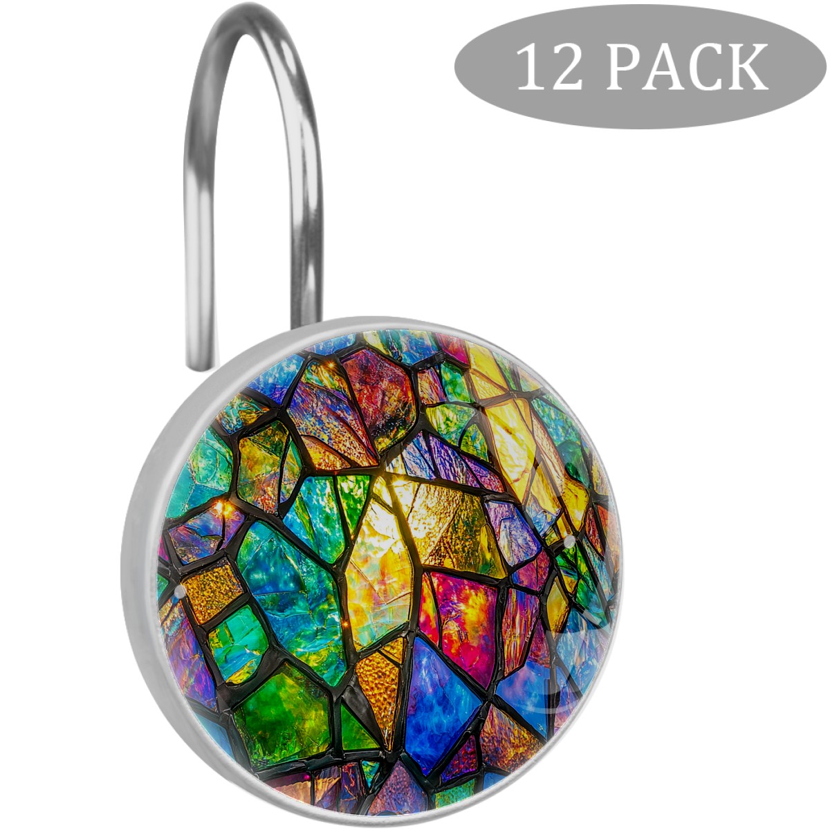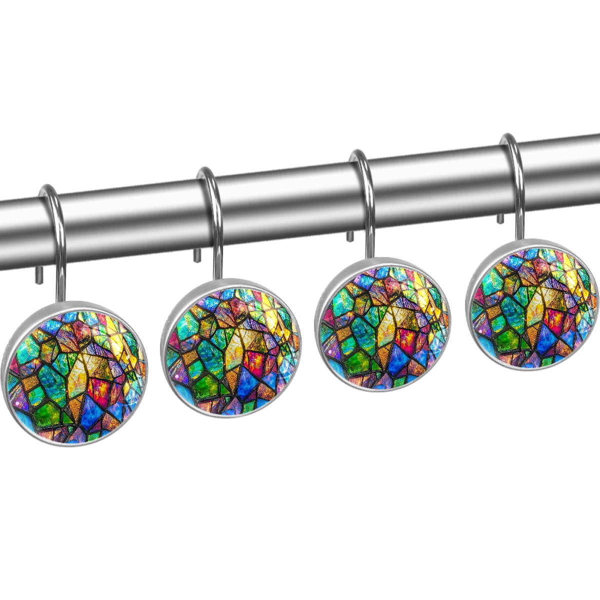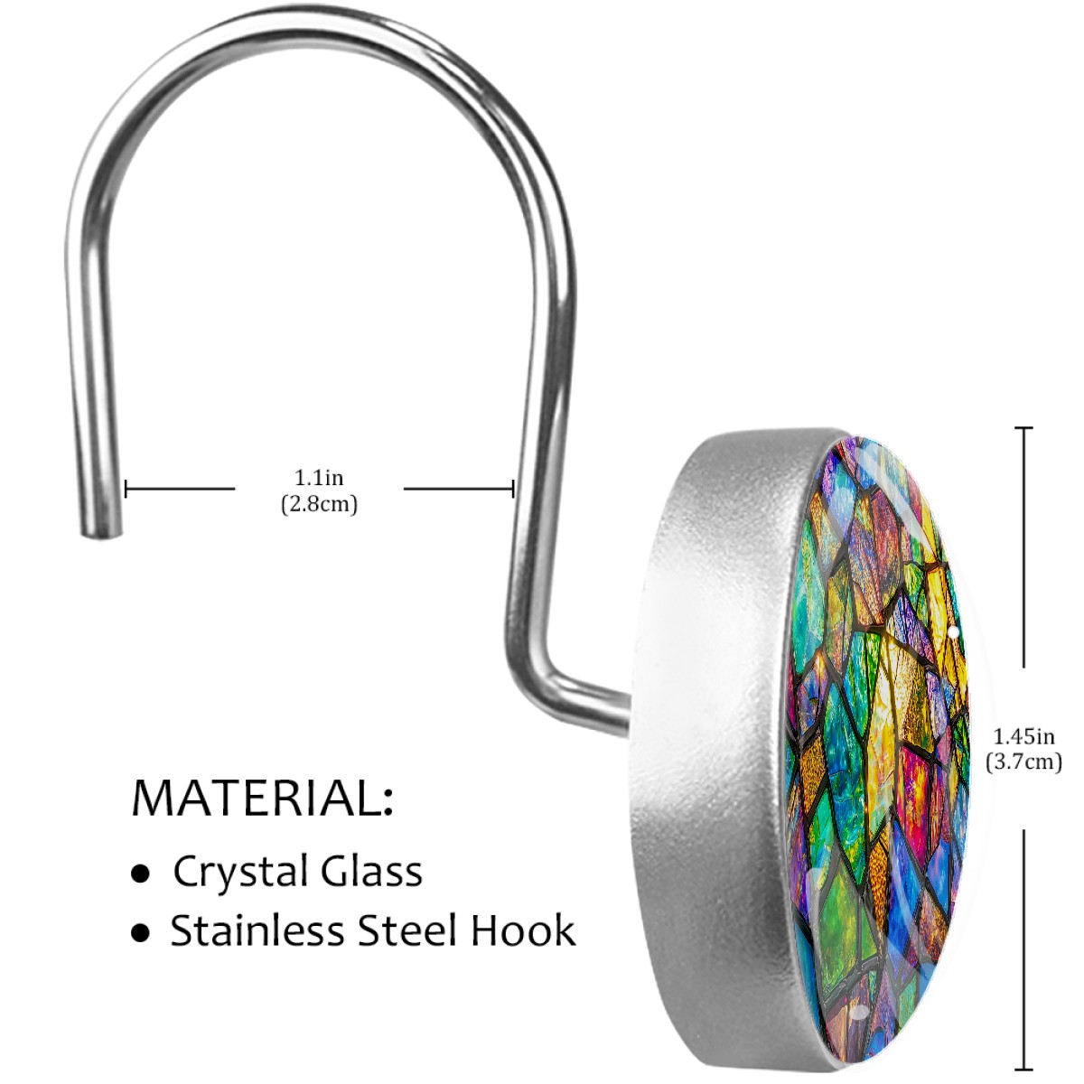 Decorative Rainbow Colored Stained Glass Mosaic_with_iridescent_ra_c0673d57-0018-4094-990c-39d2a31e760c Shower Curtain Hooks 12pcs Crystal Glass Rustproof Shower Hooks for Bathroom Home Decor Stainless Steel Resin Shower Curtain Rings