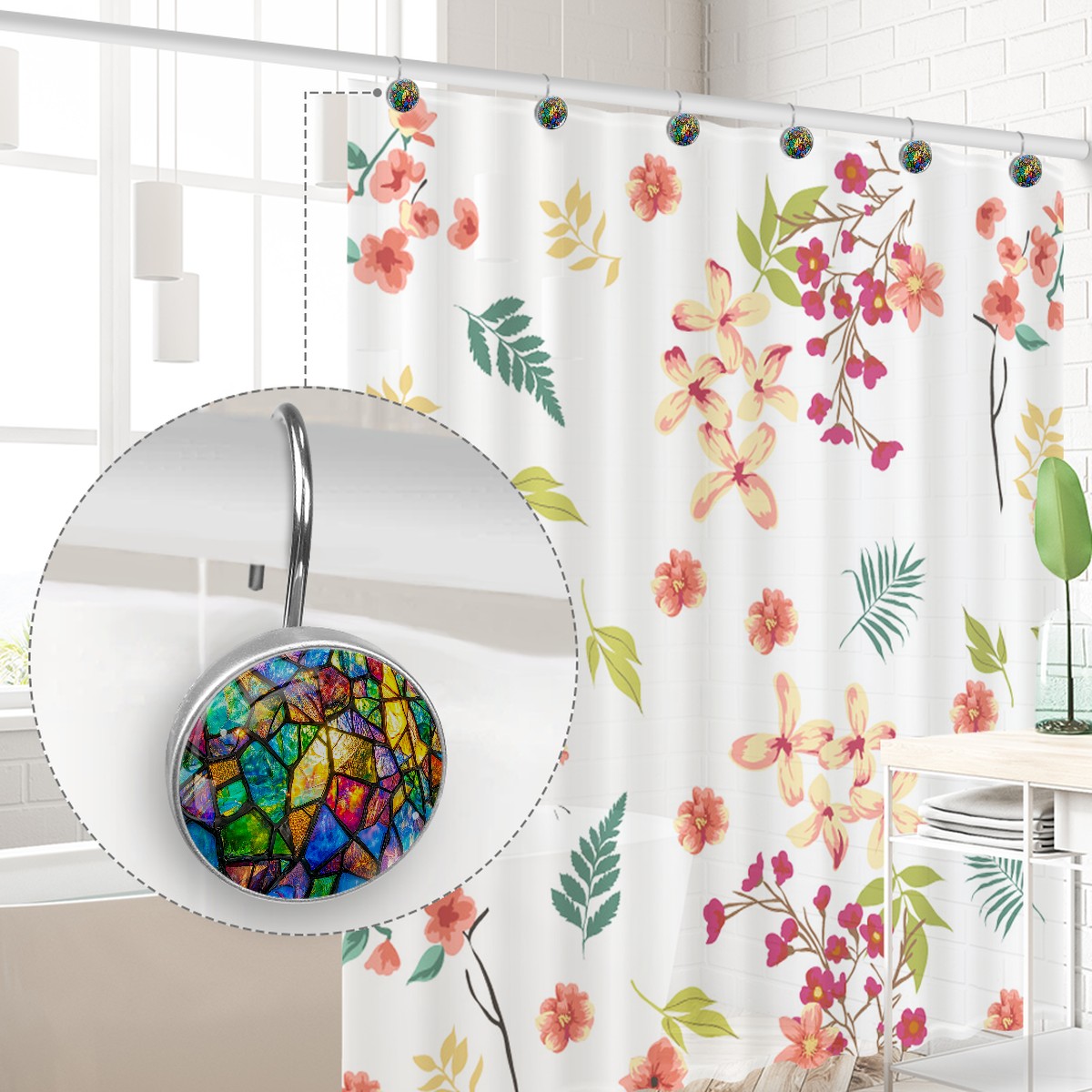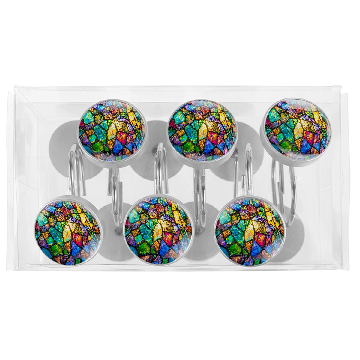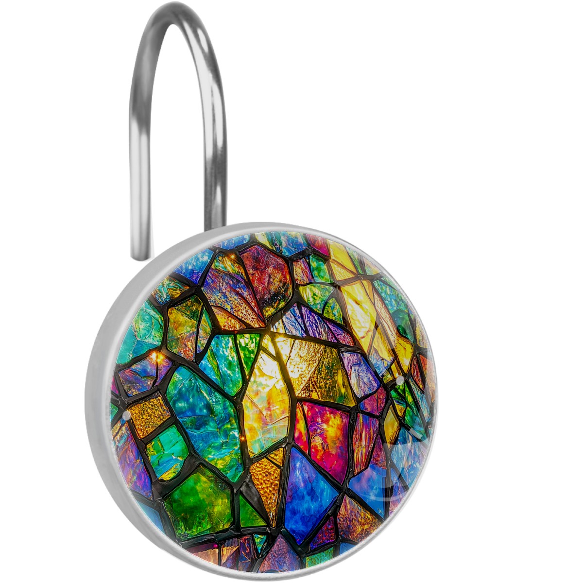 Decorative Rainbow Colored Stained Glass Mosaic_with_iridescent_ra_c0673d57-0018-4094-990c-39d2a31e760c Shower Curtain Hooks 12pcs Crystal Glass Rustproof Shower Hooks for Bathroom Home Decor Stainless Steel Resin Shower Curtain Rings