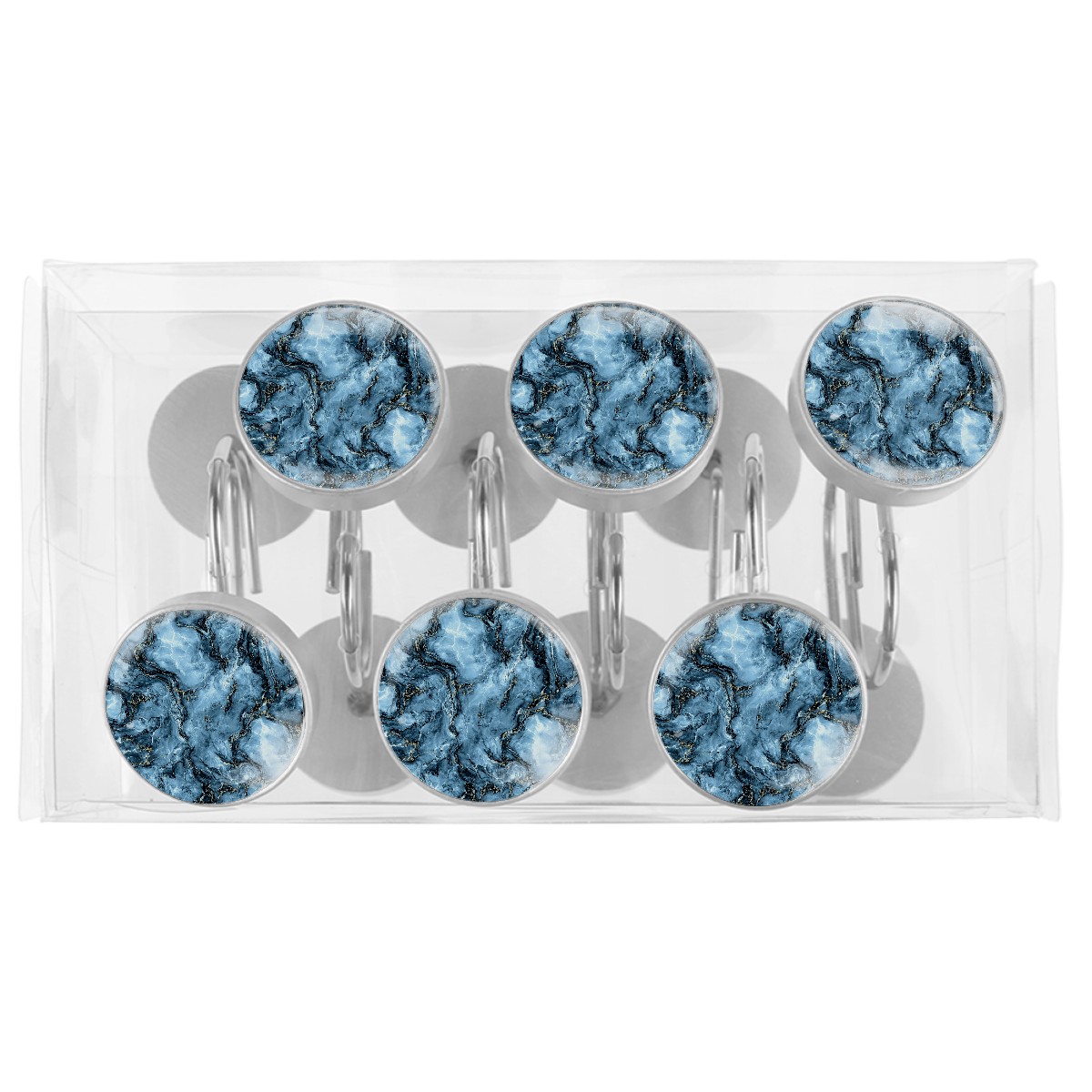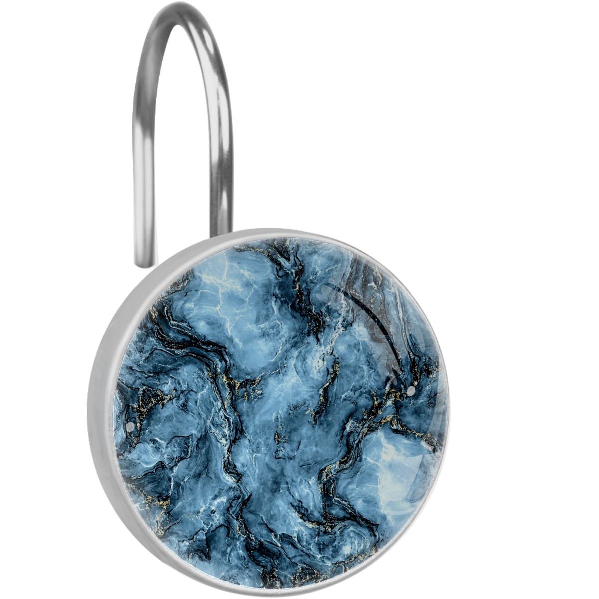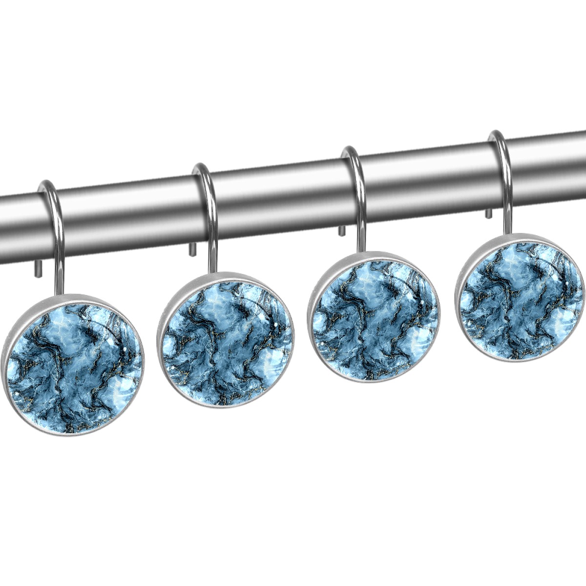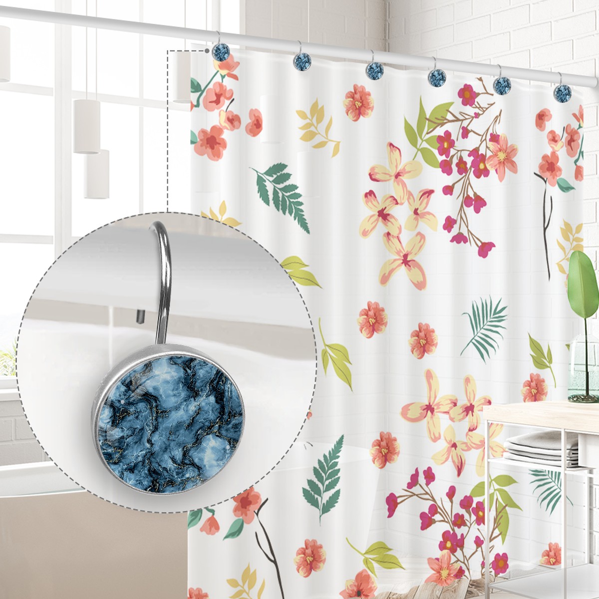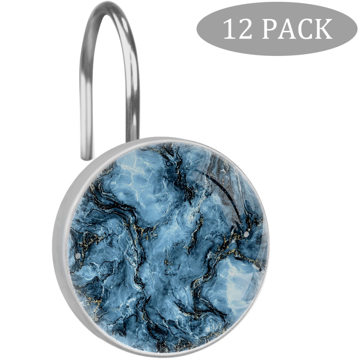 Decorative Green Marble Texture Shower Curtain Hooks 12pcs Crystal Glass Rustproof Shower Hooks for Bathroom Home Decor Stainless Steel Resin Shower Curtain Rings