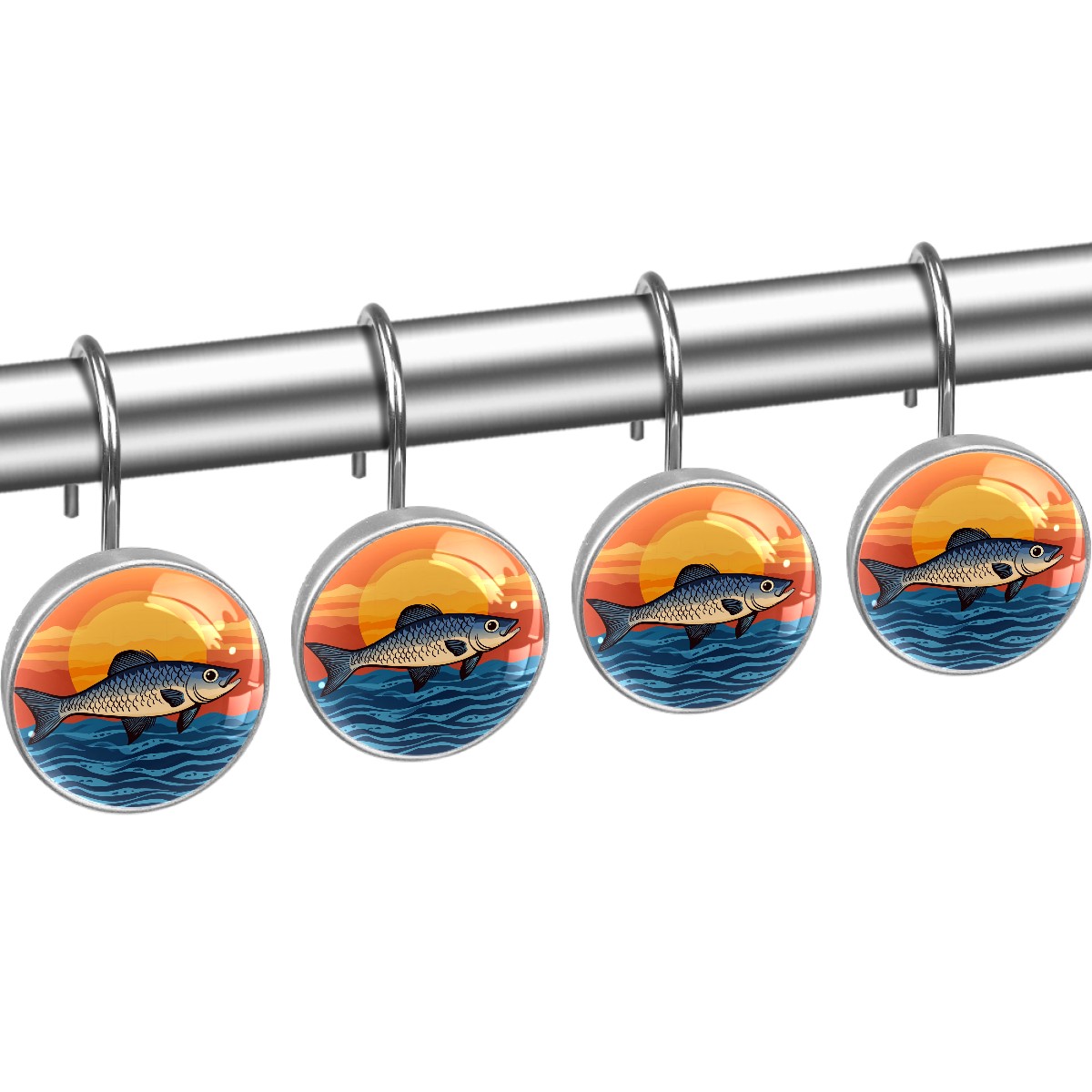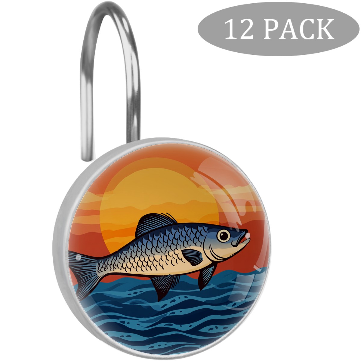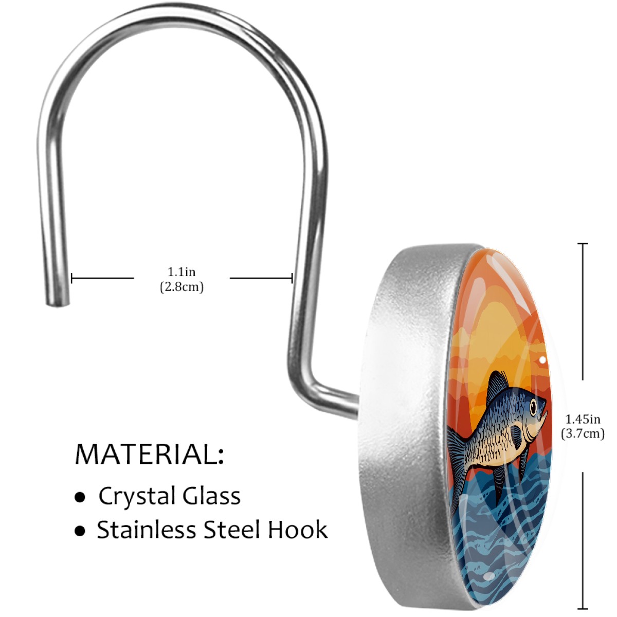 Decorative Fish Shower Curtain Hooks 12pcs Crystal Glass Rustproof Shower Hooks for Bathroom Home Decor Stainless Steel Resin Shower Curtain Rings