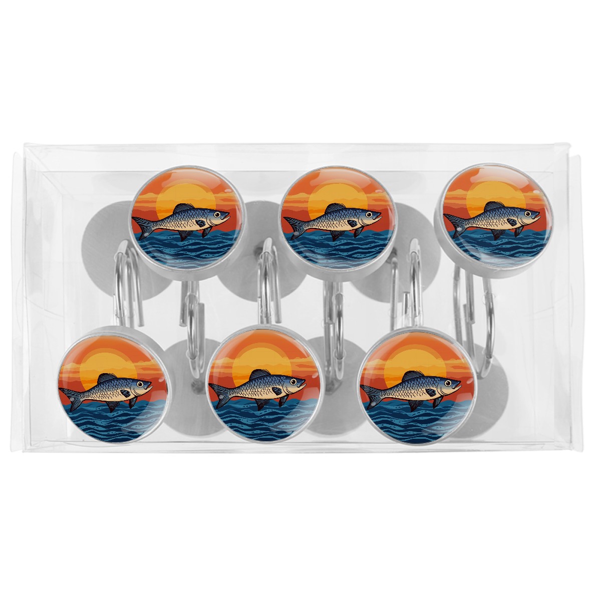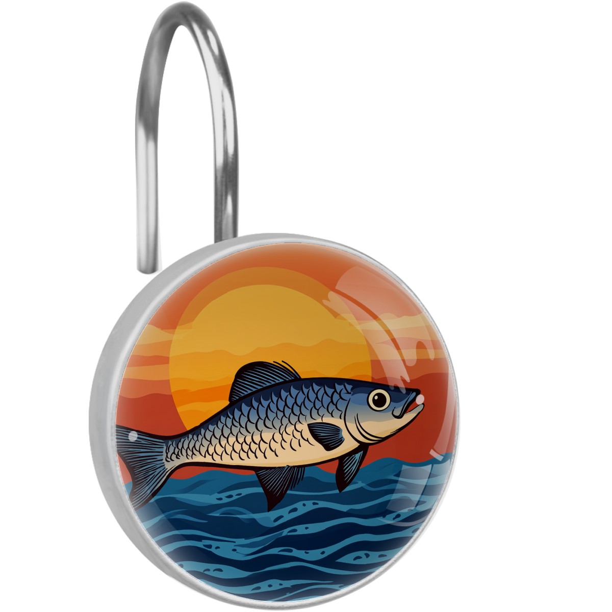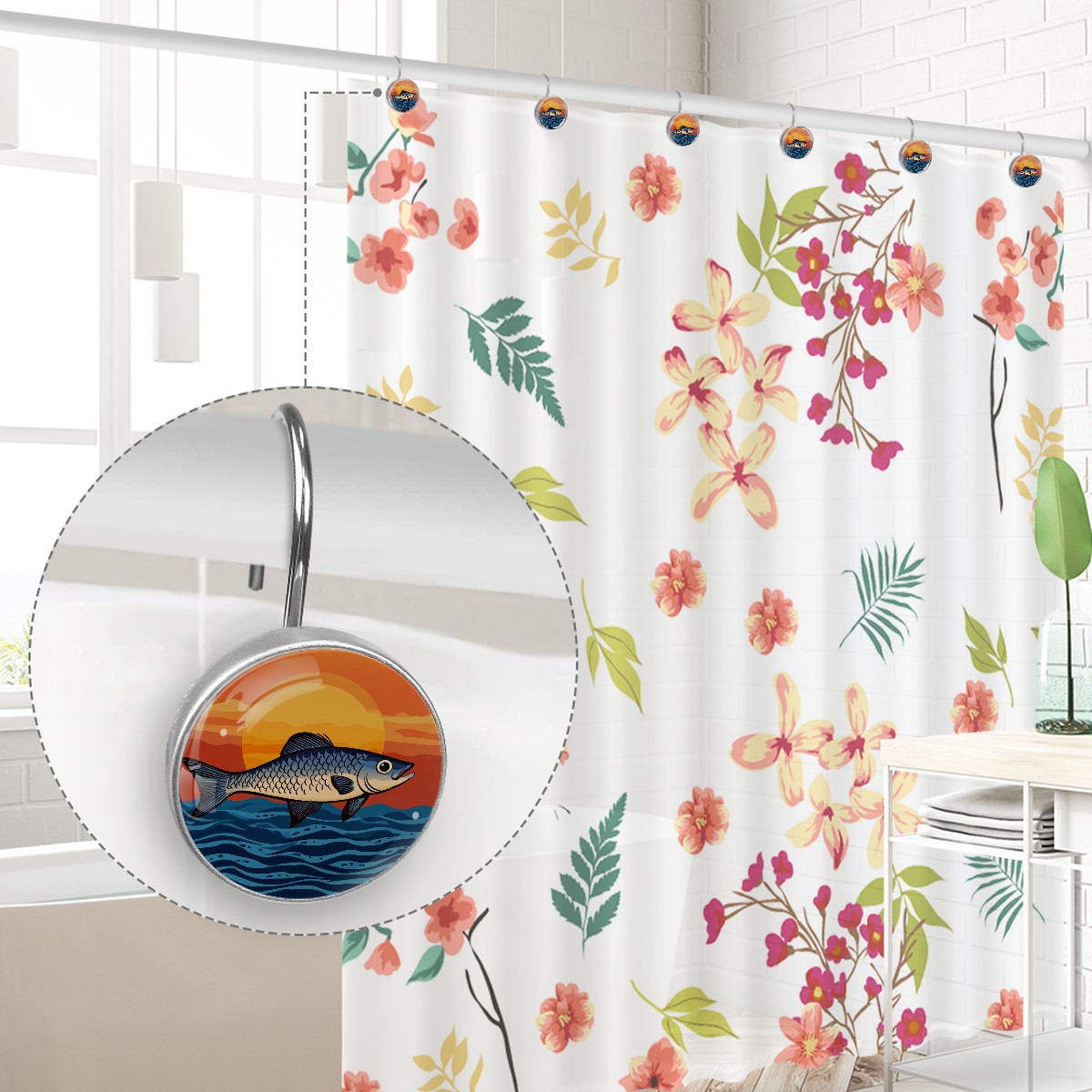 Decorative Fish Shower Curtain Hooks 12pcs Crystal Glass Rustproof Shower Hooks for Bathroom Home Decor Stainless Steel Resin Shower Curtain Rings
