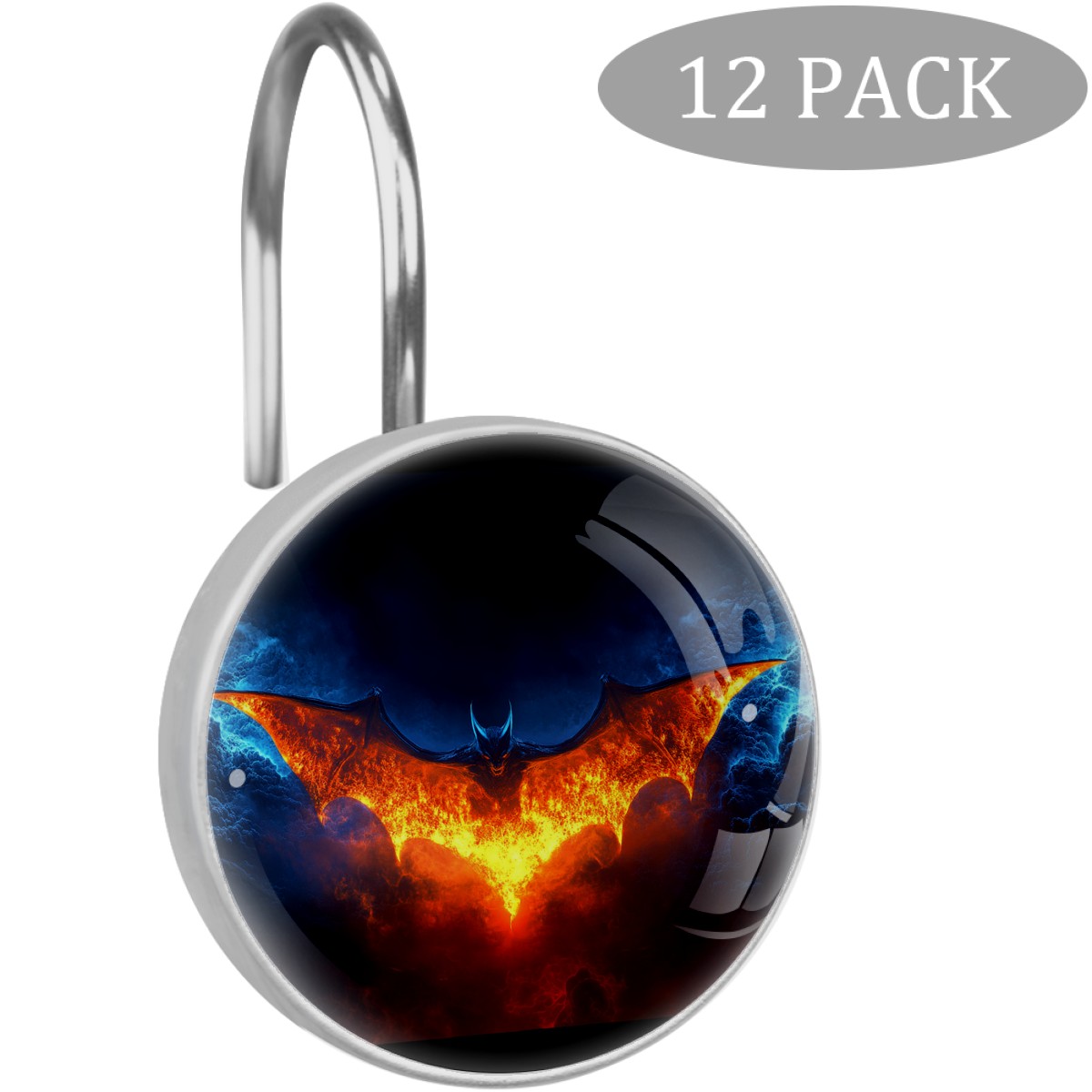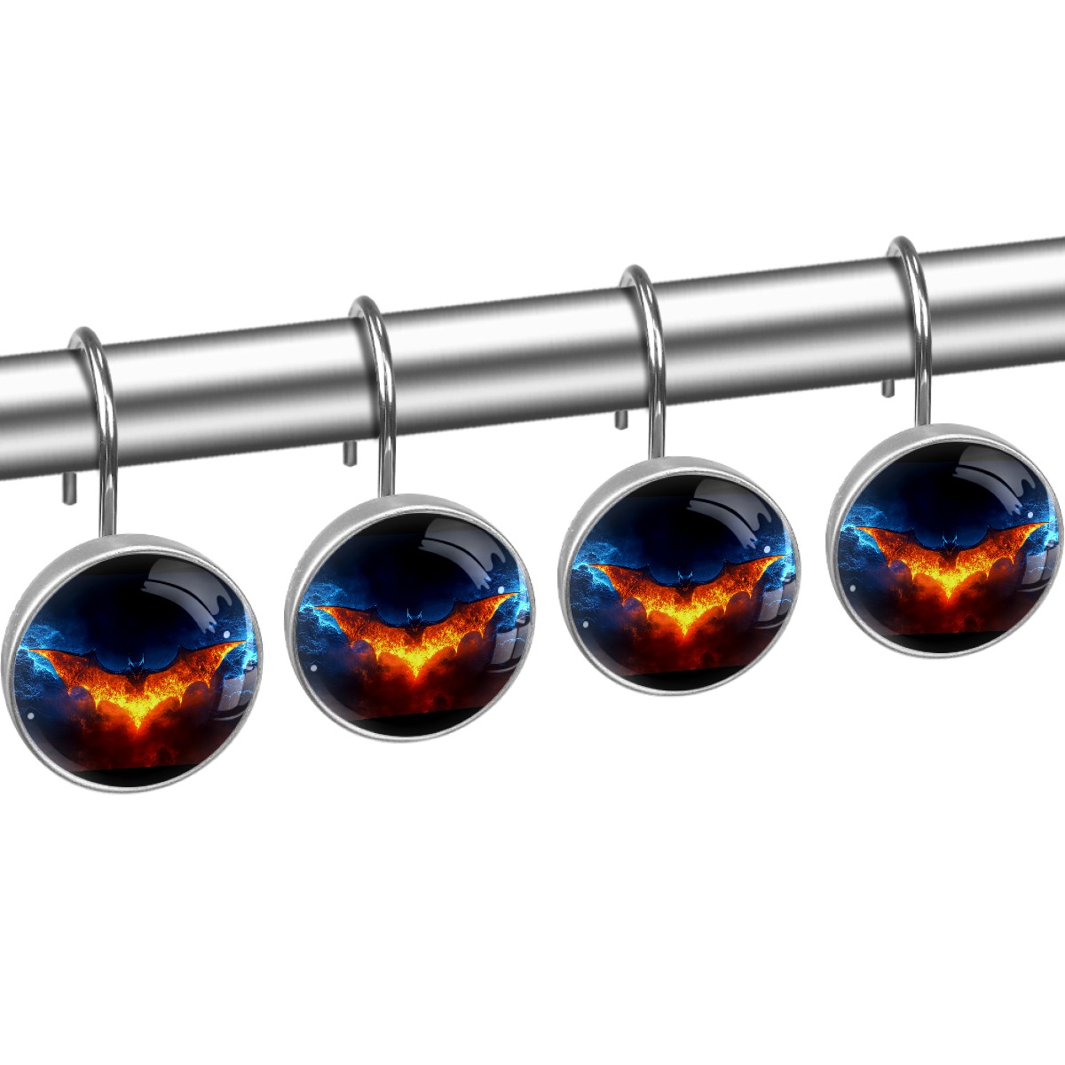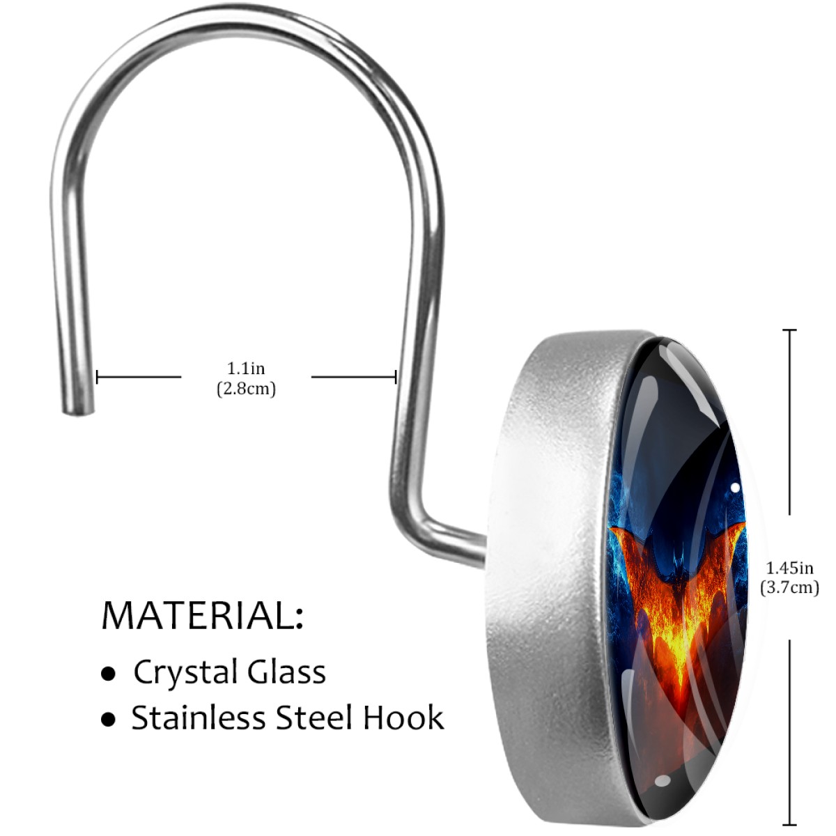 Decorative Bat Flames Shower Curtain Hooks 12pcs Crystal Glass Rustproof Shower Hooks for Bathroom Home Decor Stainless Steel Resin Shower Curtain Rings