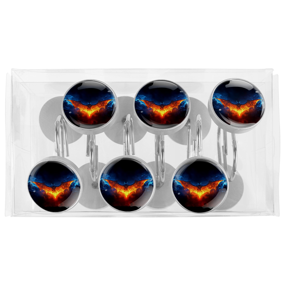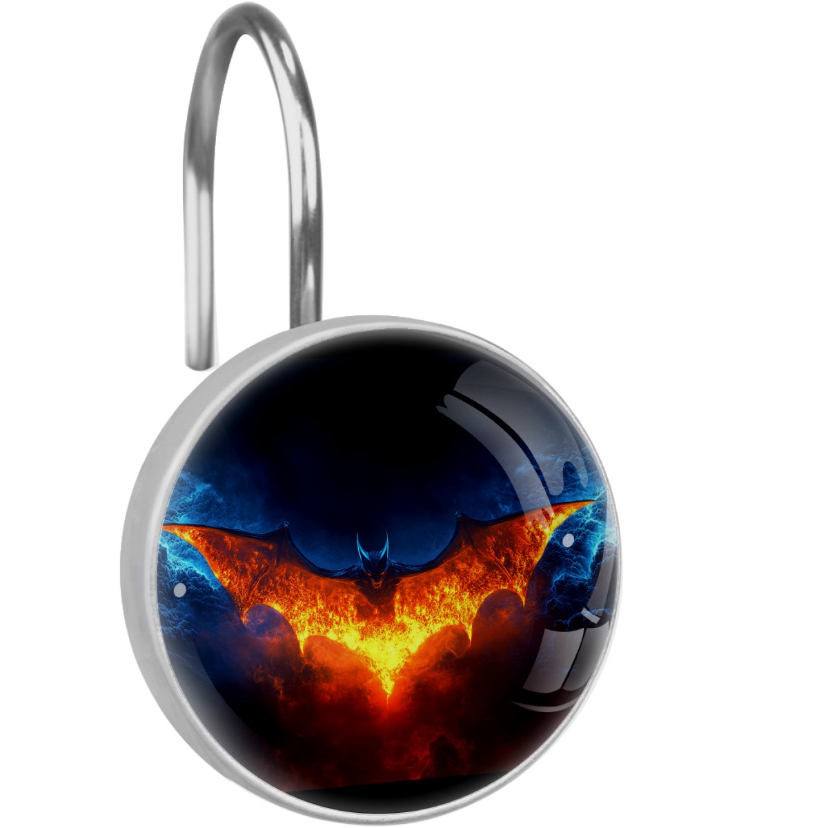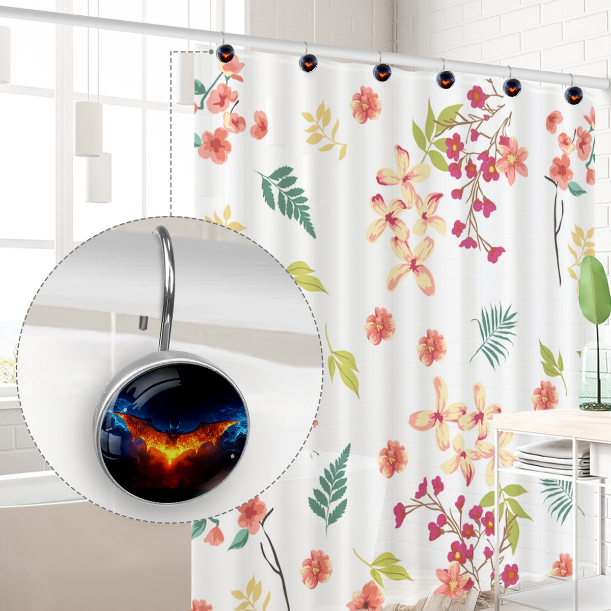Decorative Bat Flames Shower Curtain Hooks 12pcs Crystal Glass Rustproof Shower Hooks for Bathroom Home Decor Stainless Steel Resin Shower Curtain Rings
