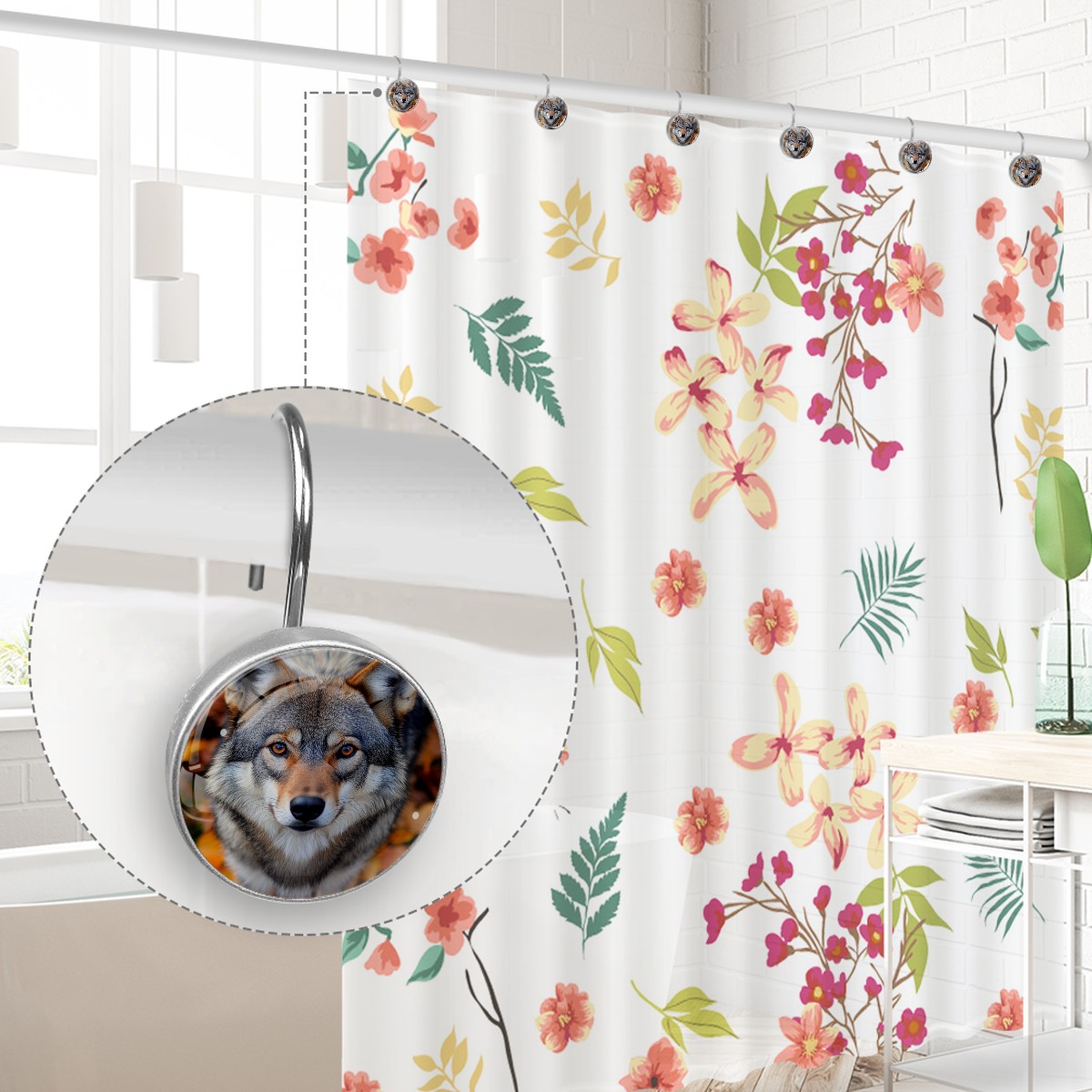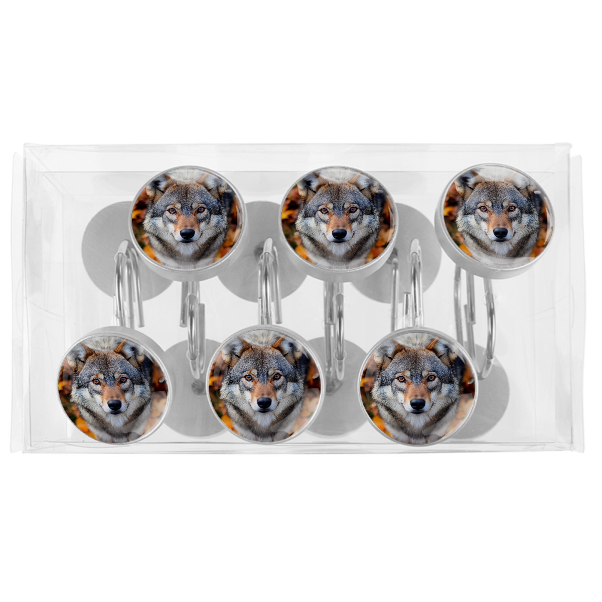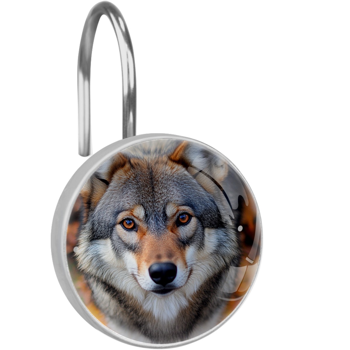 Decorative Gray Wolf Autumn Leaves Shower Curtain Hooks 12pcs Crystal Glass Rustproof Shower Hooks for Bathroom Home Decor Stainless Steel Resin Shower Curtain Rings