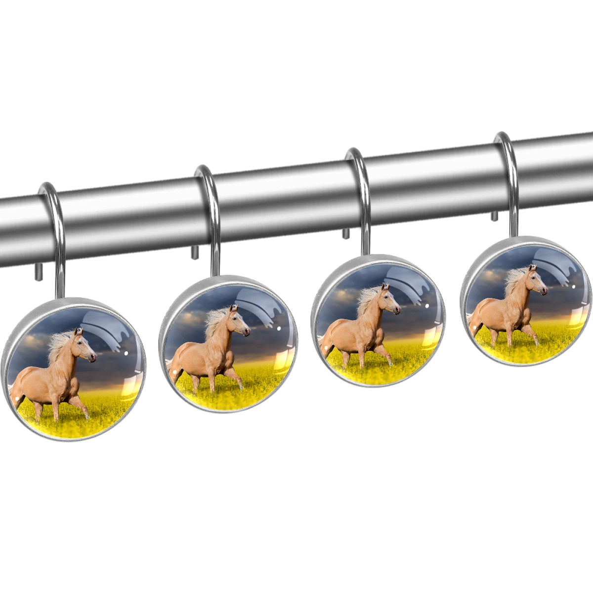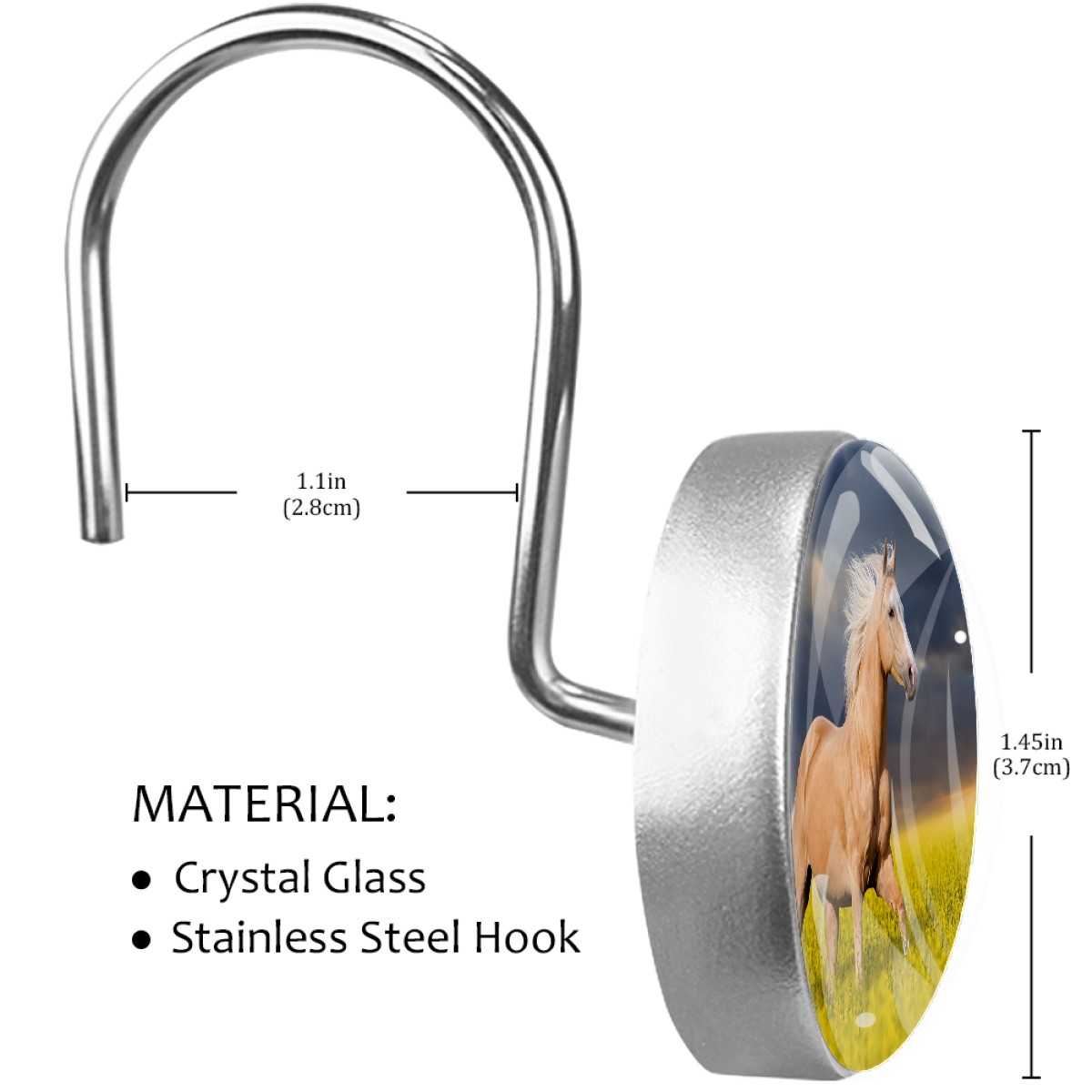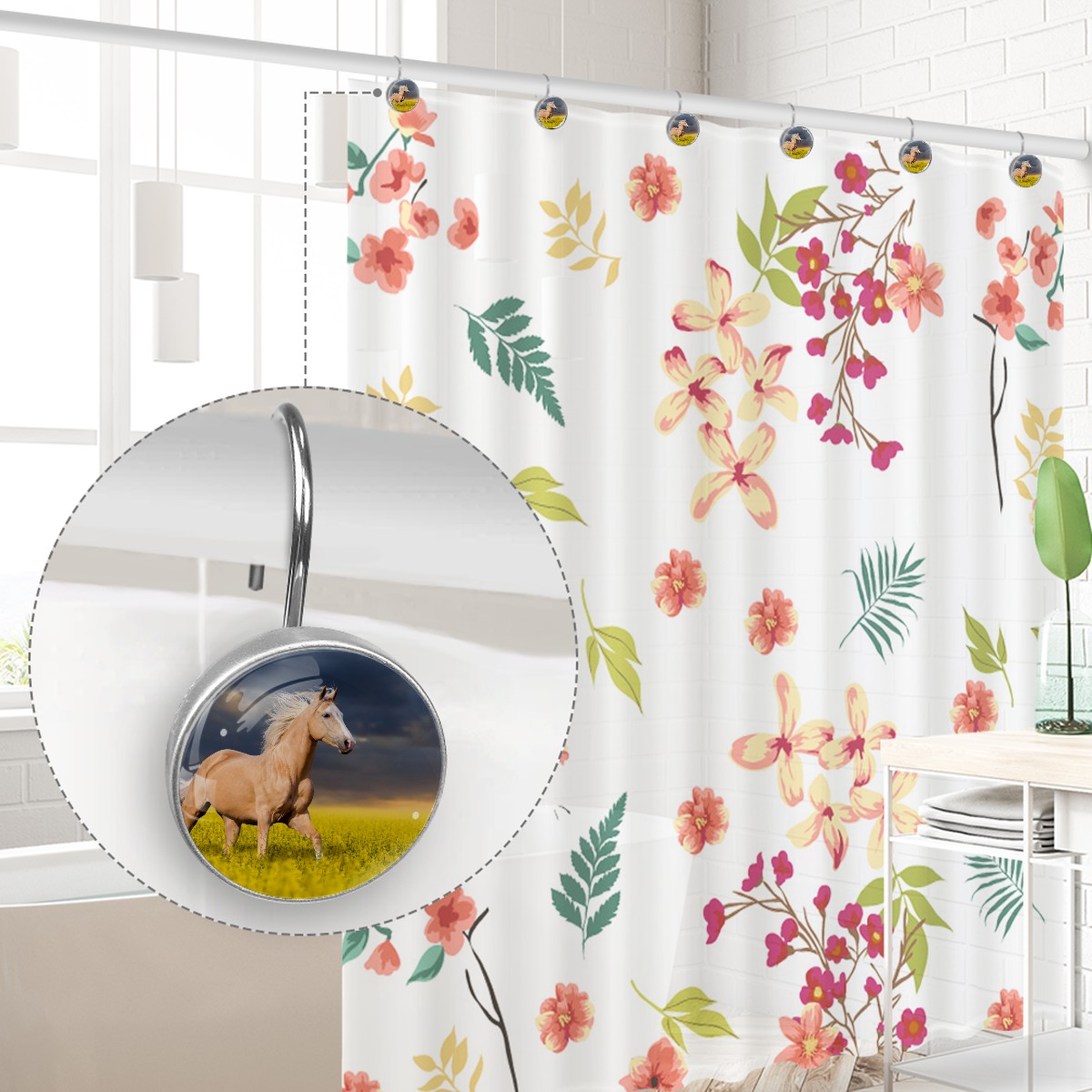 Decorative Sky Flowers And Horse Shower Curtain Hooks 12pcs Crystal Glass Rustproof Shower Hooks for Bathroom Home Decor Stainless Steel Resin Shower Curtain Rings