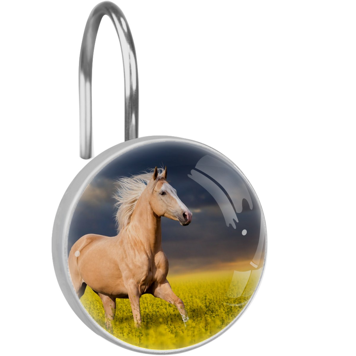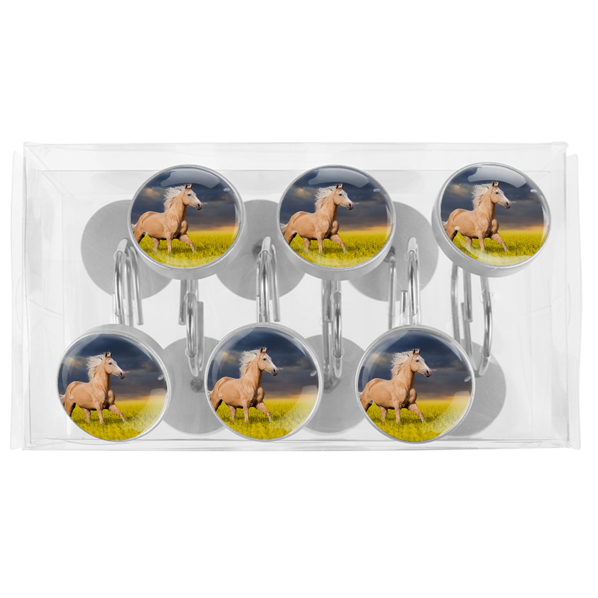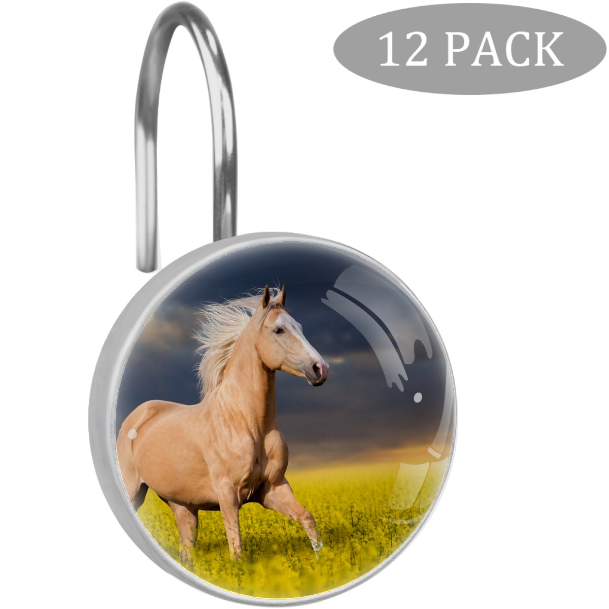 Decorative Sky Flowers And Horse Shower Curtain Hooks 12pcs Crystal Glass Rustproof Shower Hooks for Bathroom Home Decor Stainless Steel Resin Shower Curtain Rings