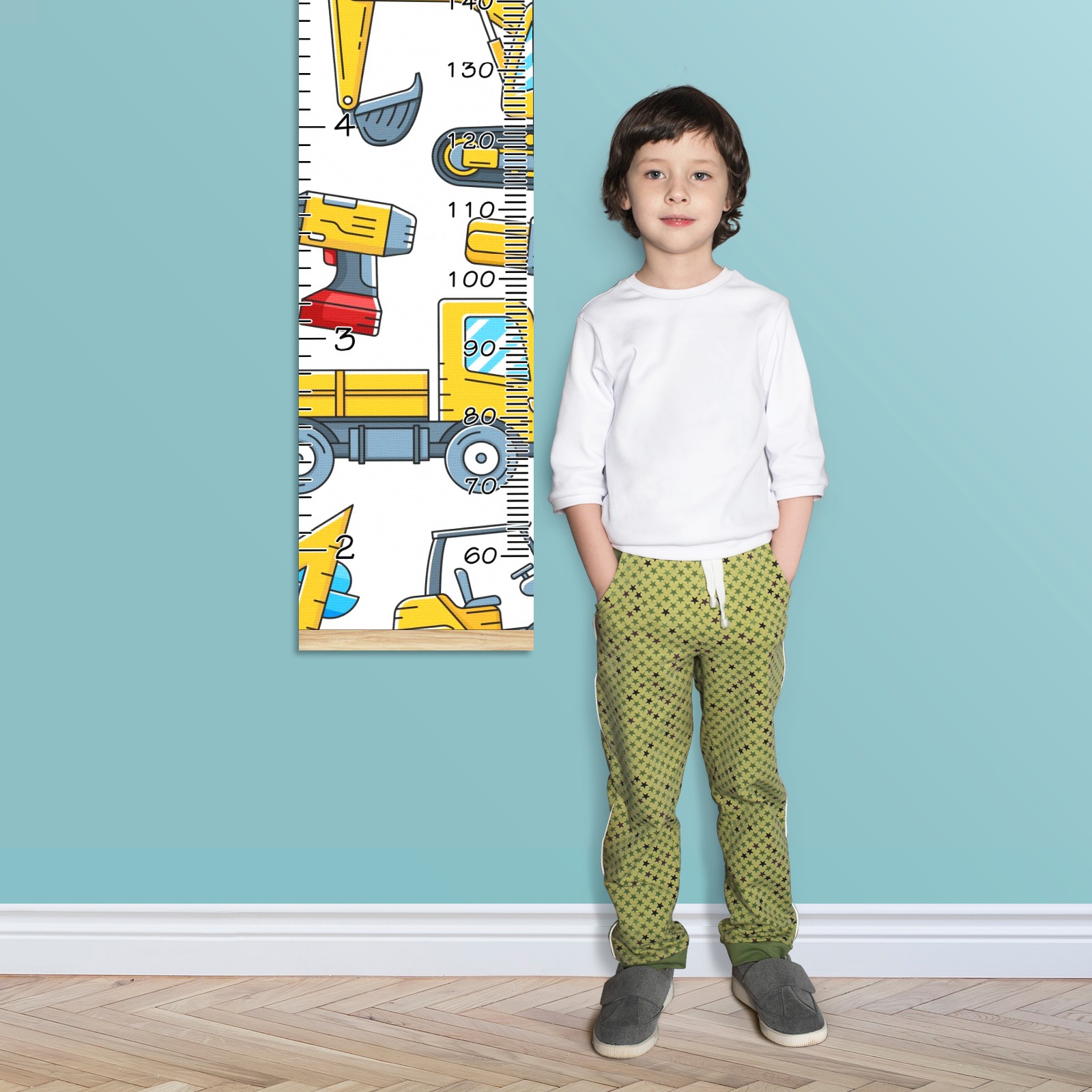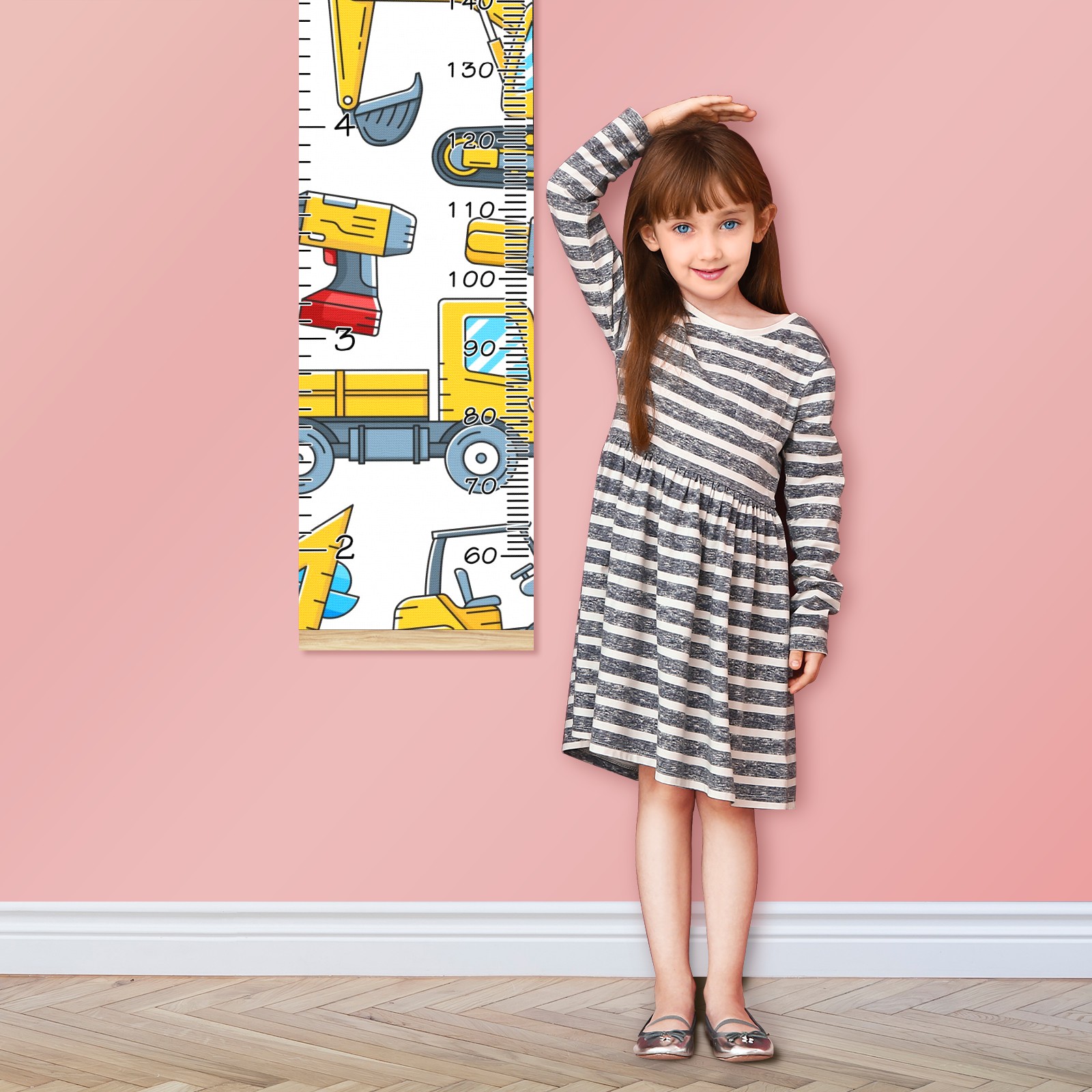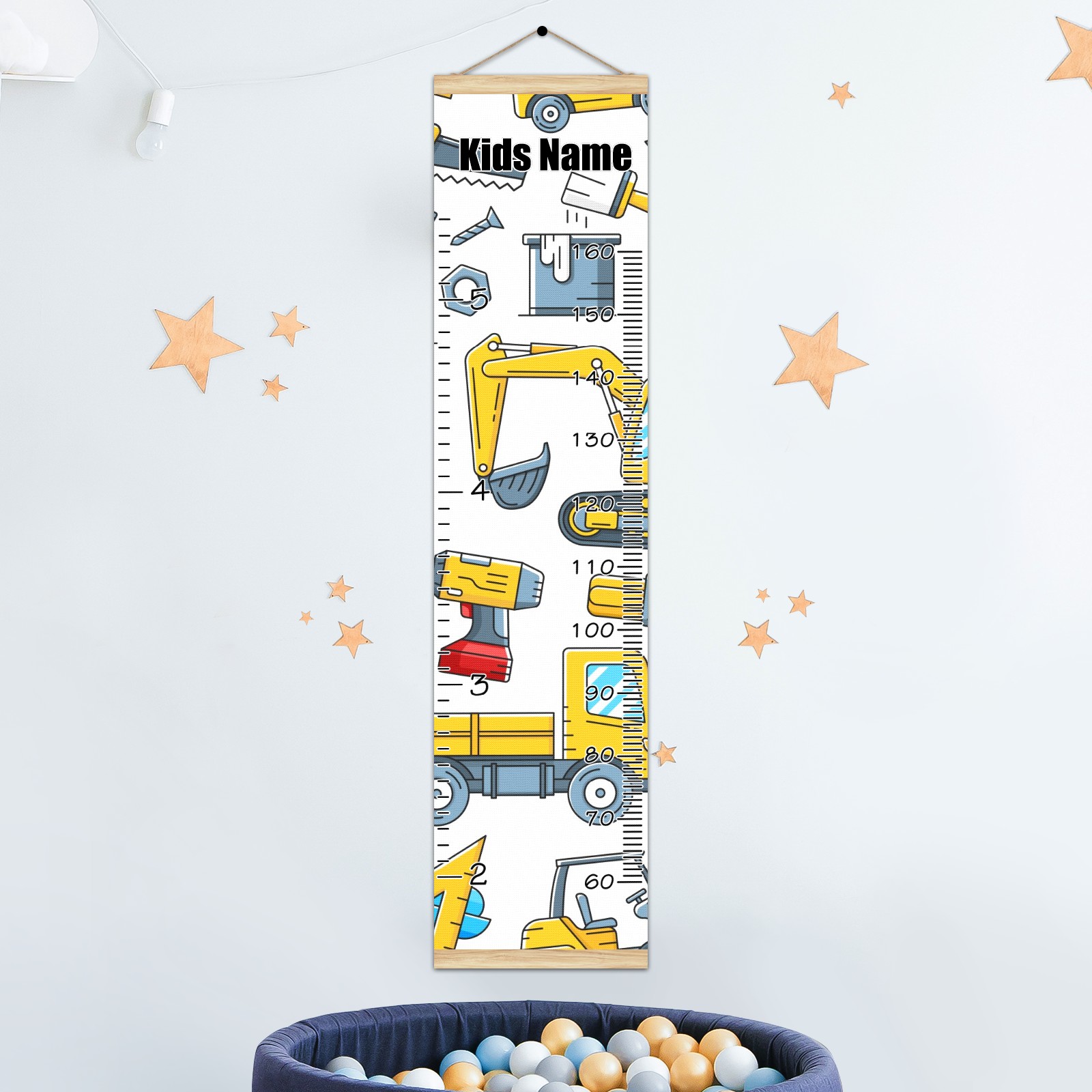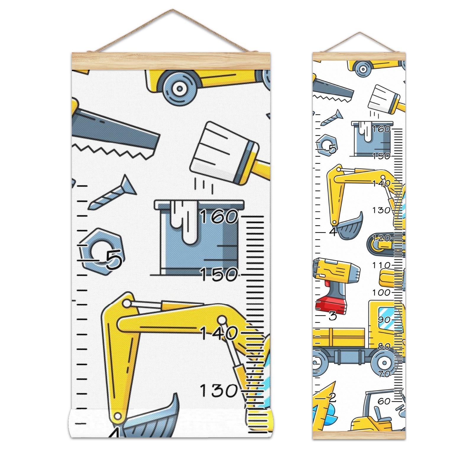 Personalized Growth Chart for Kids Boys Girls Custom Baby Name Canvas Height Chart for Wall Hanging Tractor Truck Construction Tools Measuring Chart Ruler 13.4'' x 56''