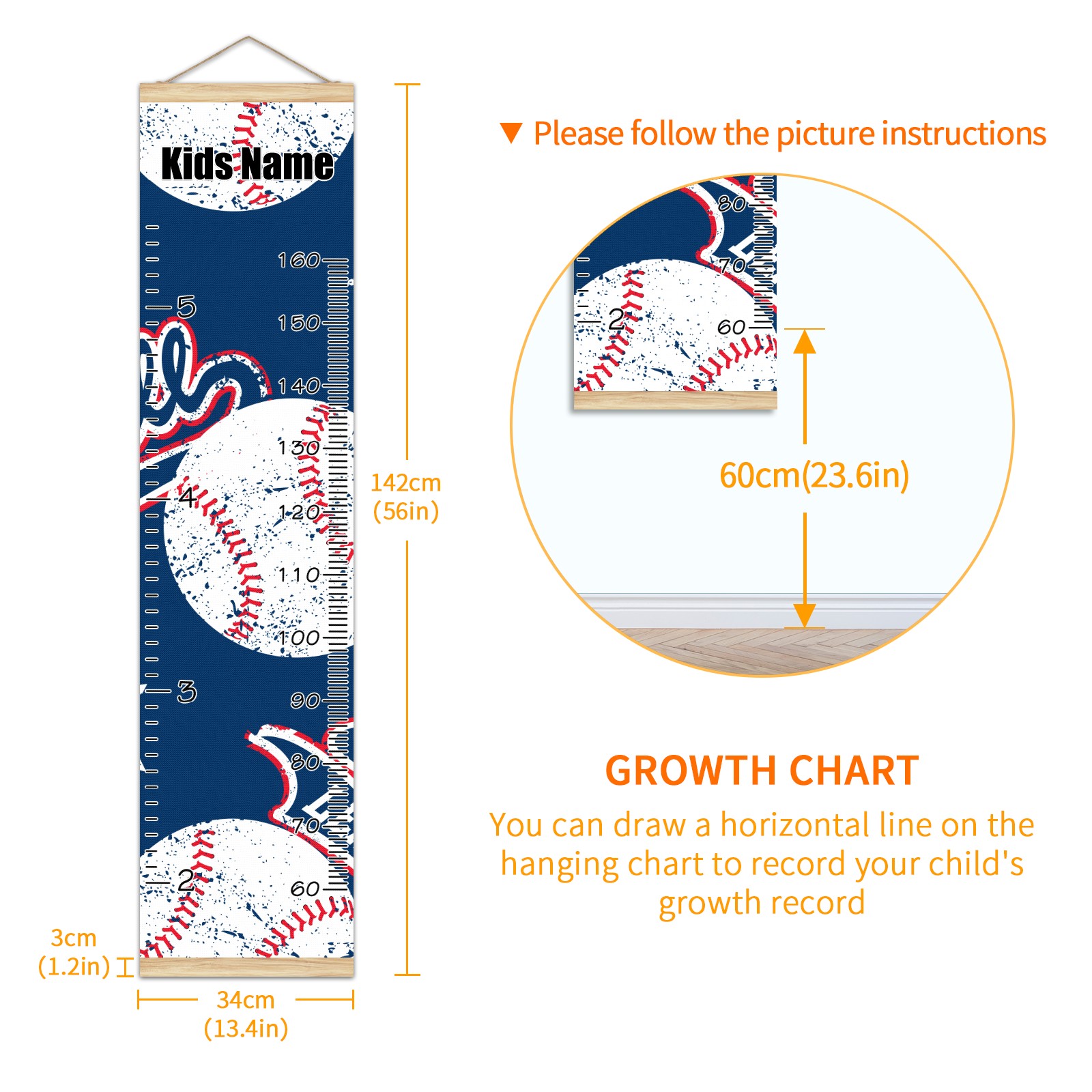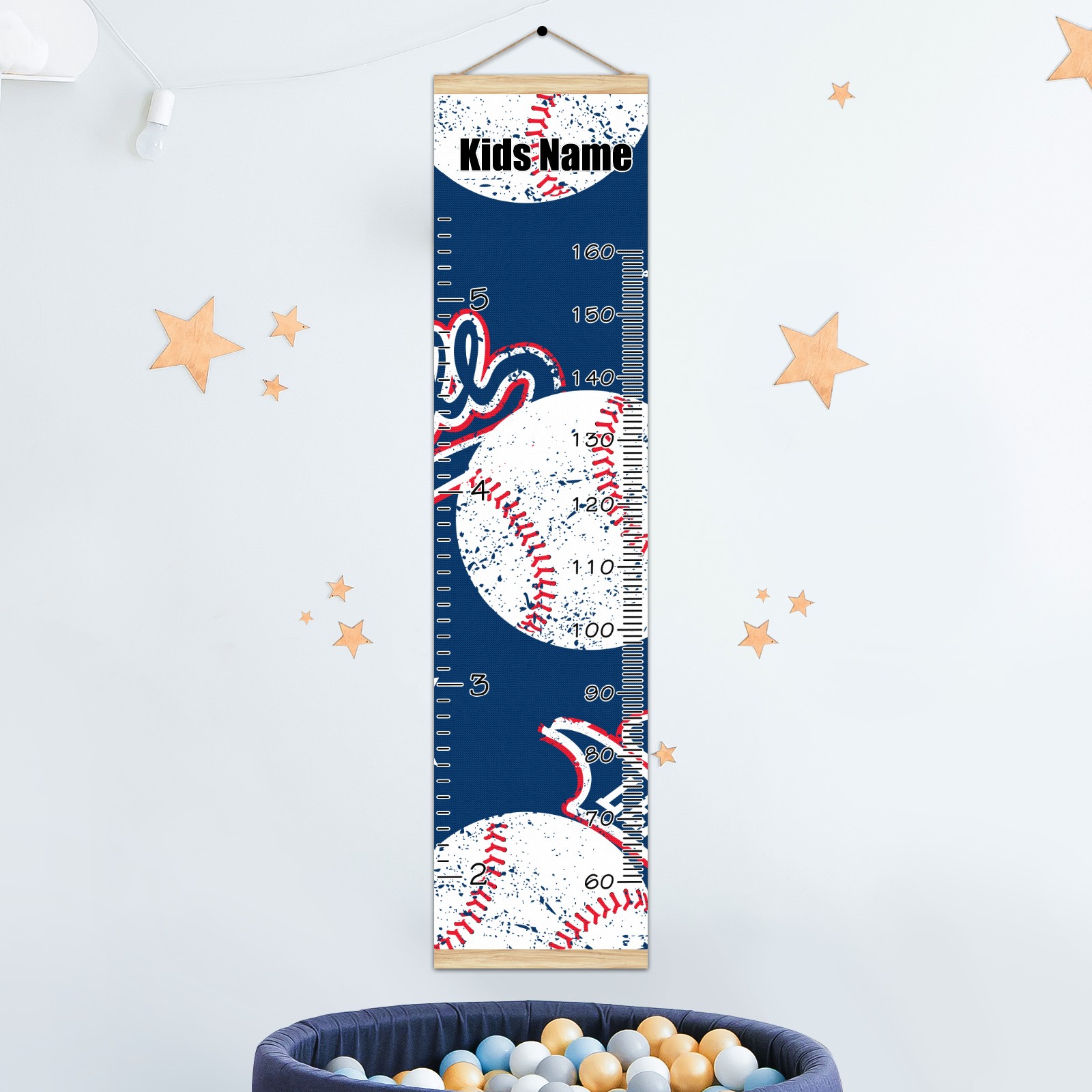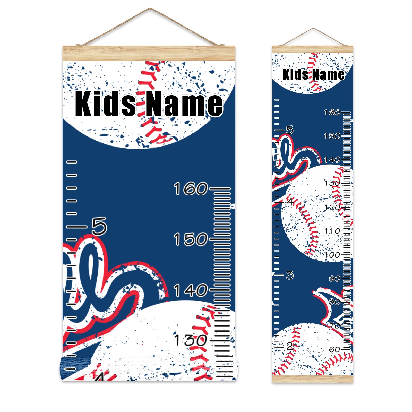 Personalized Growth Chart for Kids Boys Girls Custom Baby Name Canvas Height Chart for Wall Hanging Baseball Blue Measuring Chart Ruler 13.4'' x 56''