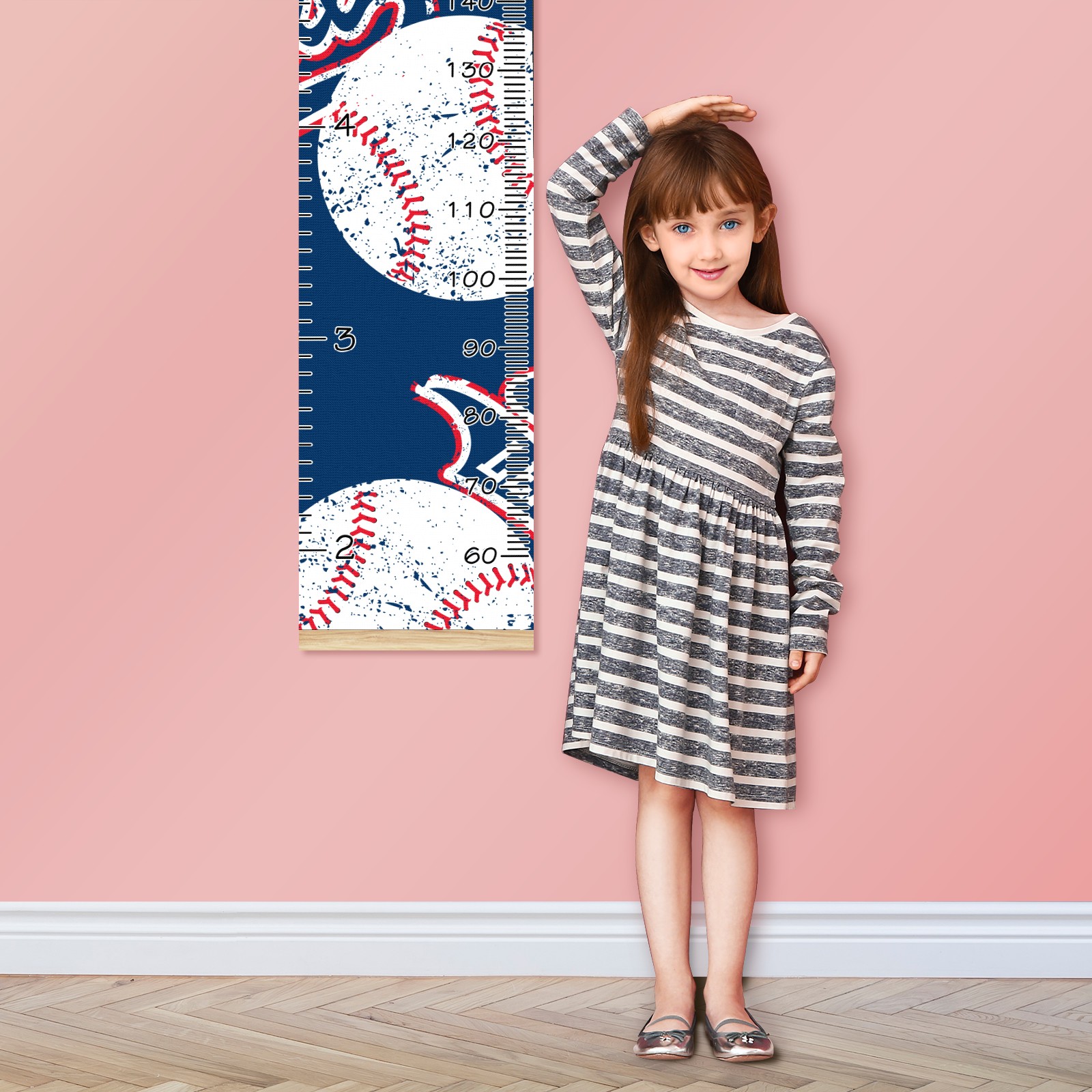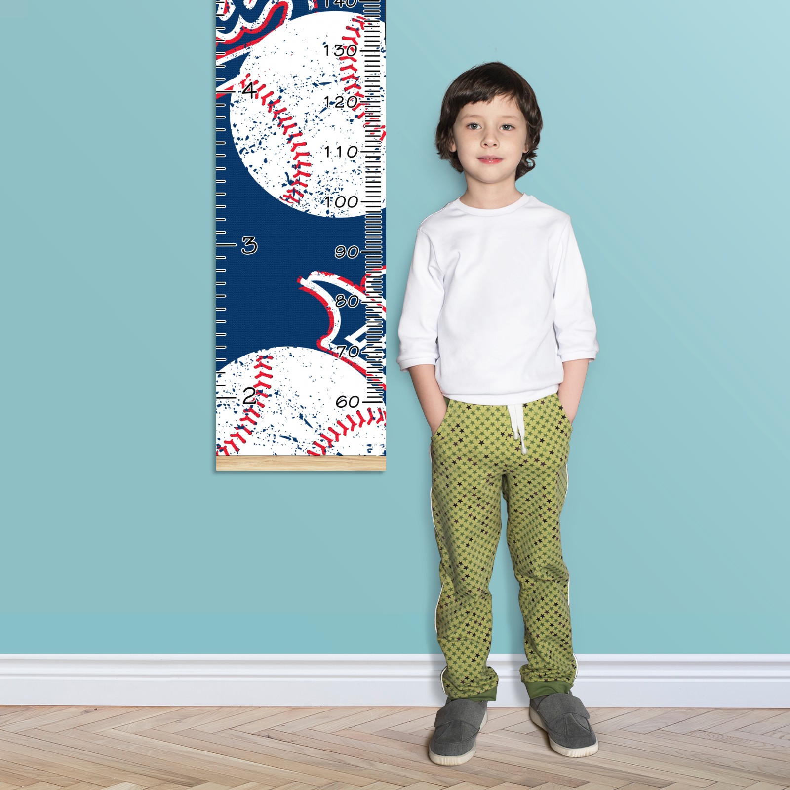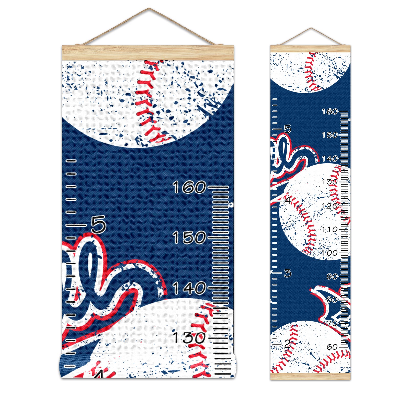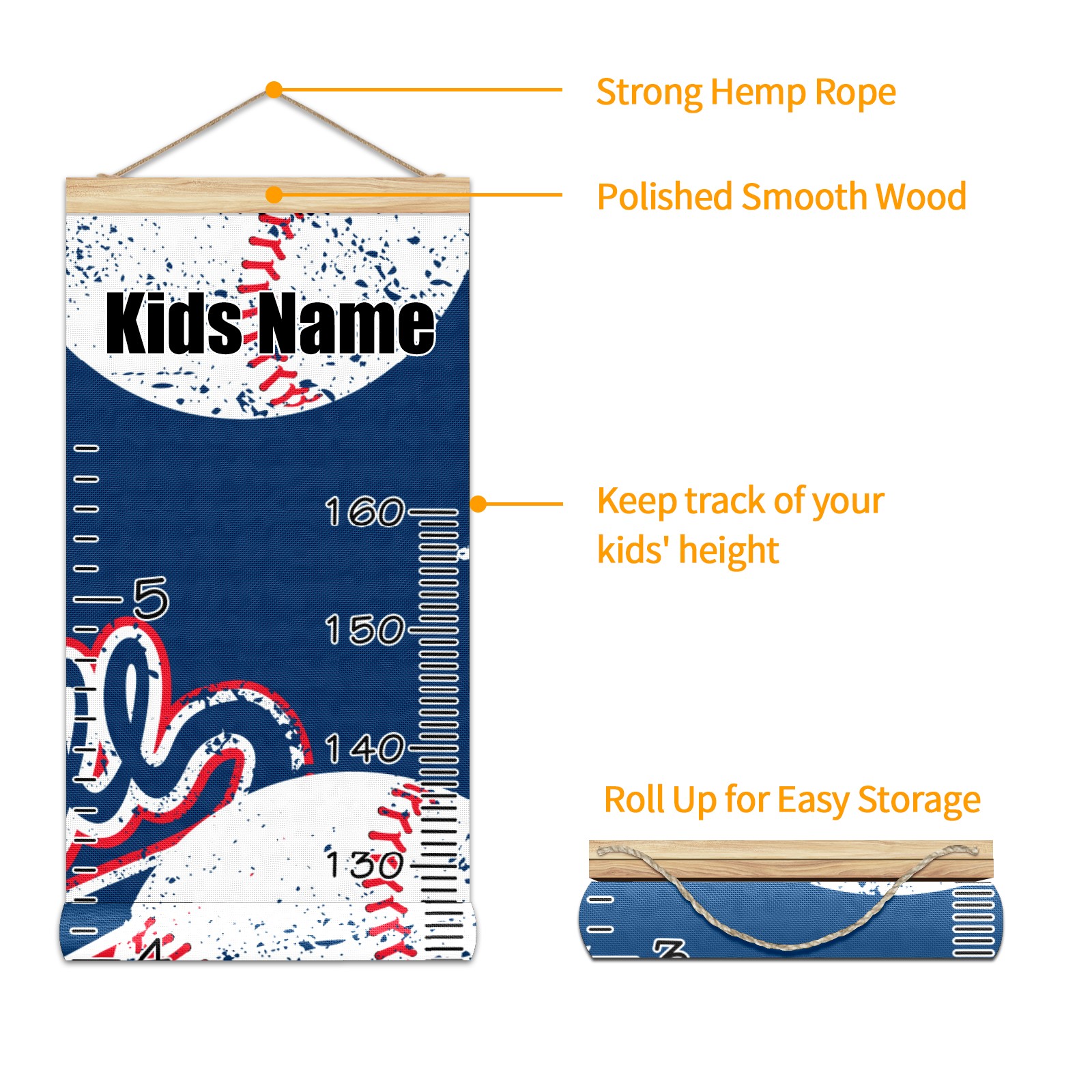 Personalized Growth Chart for Kids Boys Girls Custom Baby Name Canvas Height Chart for Wall Hanging Baseball Blue Measuring Chart Ruler 13.4'' x 56''