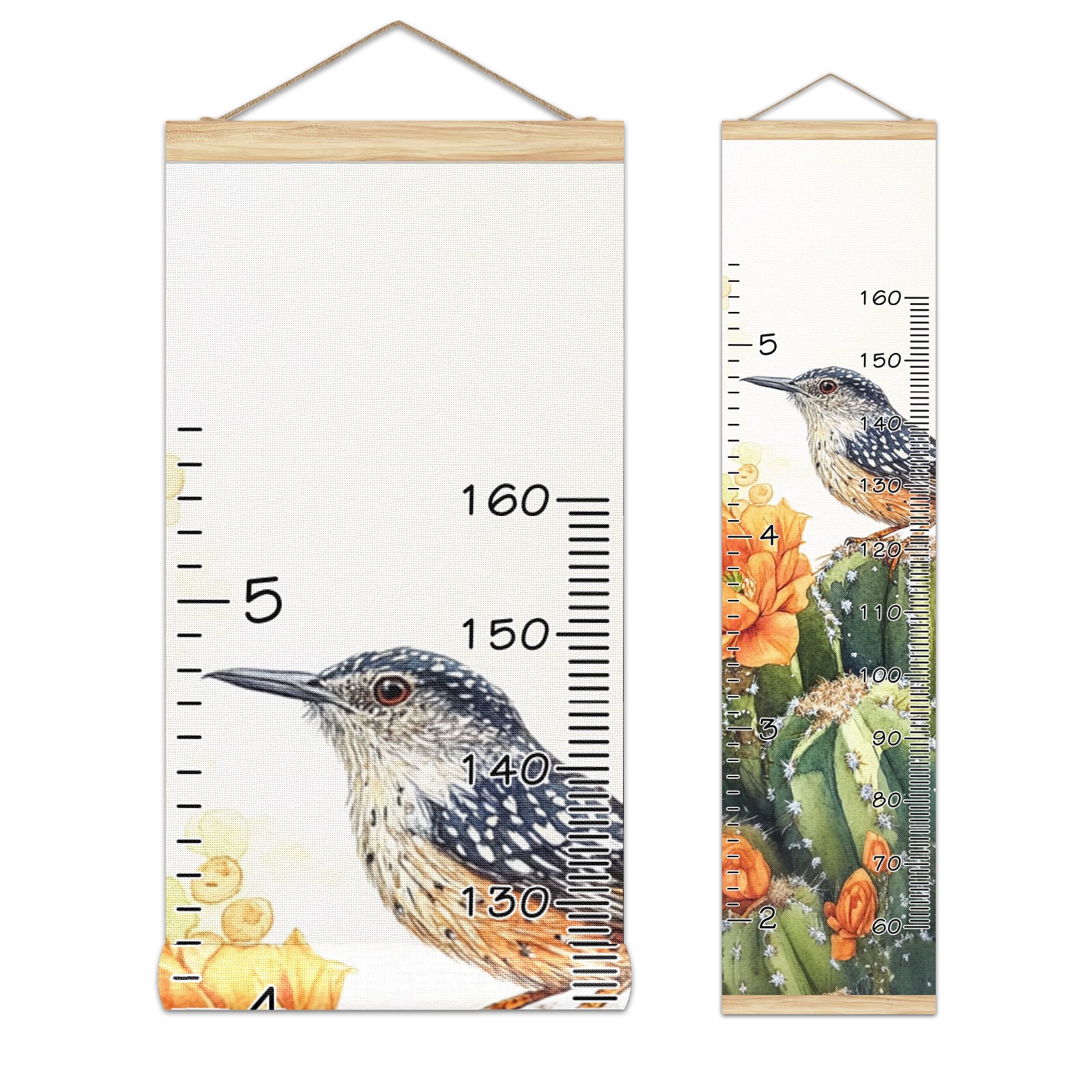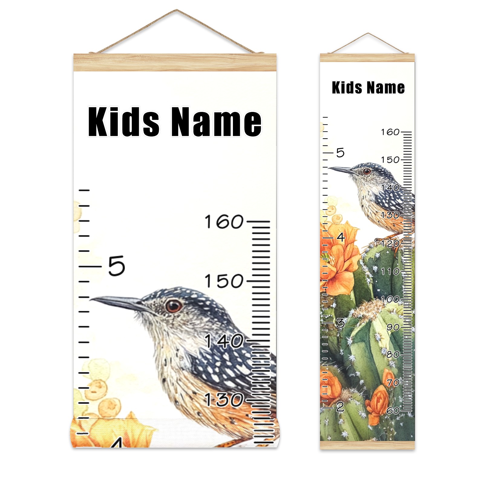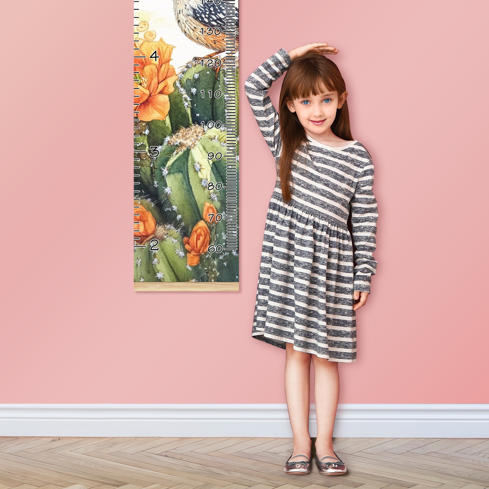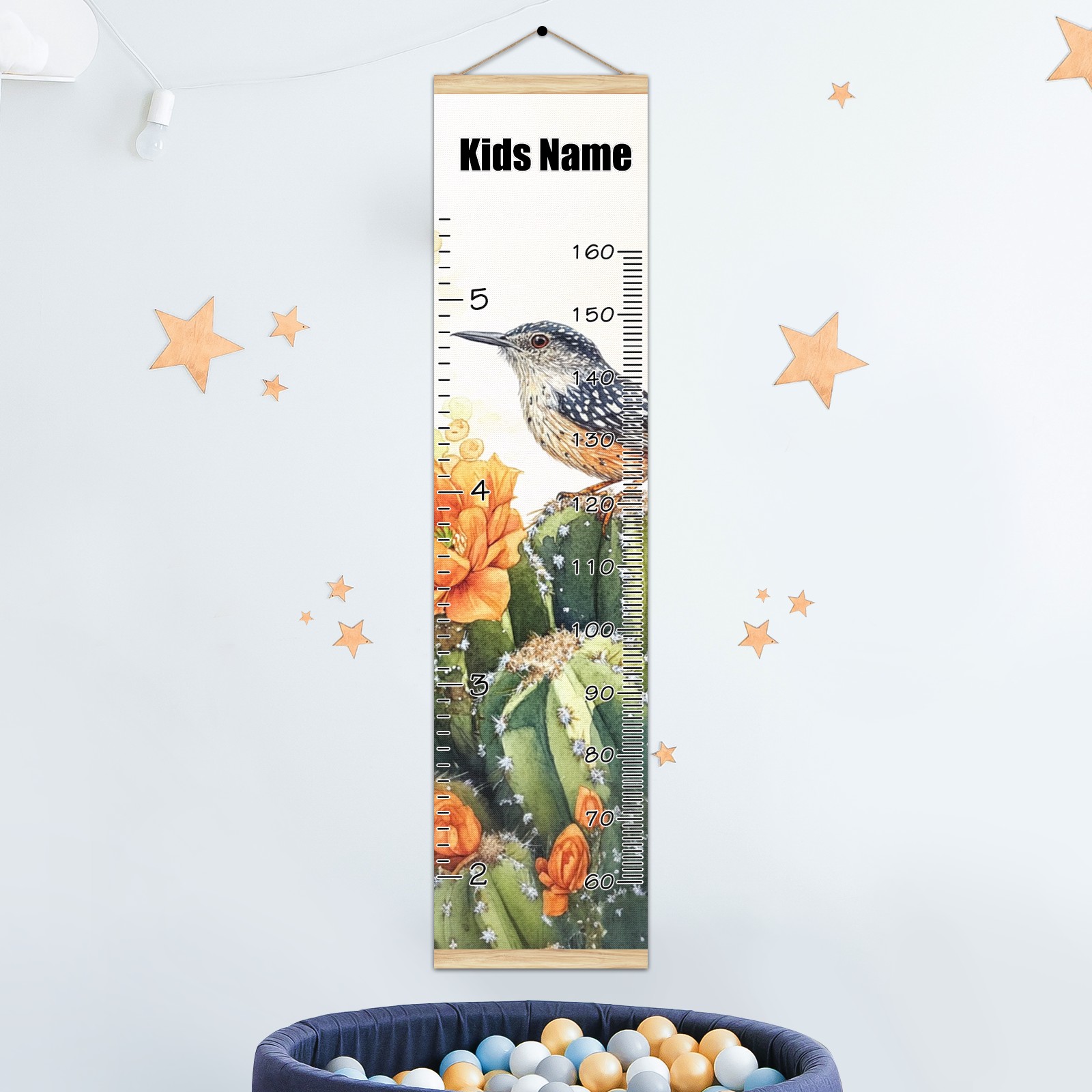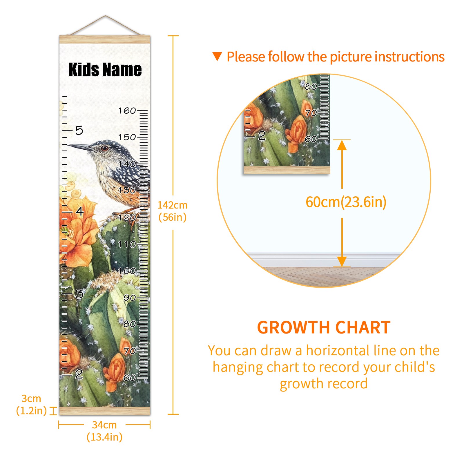 Personalized Growth Chart for Kids Boys Girls Custom Baby Name Canvas Height Chart for Wall Hanging Desert Cactus Floral Measuring Chart Ruler 13.4'' x 56''