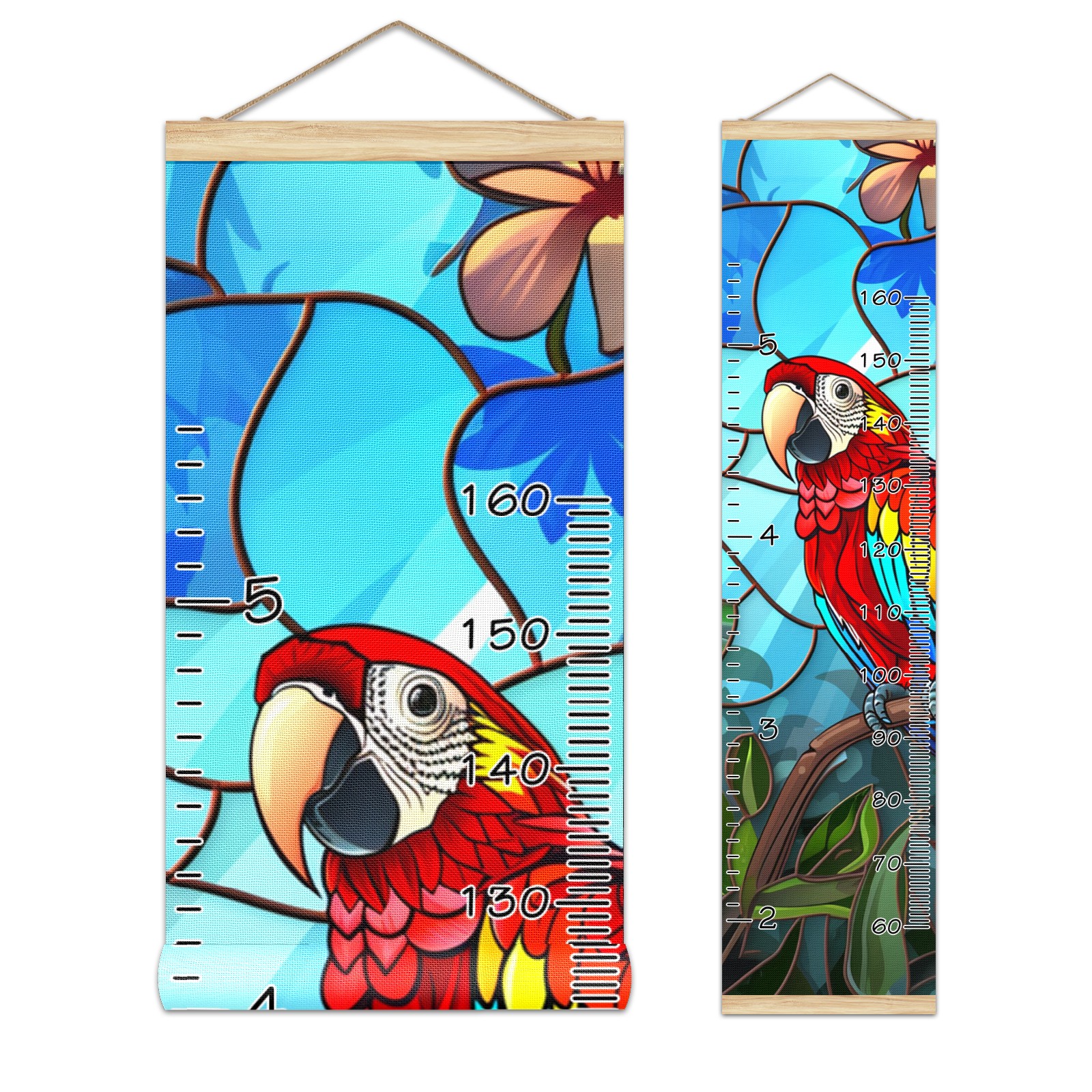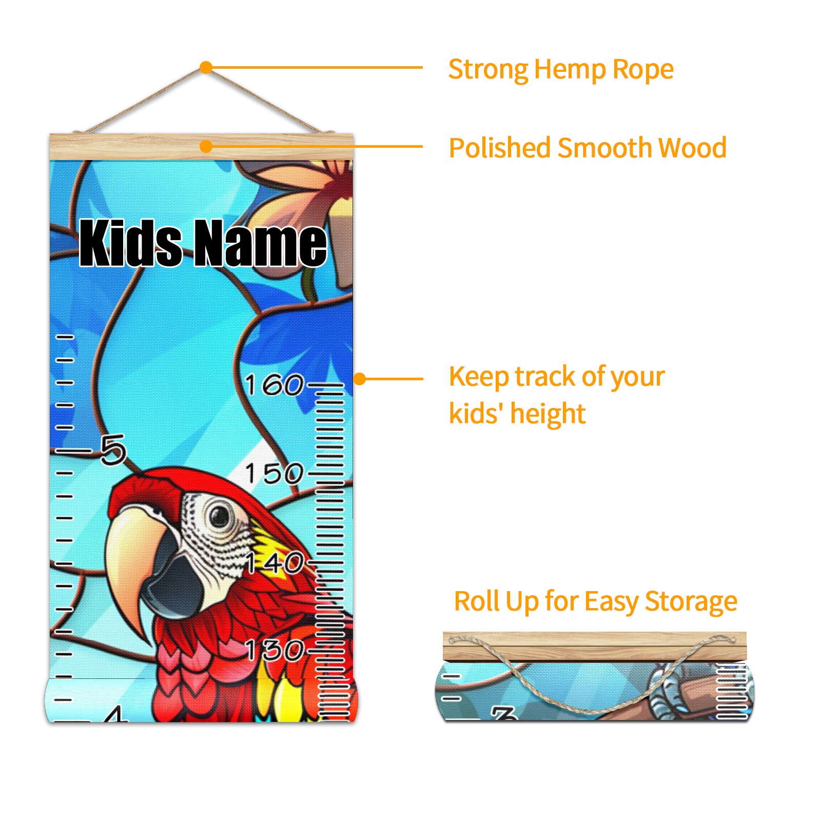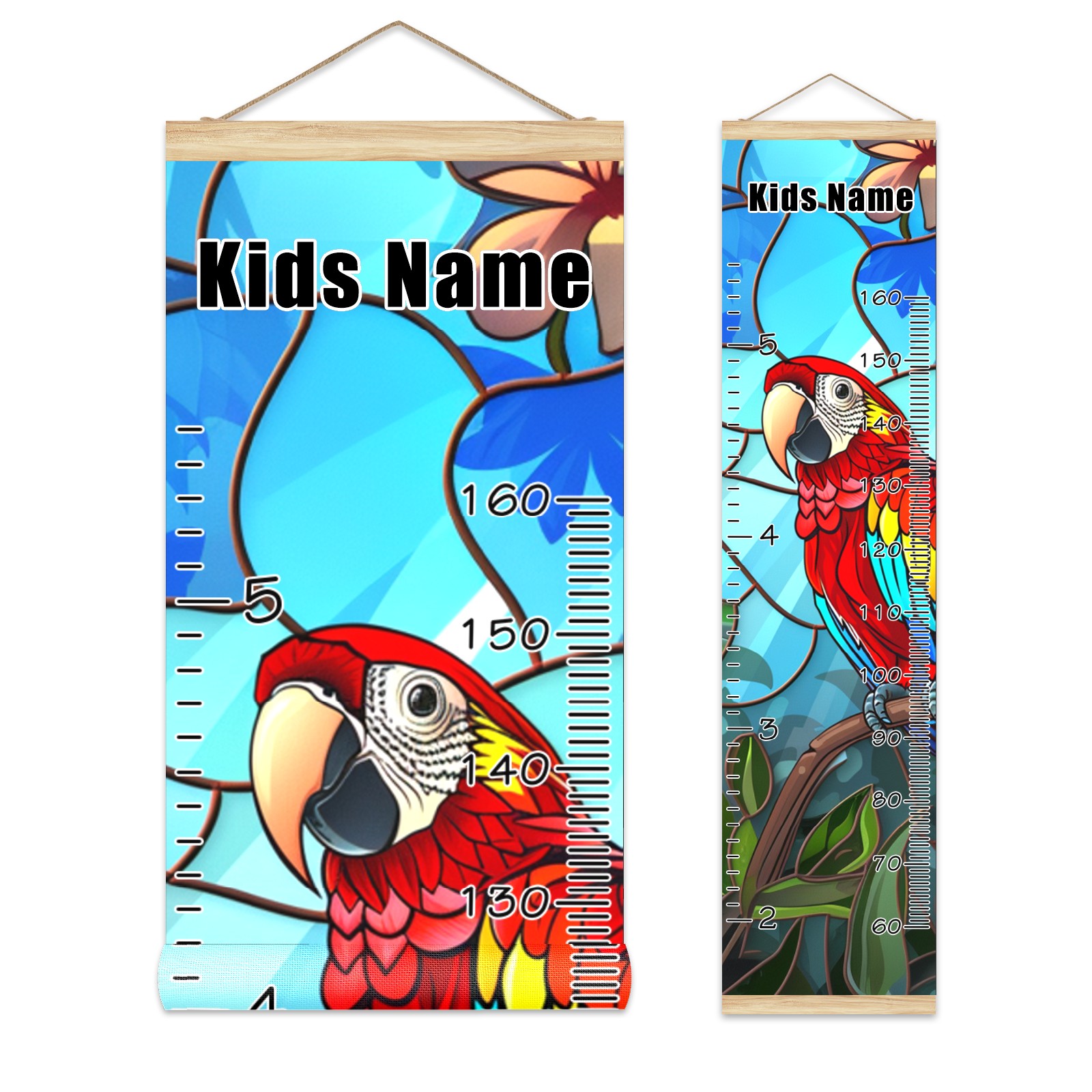 Personalized Growth Chart for Kids Boys Girls Custom Baby Name Canvas Height Chart for Wall Hanging Macaw Bird Measuring Chart Ruler 13.4'' x 56''