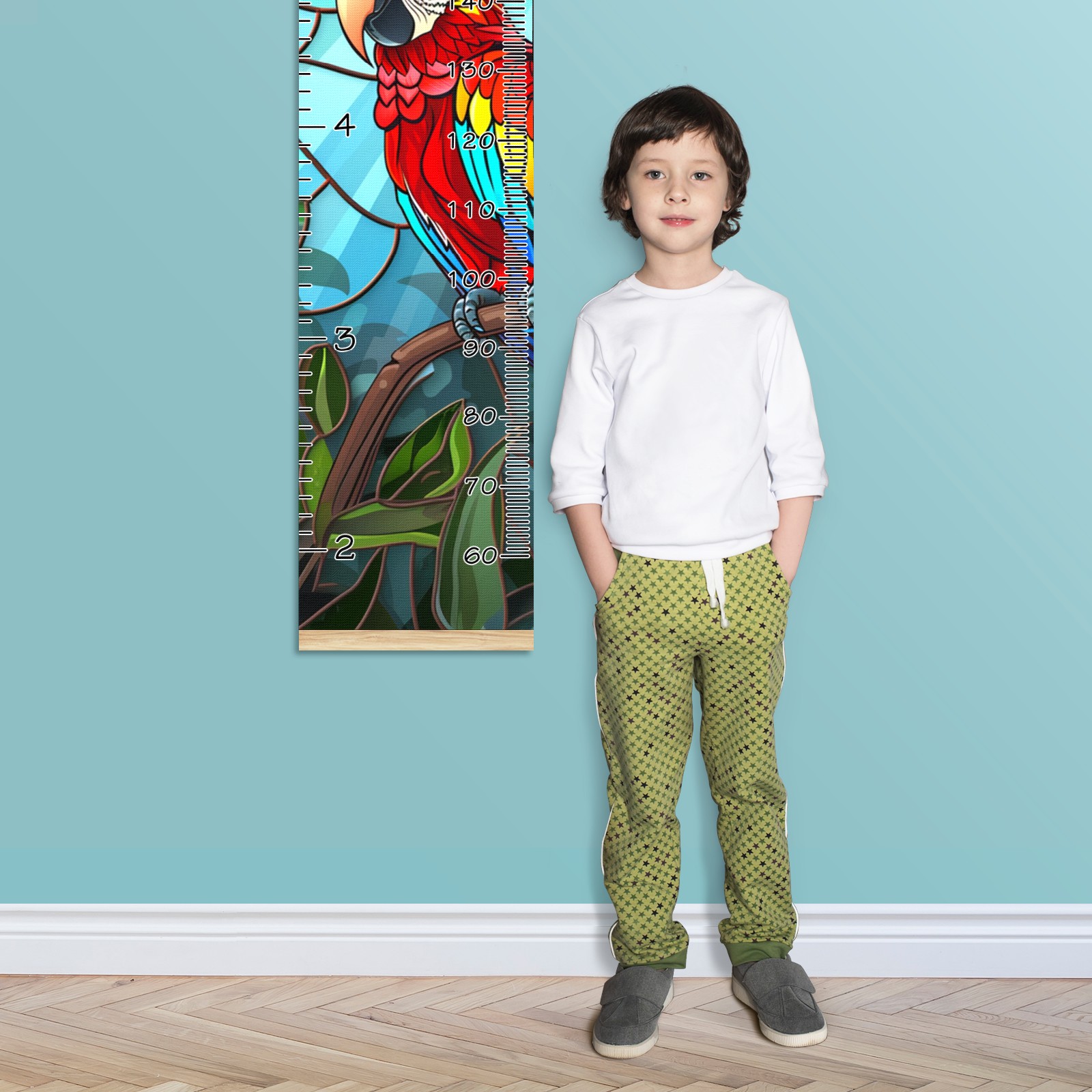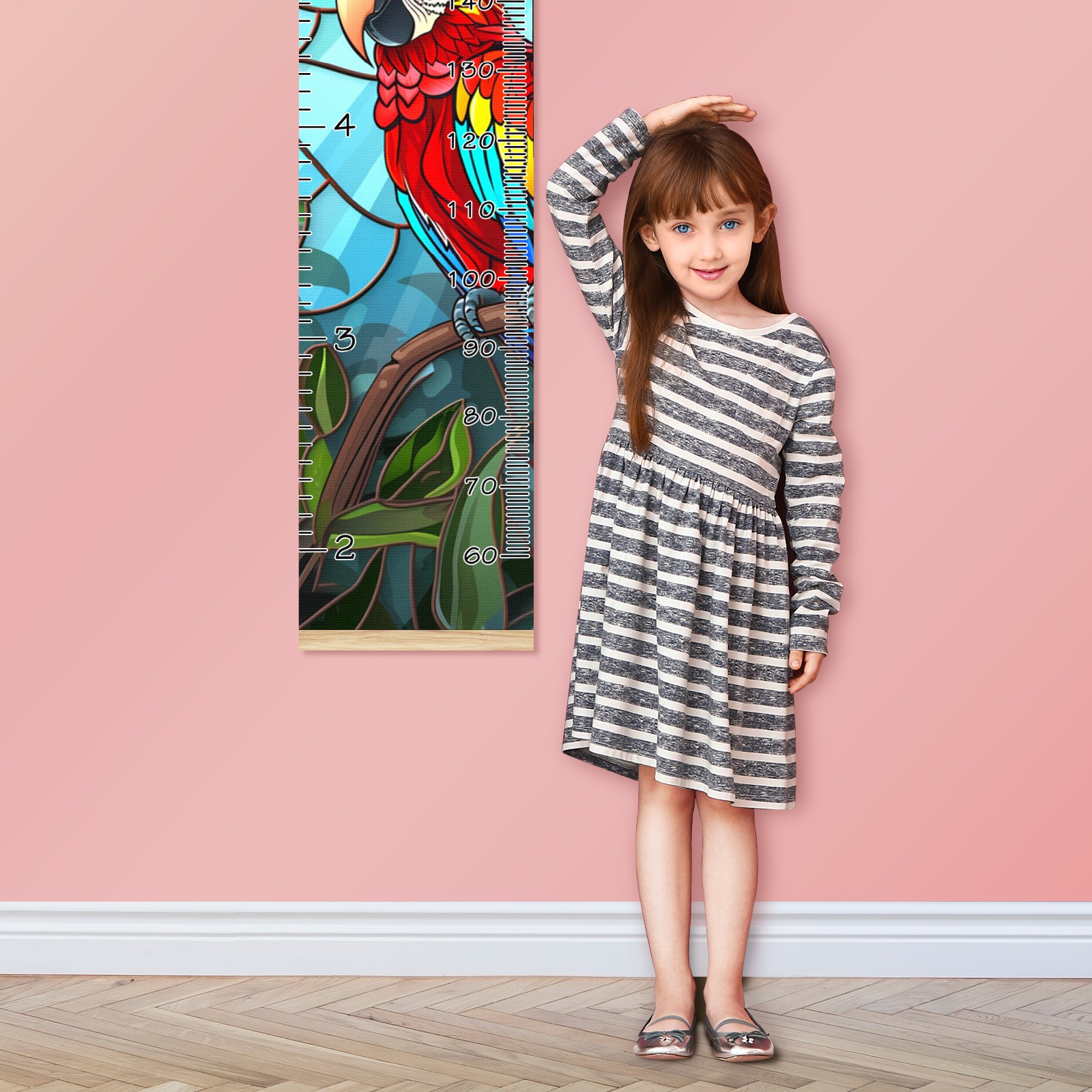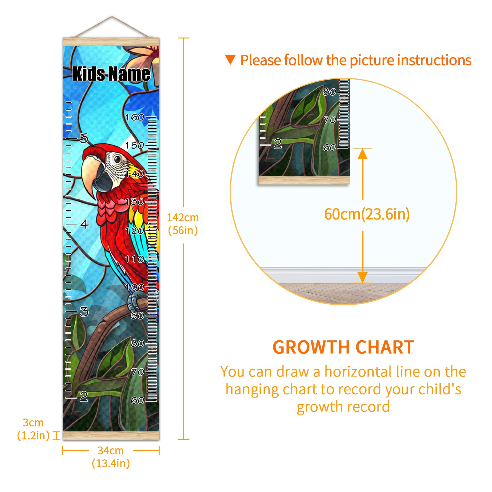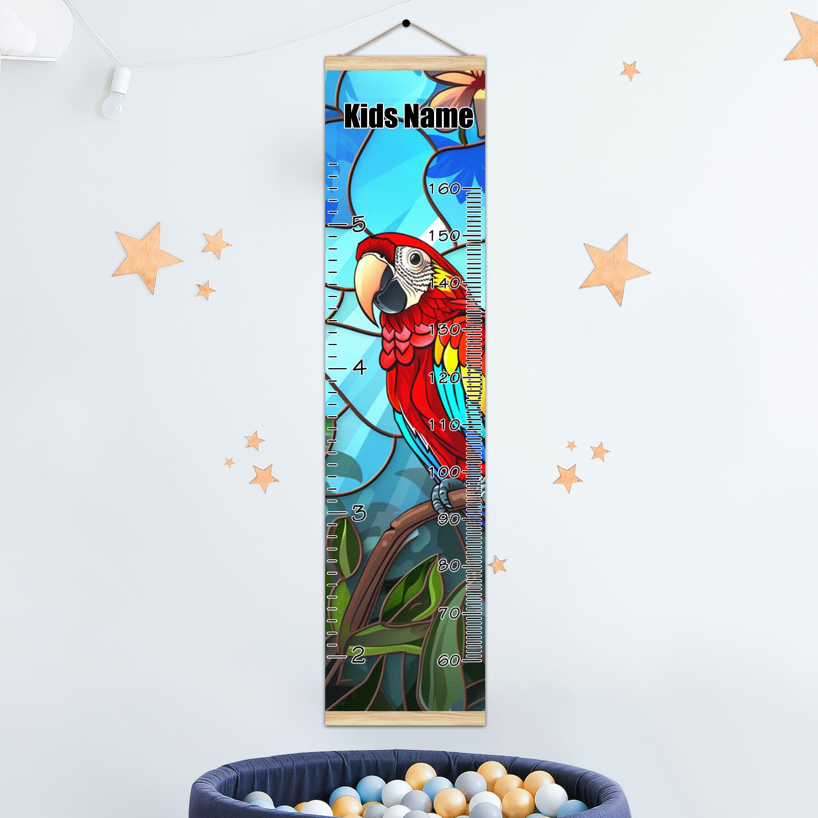 Personalized Growth Chart for Kids Boys Girls Custom Baby Name Canvas Height Chart for Wall Hanging Macaw Bird Measuring Chart Ruler 13.4'' x 56''