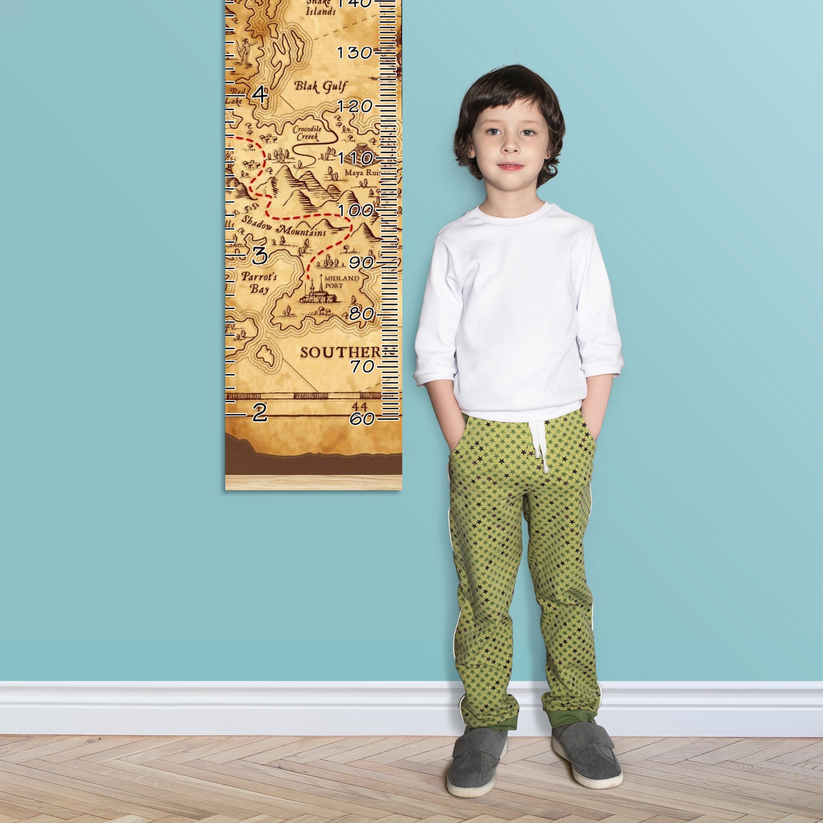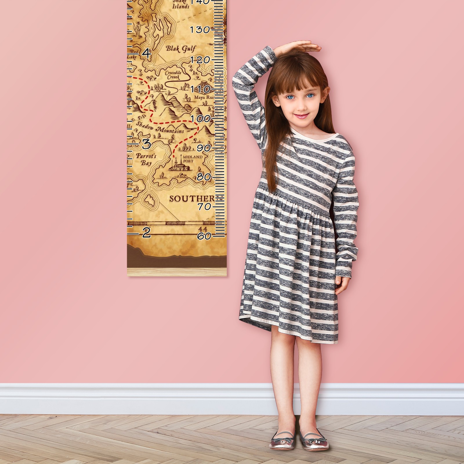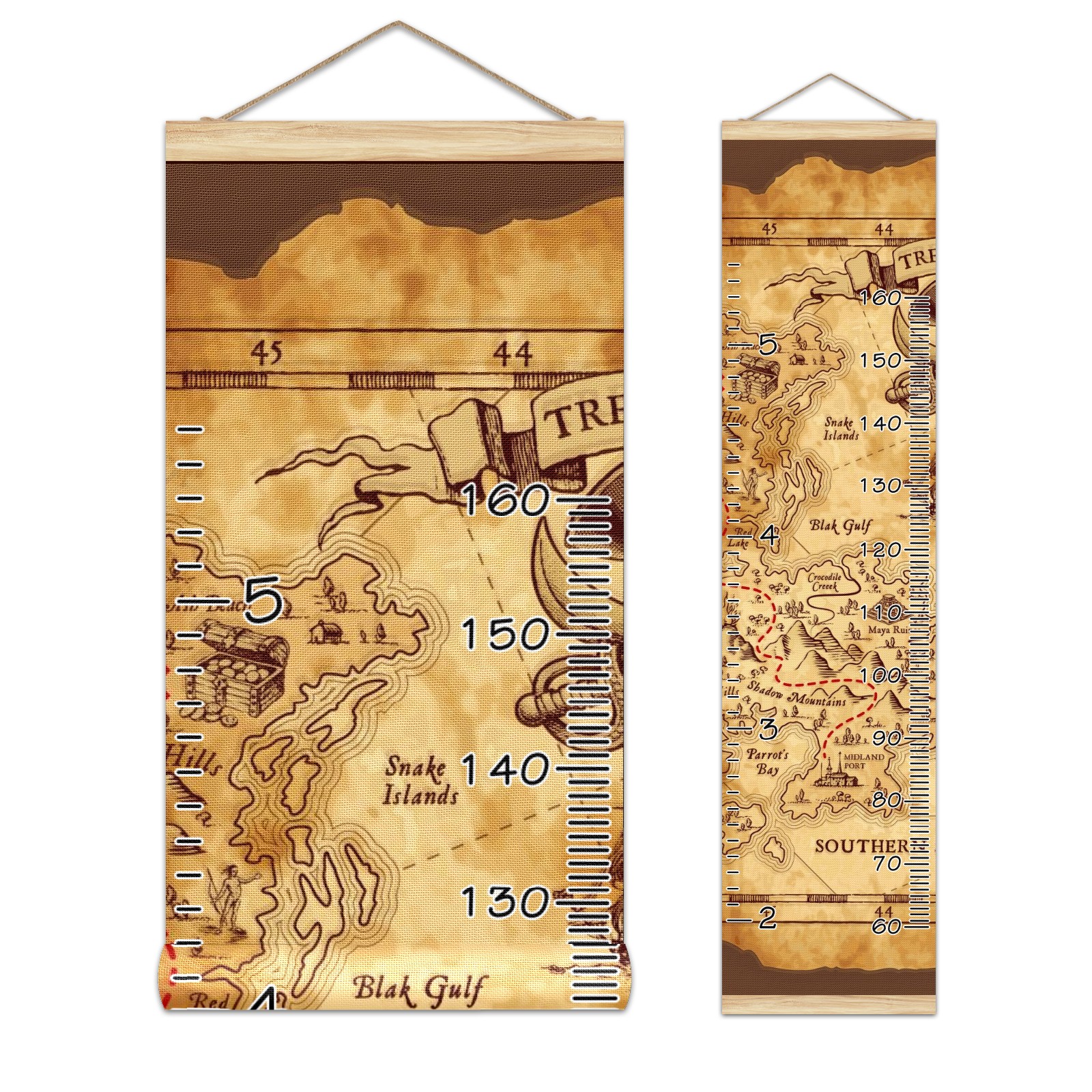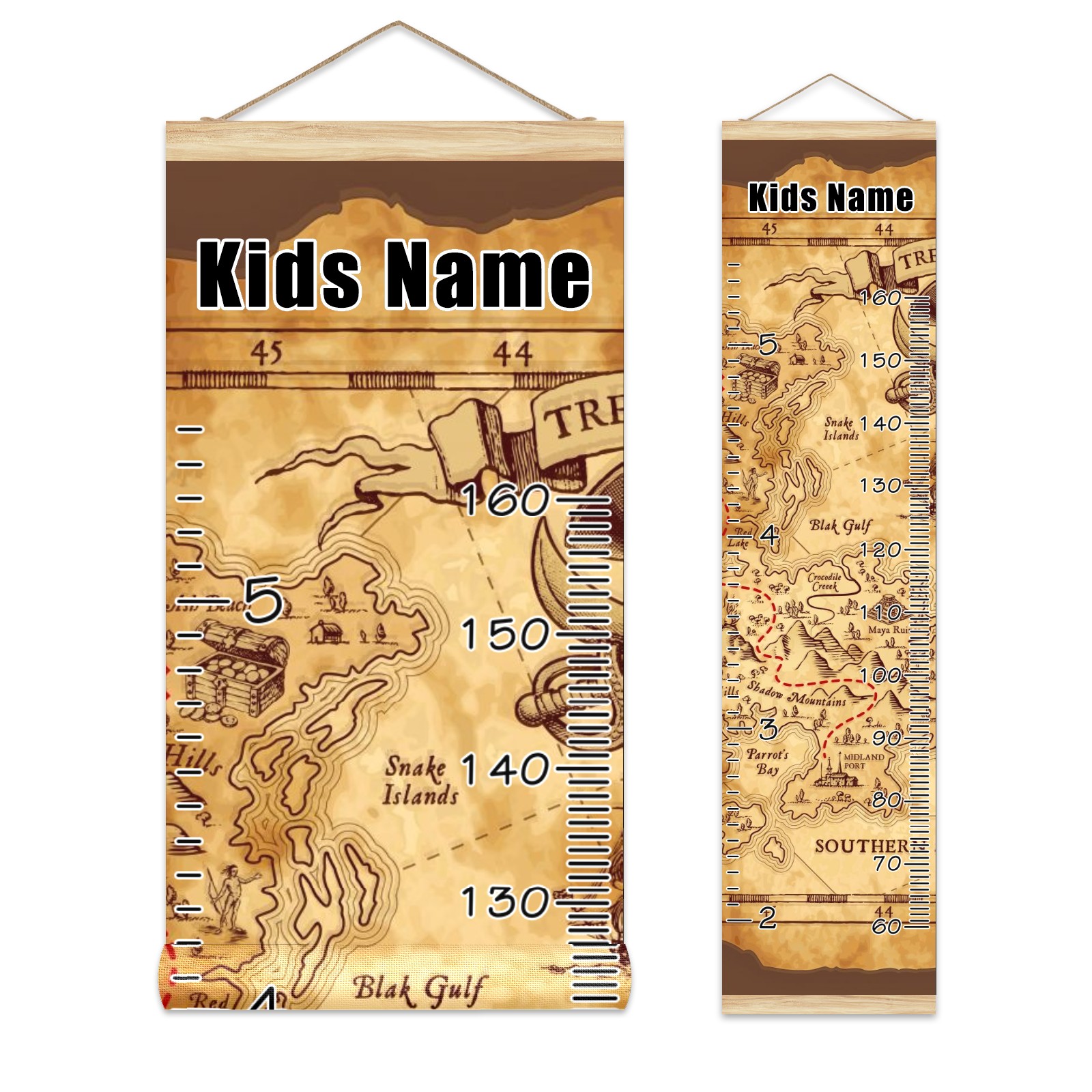 Personalized Growth Chart for Kids Boys Girls Custom Baby Name Canvas Height Chart for Wall Hanging Vintage Nautical World Map Pirate Compass Measuring Chart Ruler 13.4'' x 56''