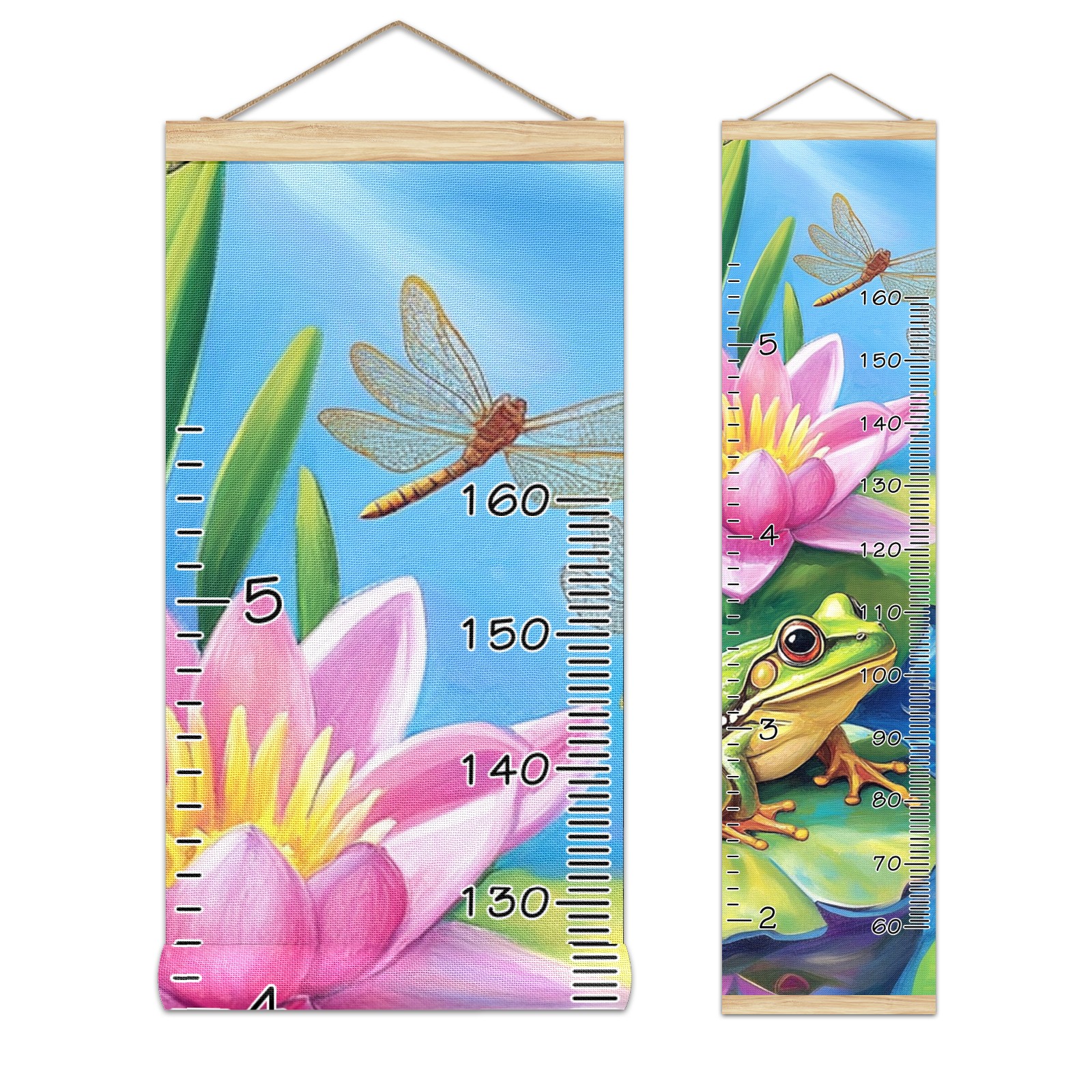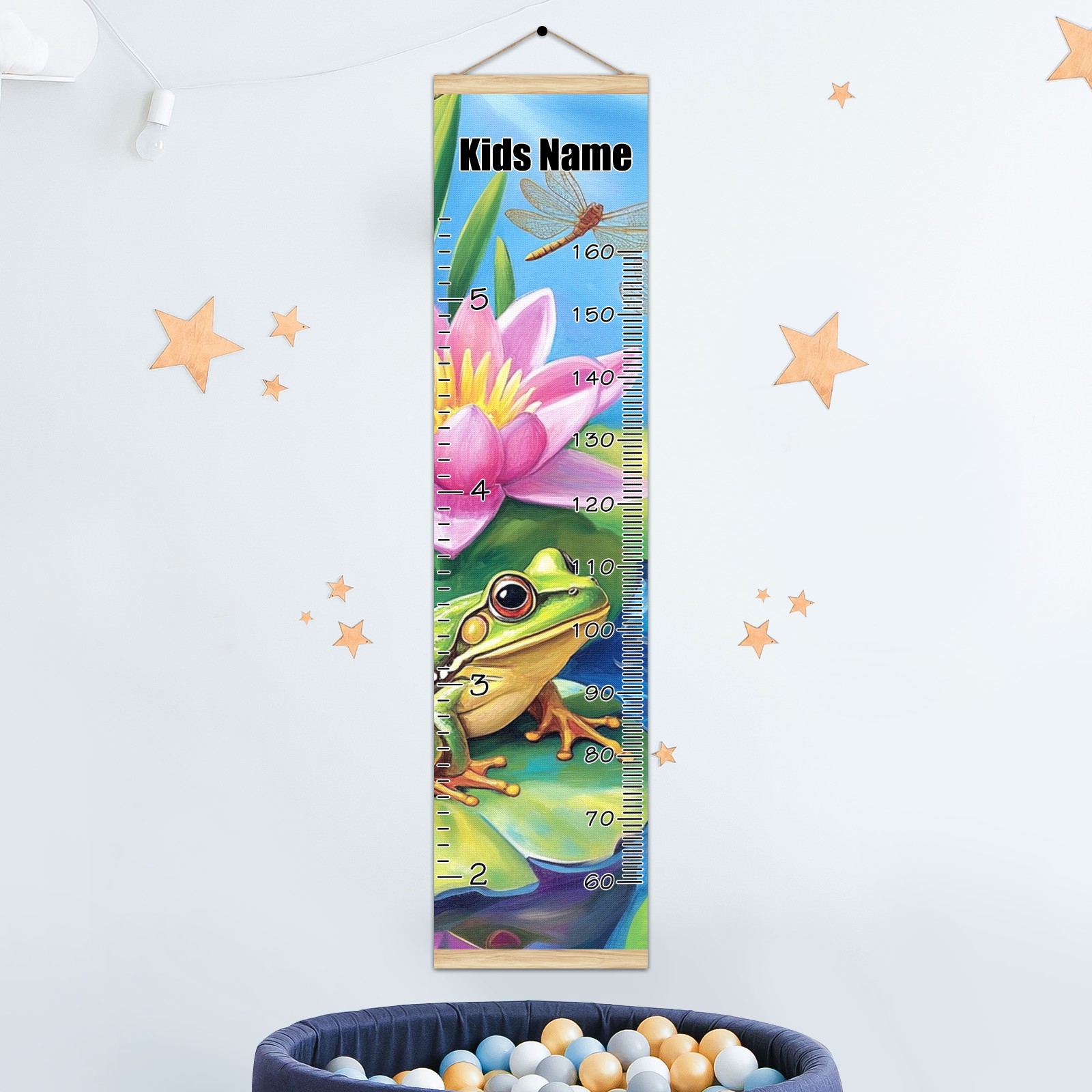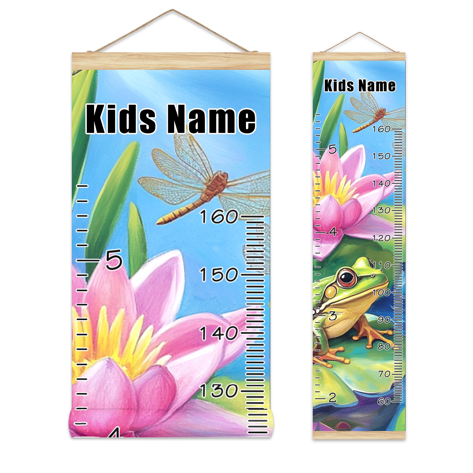 Personalized Growth Chart for Kids Boys Girls Custom Baby Name Canvas Height Chart for Wall Hanging Pond Frogs Lotus Measuring Chart Ruler 13.4'' x 56''