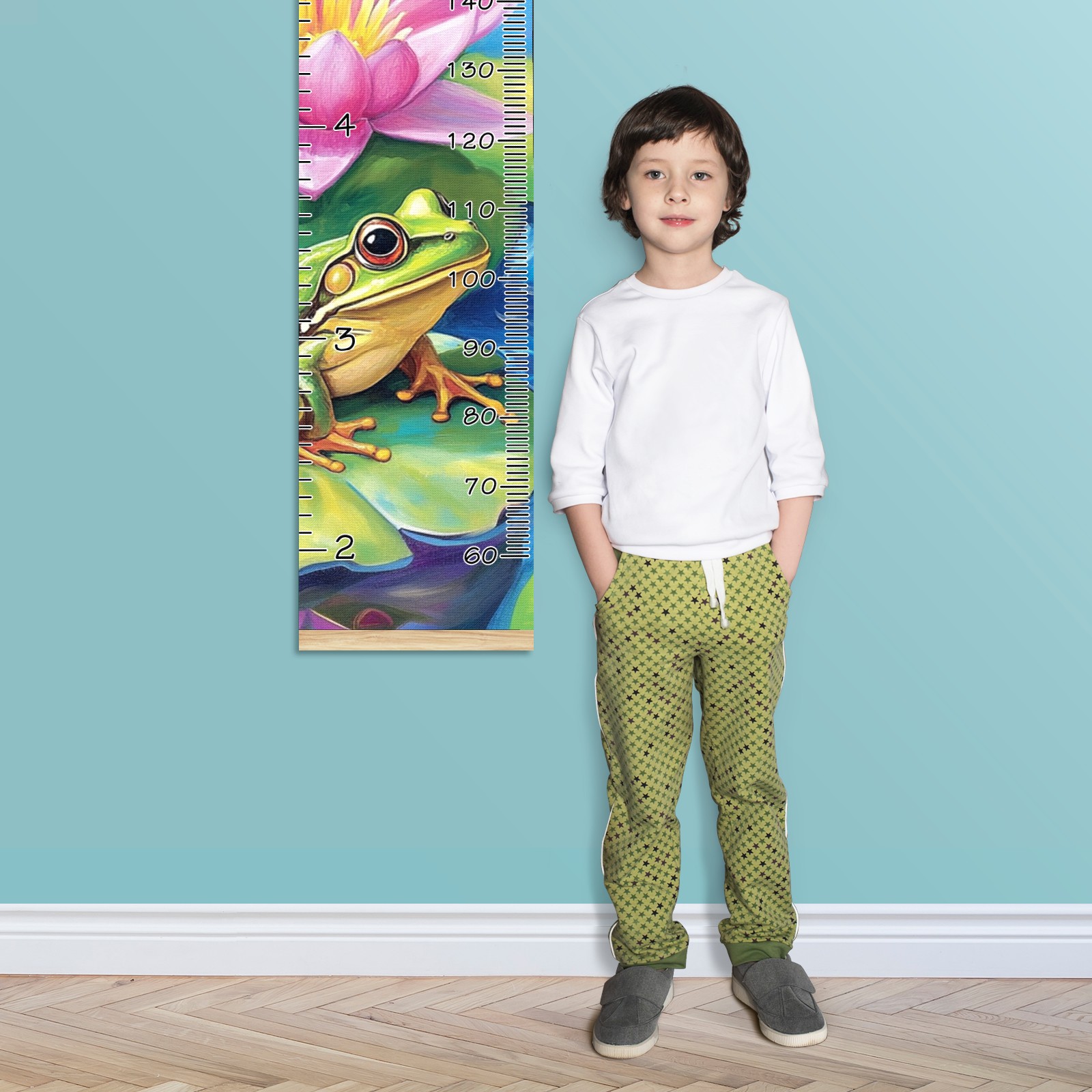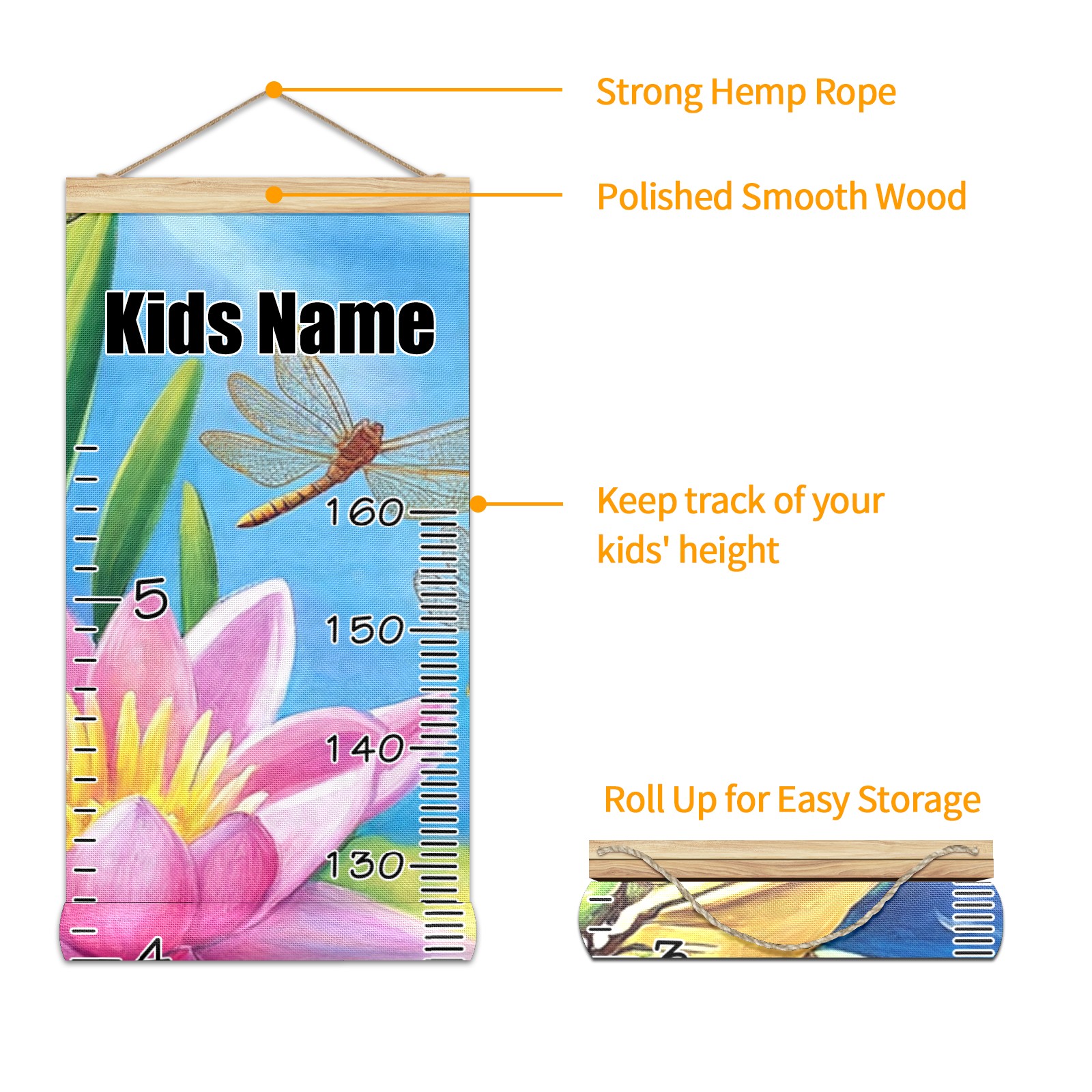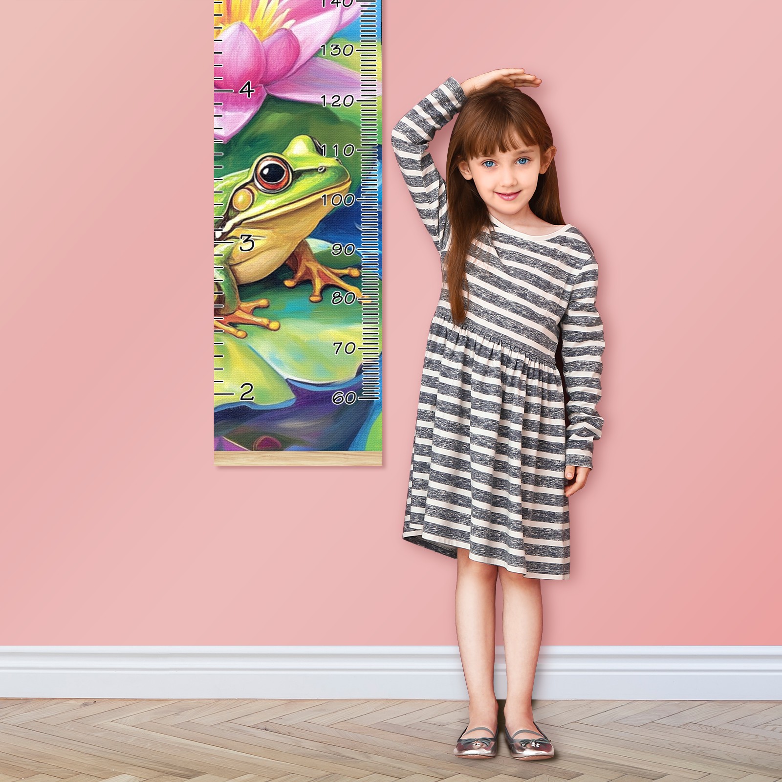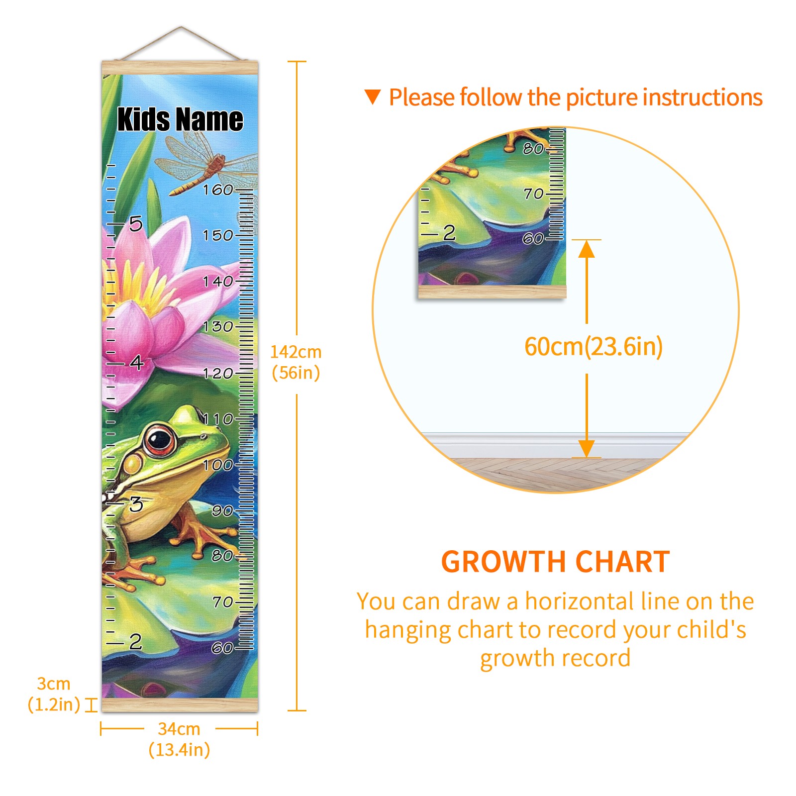 Personalized Growth Chart for Kids Boys Girls Custom Baby Name Canvas Height Chart for Wall Hanging Pond Frogs Lotus Measuring Chart Ruler 13.4'' x 56''
