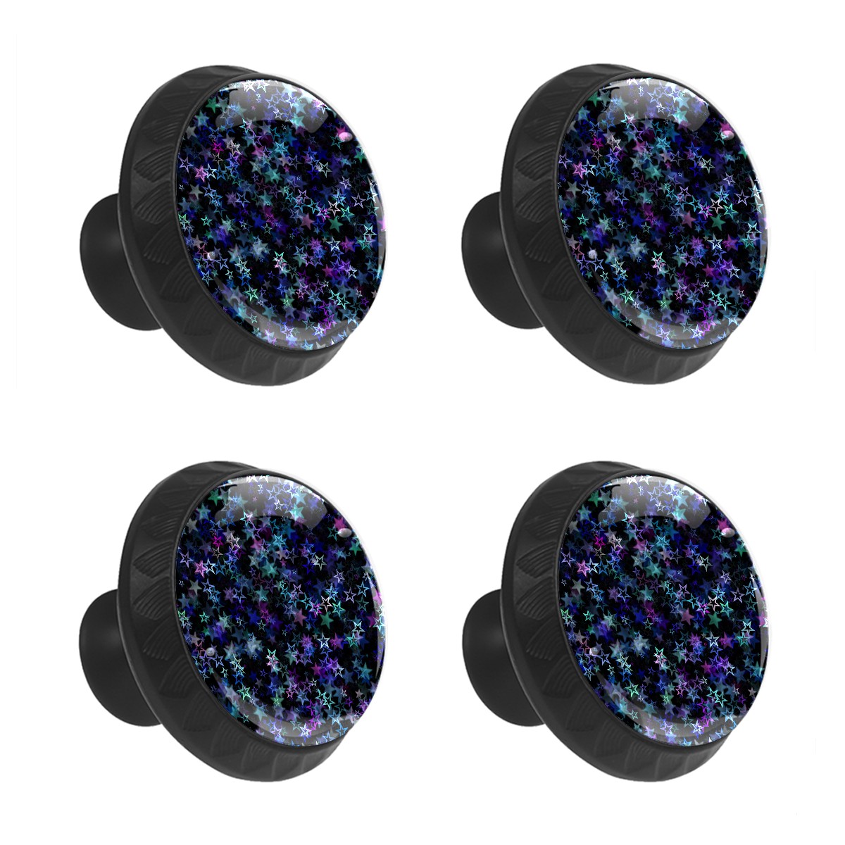 4 Pack Cabinet Knobs Blue Pink Stars Pattern Drawer Pulls Crystal Glass Round Knobs Handles for Dressers Drawer Bathroom Kitchen Cupboards Wardrobes Hardware Furniture Knobs