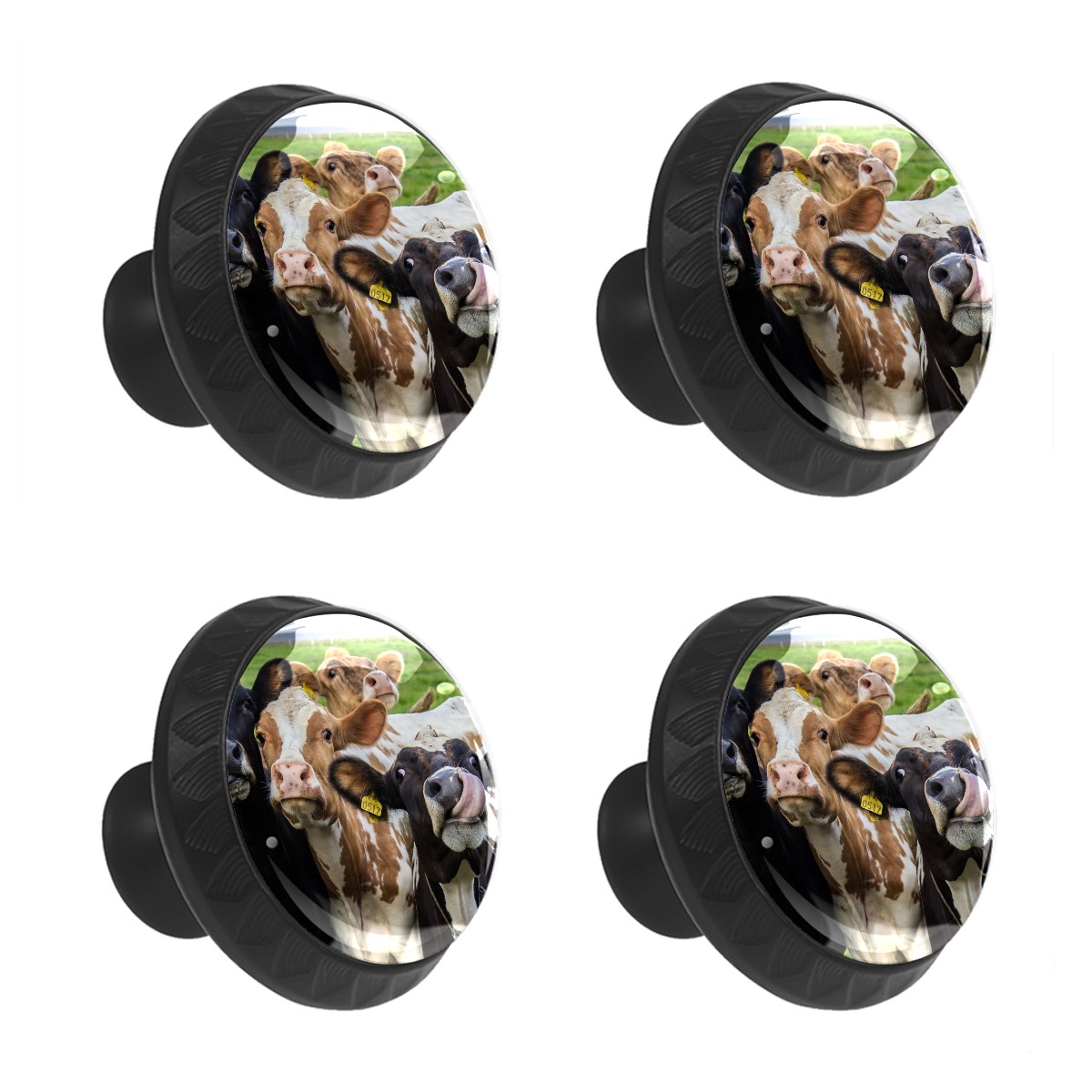 4 Pack Cabinet Knobs Animal Cows On Green Grassland Drawer Pulls Crystal Glass Round Knobs Handles for Dressers Drawer Bathroom Kitchen Cupboards Wardrobes Hardware Furniture Knobs