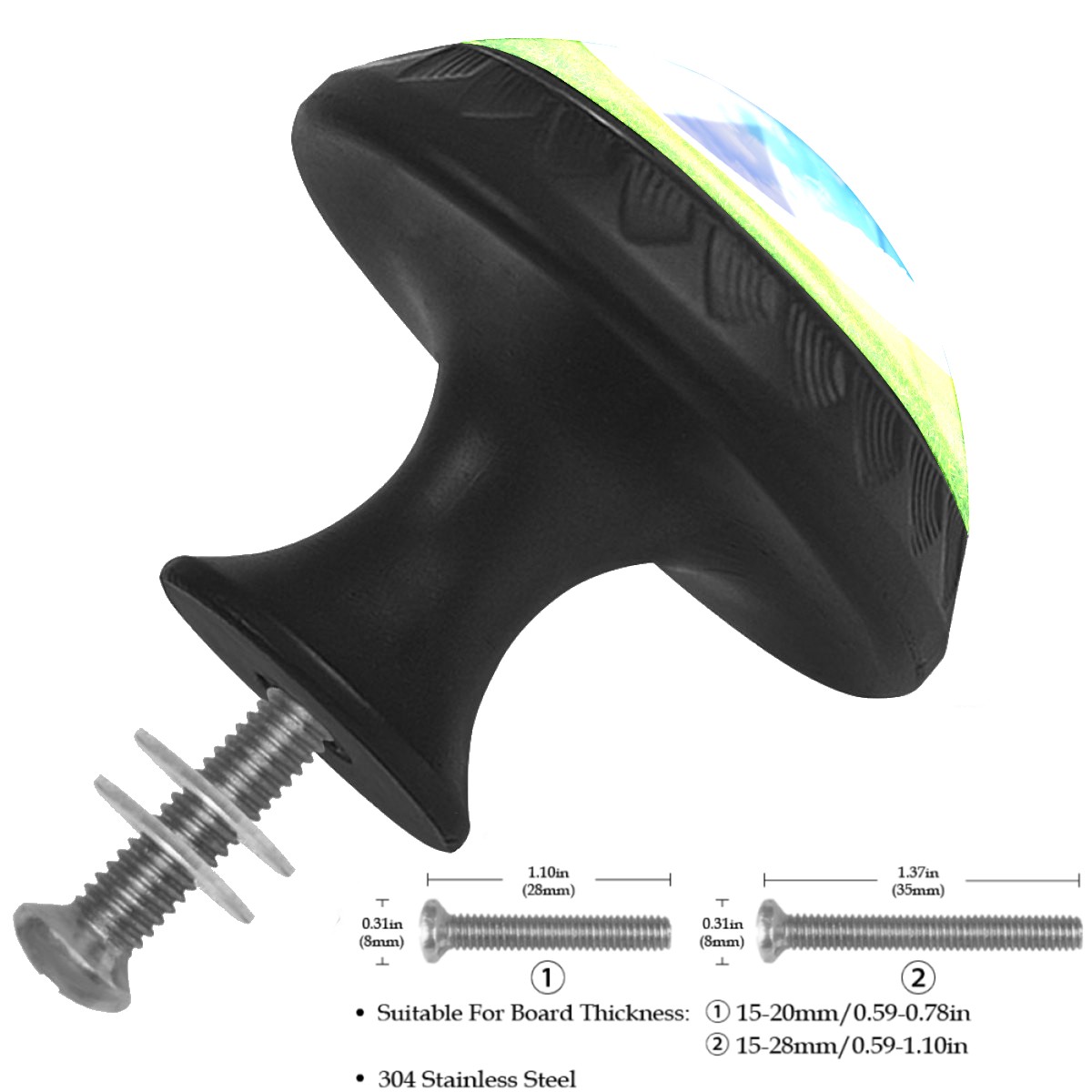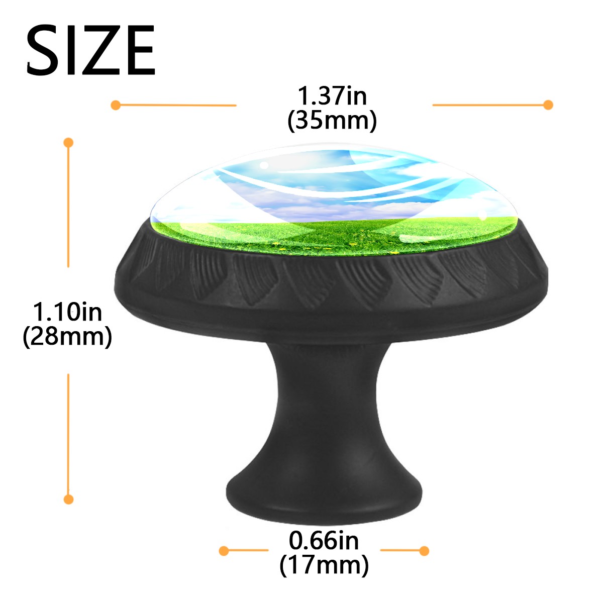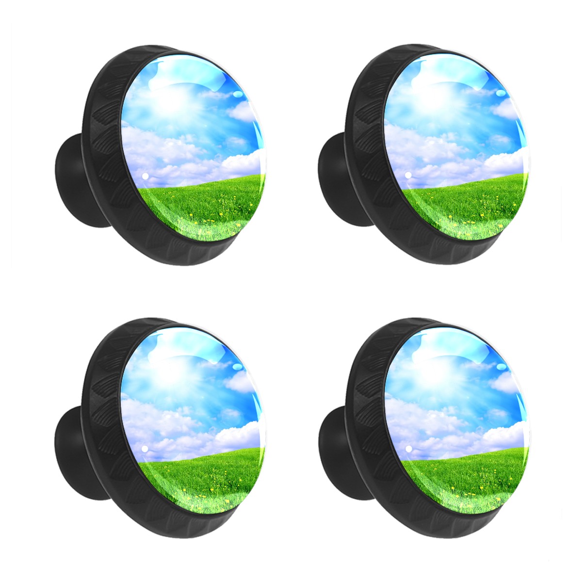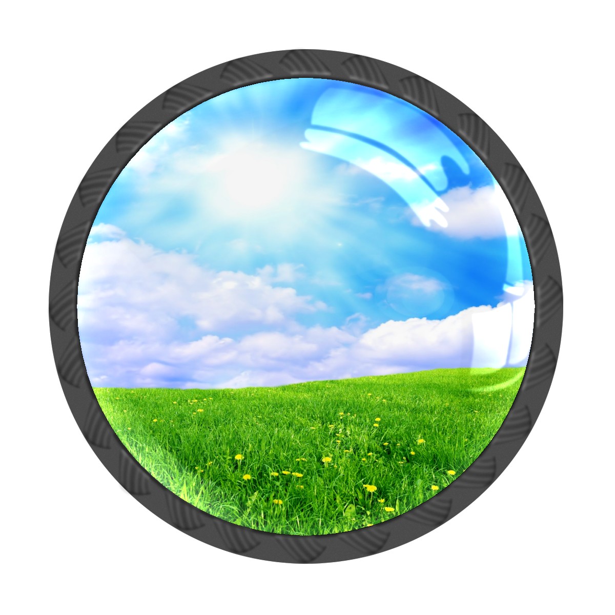 Genhuyiz 4 Pcs Drawer Pulls Knobs Green Grass Sky Clouds Cabinet Knobs Pulls Round Crystal Glass Handles Knobs for Kitchen Cabinet and Drawer Dresser Bathroom