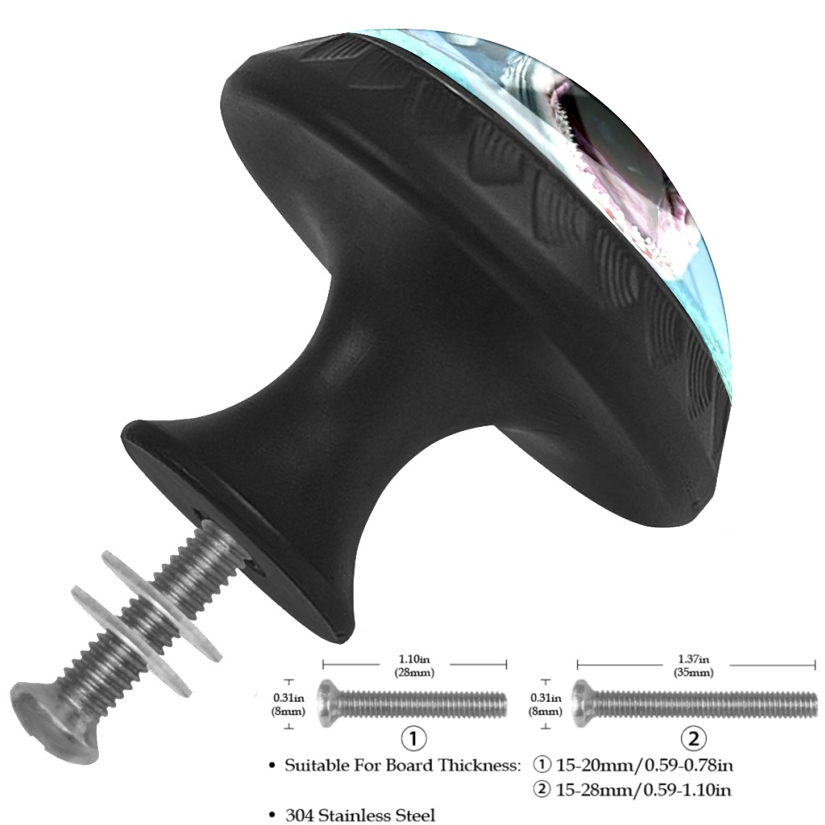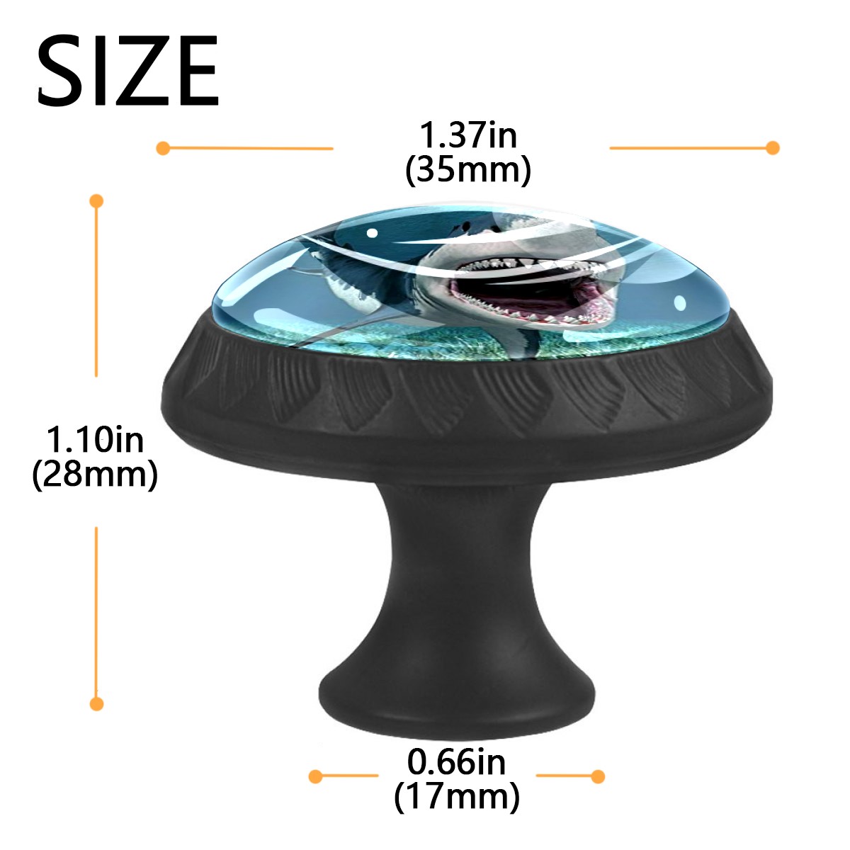 Genhuyiz 4 Pcs Drawer Pulls Knobs Shark Cabinet Knobs Pulls Round Crystal Glass Handles Knobs for Kitchen Cabinet and Drawer Dresser Bathroom