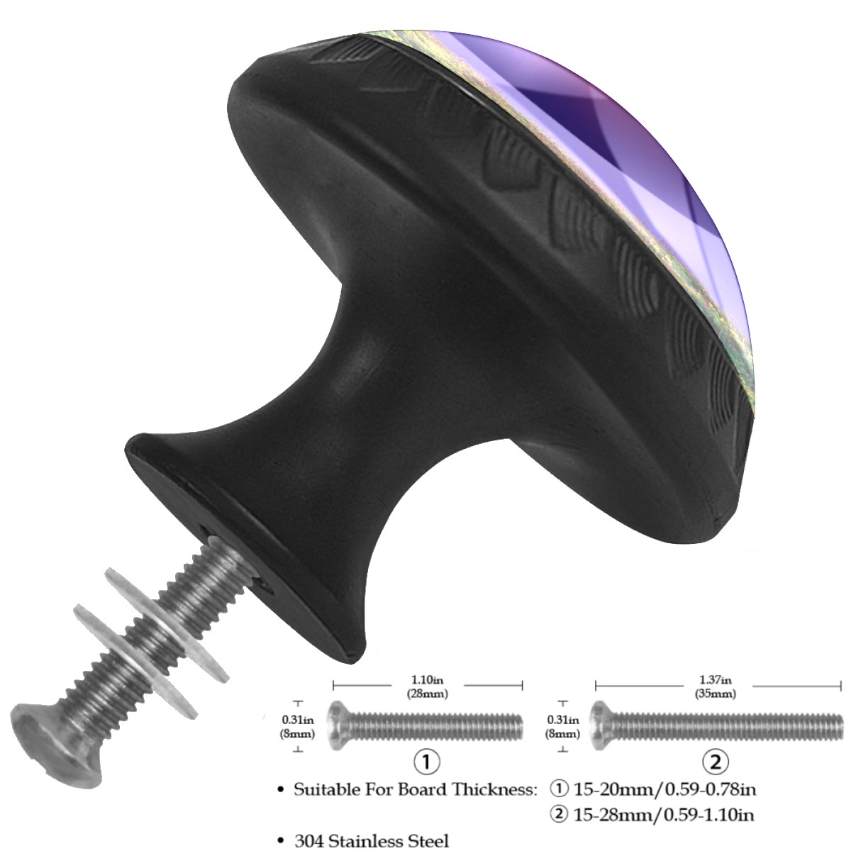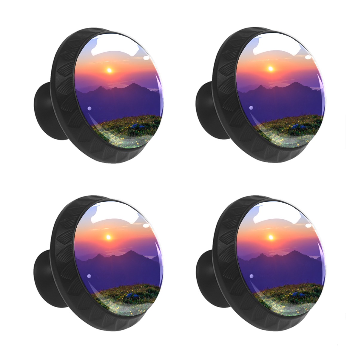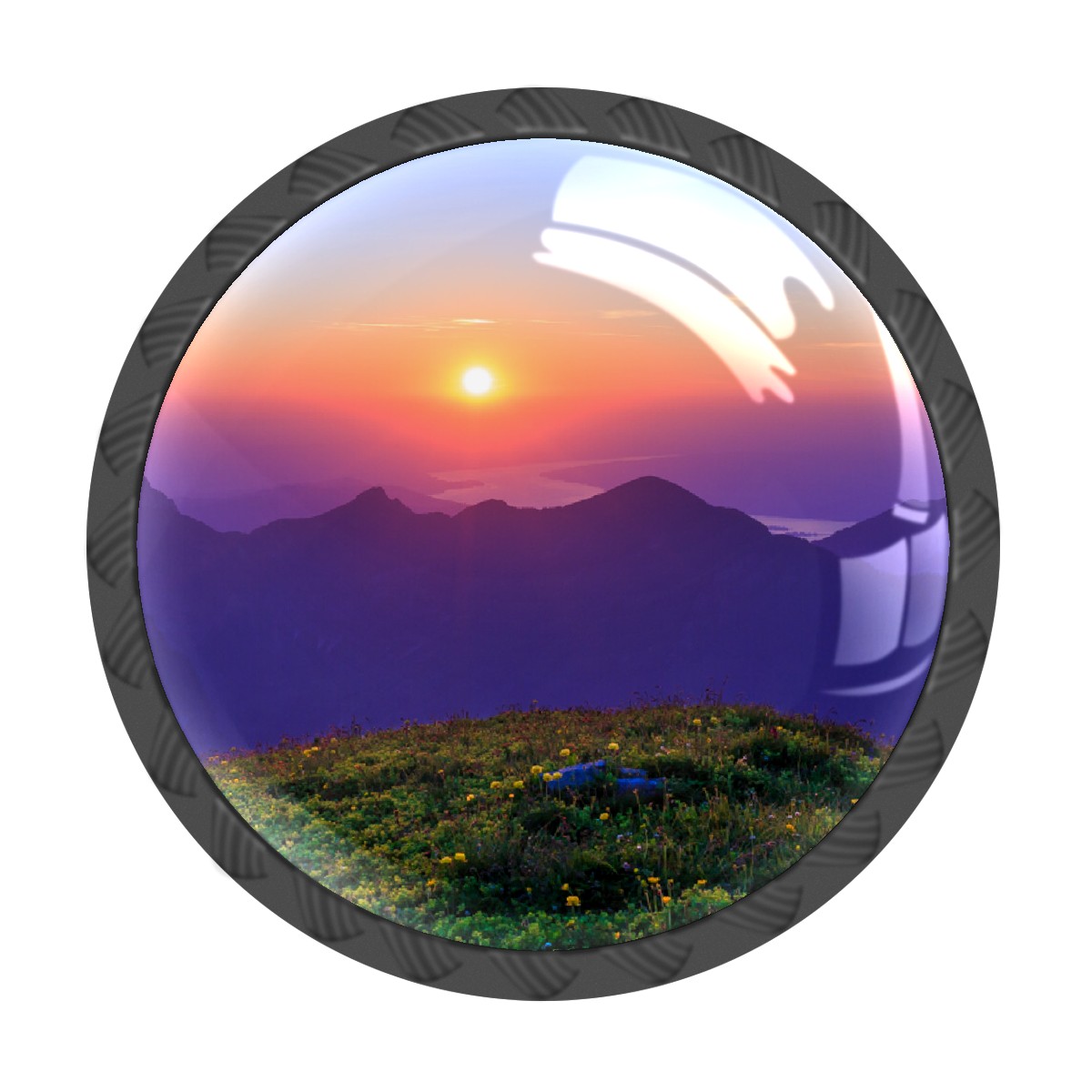 Genhuyiz 4 Pcs Drawer Pulls Knobs Mountain Range Purple sky Cabinet Knobs Pulls Round Crystal Glass Handles Knobs for Kitchen Cabinet and Drawer Dresser Bathroom